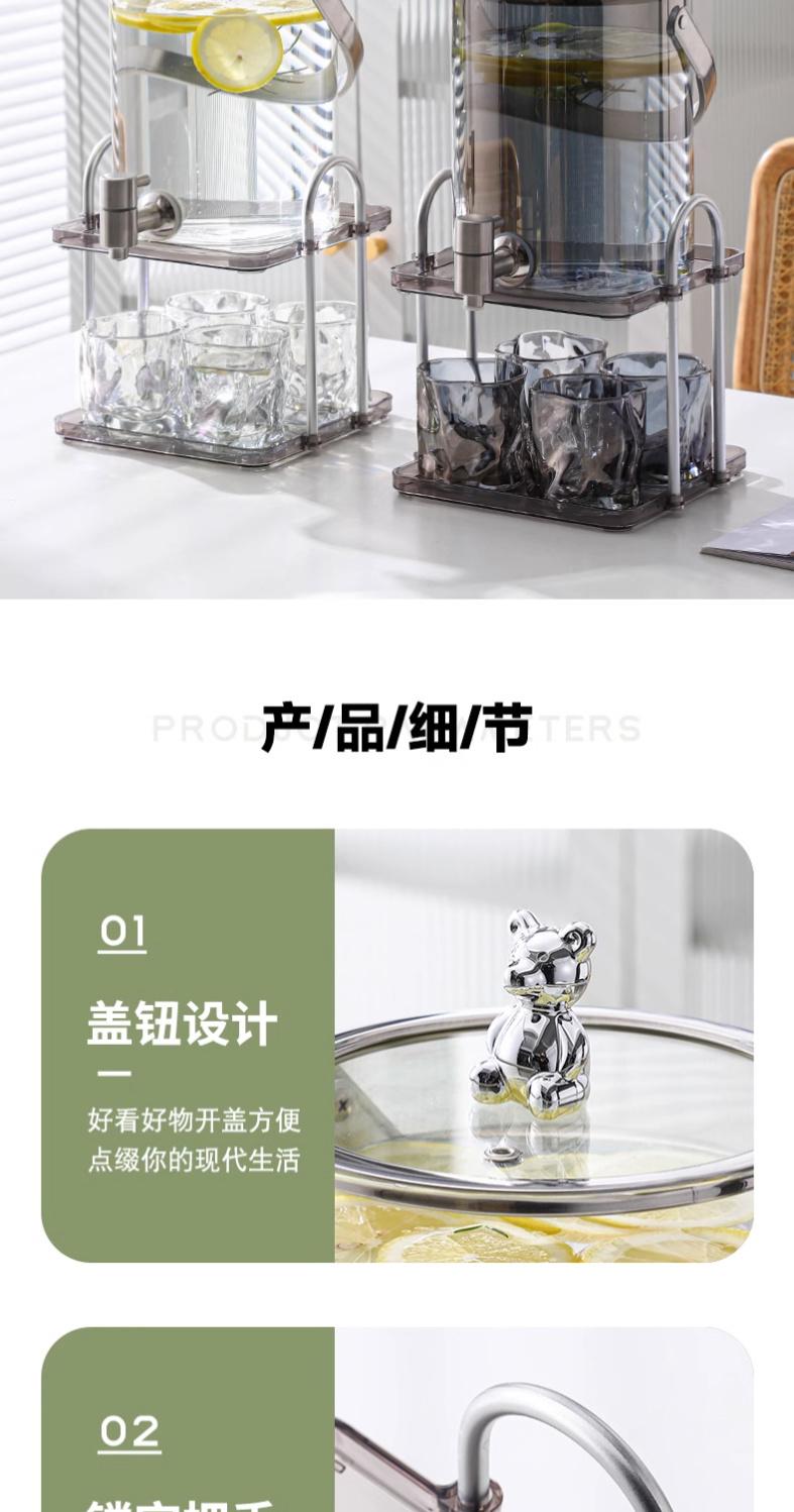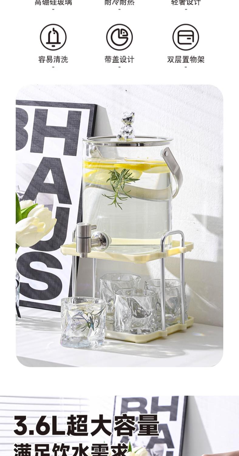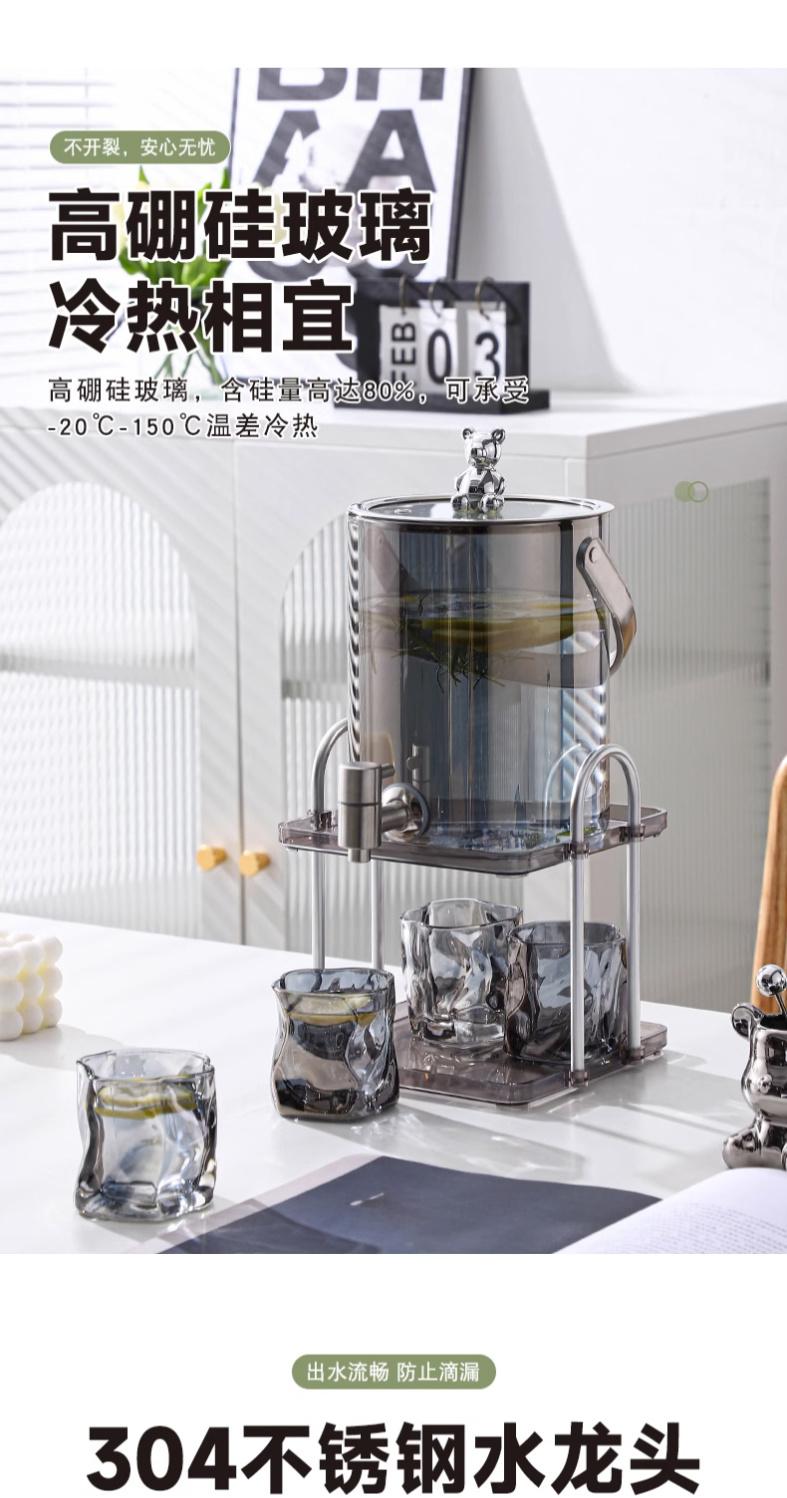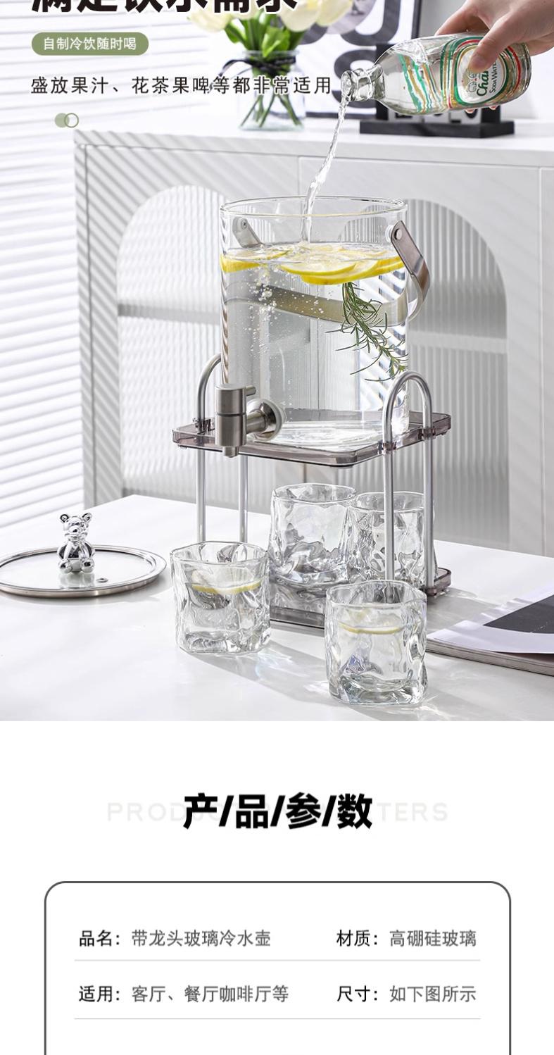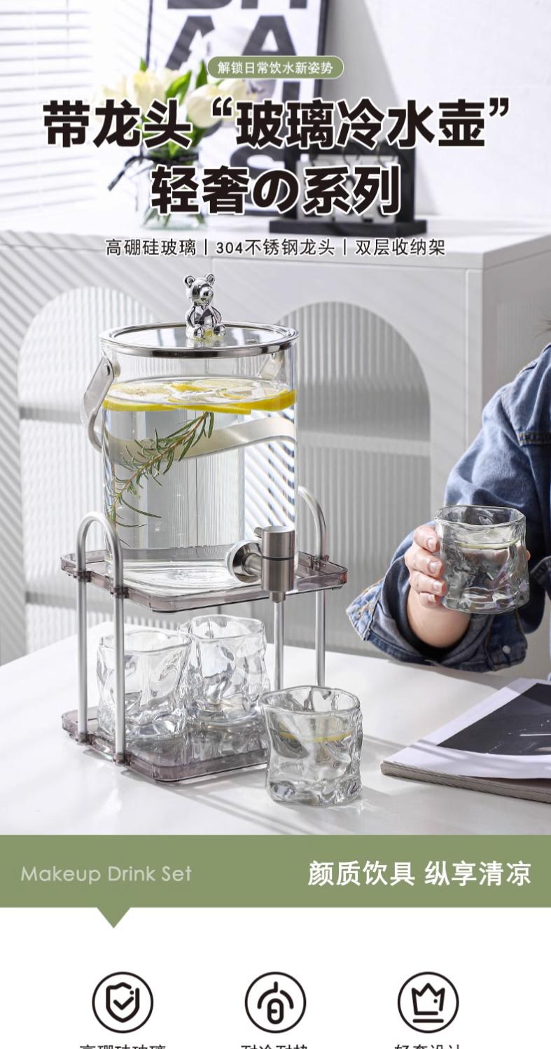 Hervidor de agua fría de vidrio de gran capacidad para el hogar, juego de tazas, cubo para jugo para refrigerador, tetera resistente a altas temperaturas