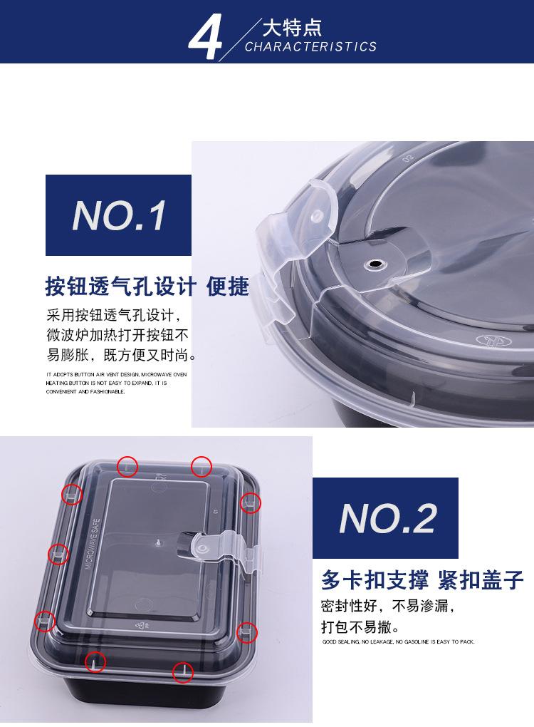 Lonchera Desechable Calentable en Microondas Rectangular de Plástico con Tapa Caja para Empacar Redonda para Llevar