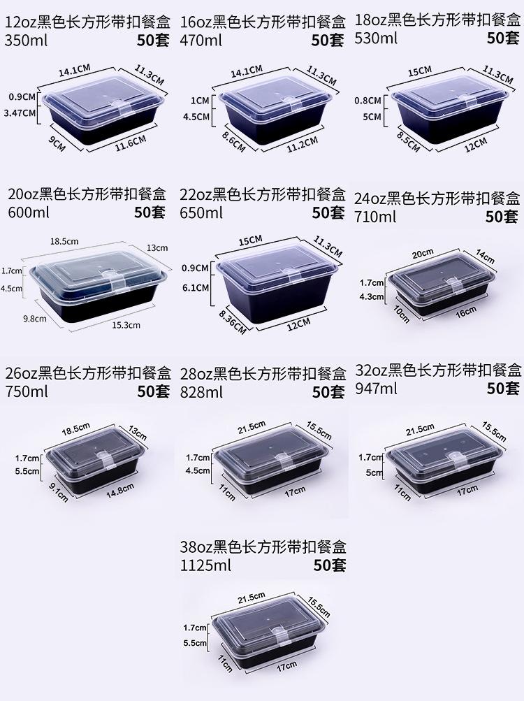 Black rectangular 350ml 50 sets 12oz, Black rectangular 470ml 50 sets 16oz, Black rectangular 530ml 50 sets 18...