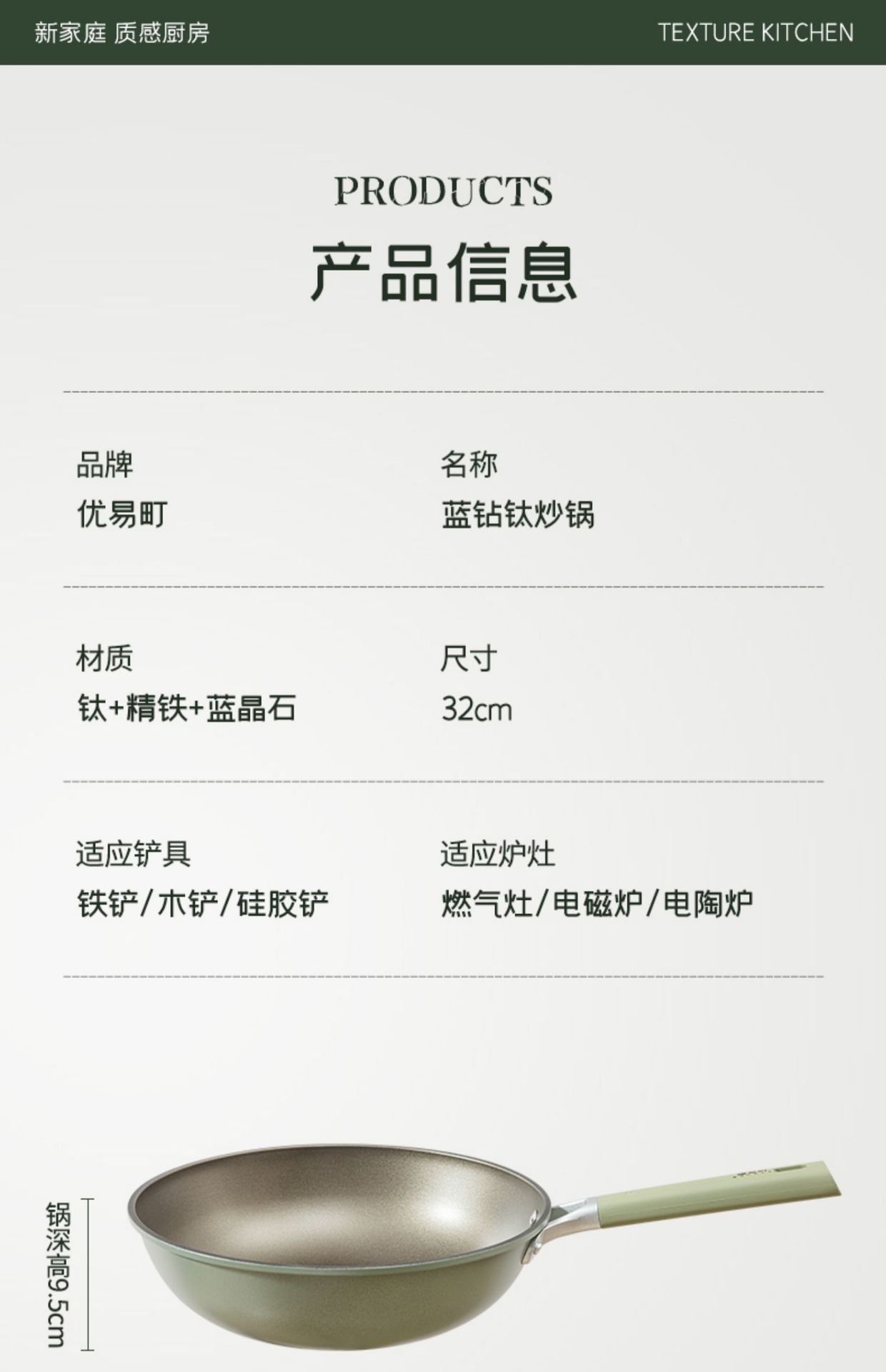 32cm blue diamond titanium wok (suitable for 2-6 people)