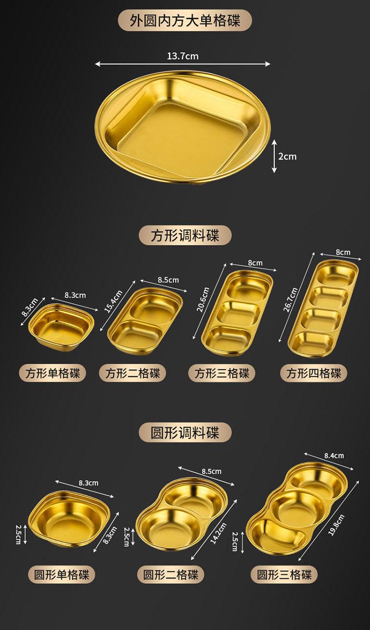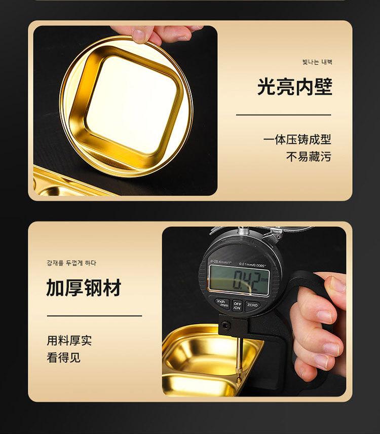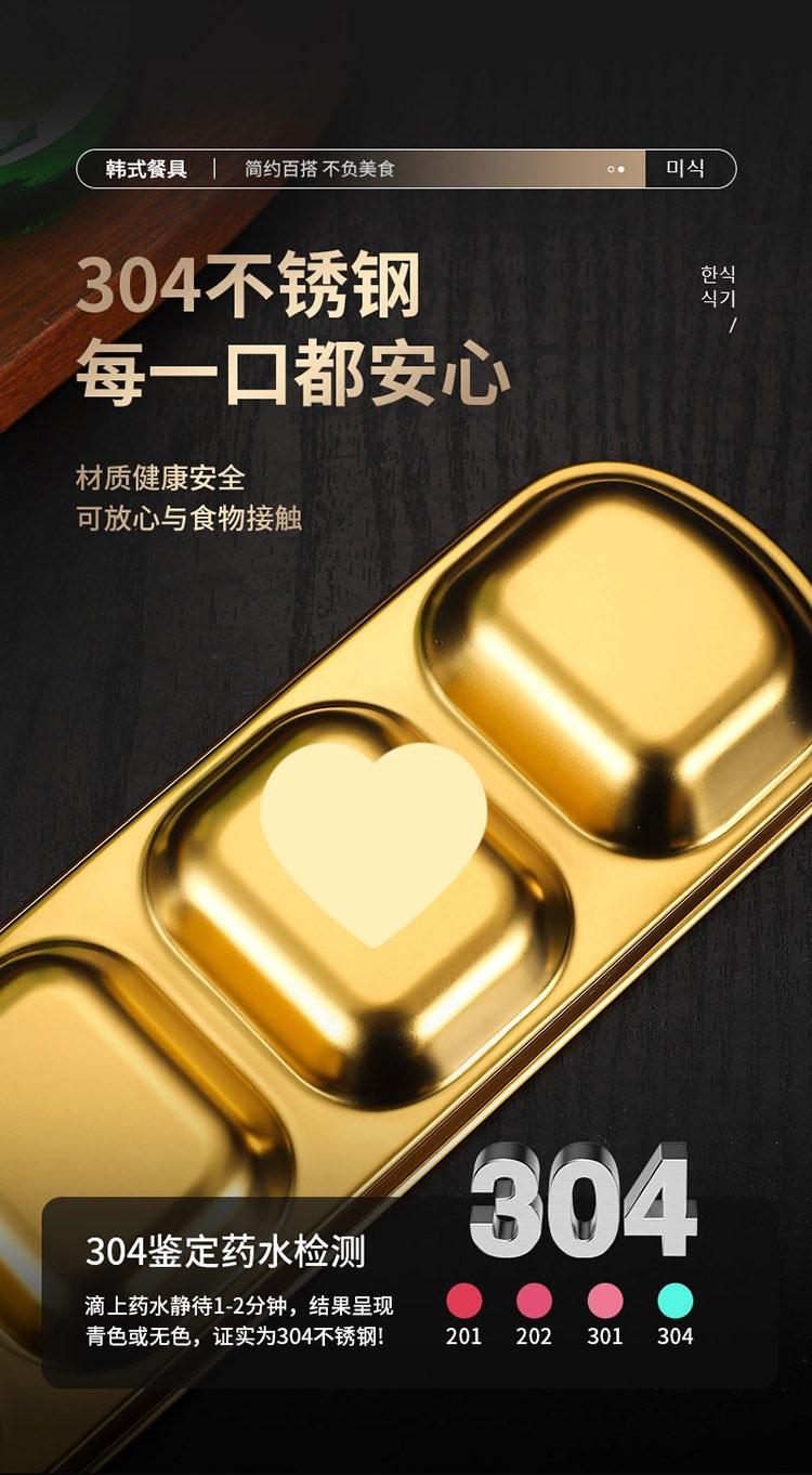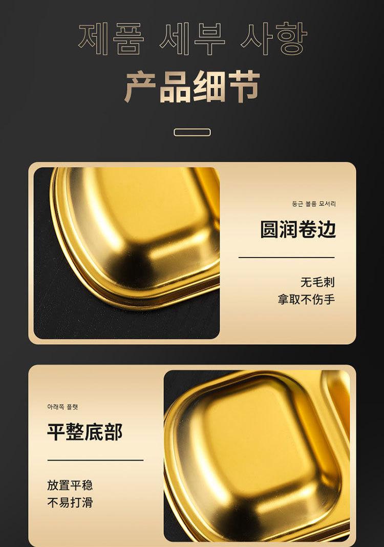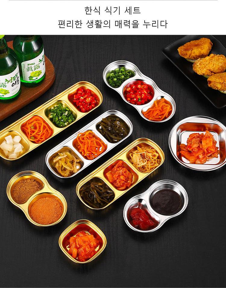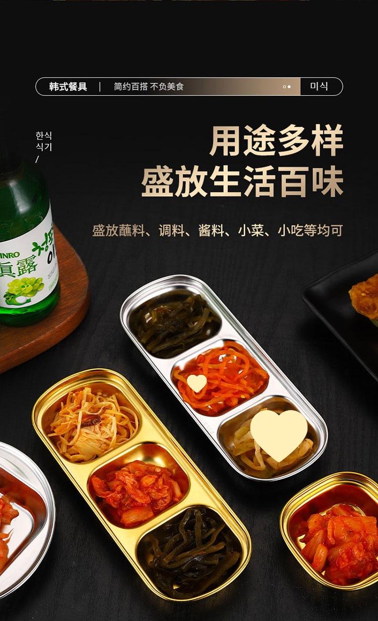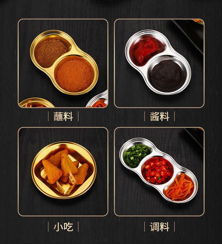 Compra Plato de condimentos al estilo coreano, plato para mojar dorado, acero inoxidable 304, dos compartimentos, tres compartimentos, olla caliente, salsa, encurtidos, vajilla para barbacoa al por mayor en Joom.pro