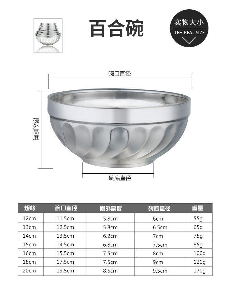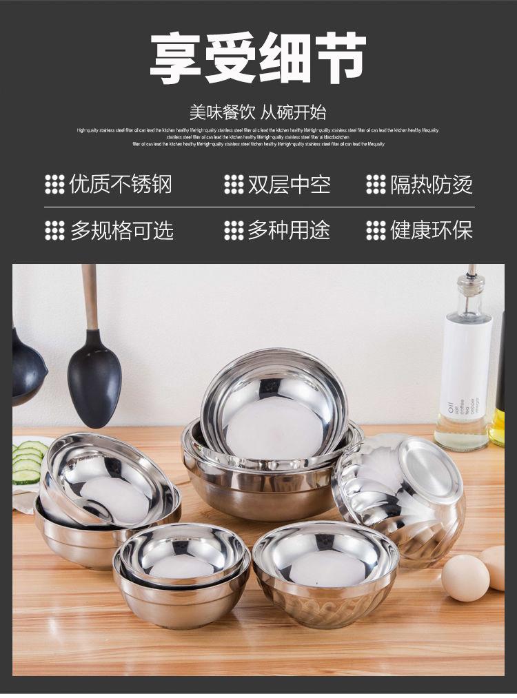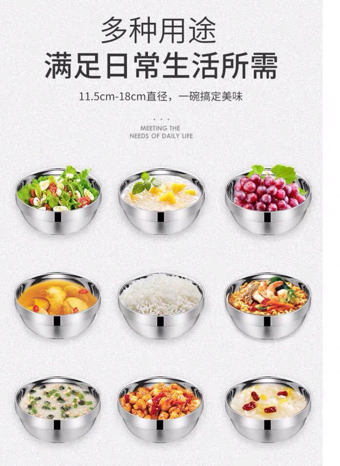 Cuenco de acero inoxidable 304 de grado alimenticio para arroz doméstico, cuenco de hierro con doble aislamiento, cuenco de sopa antiescaldamiento, cuenco para estudiantes, adultos y niños.