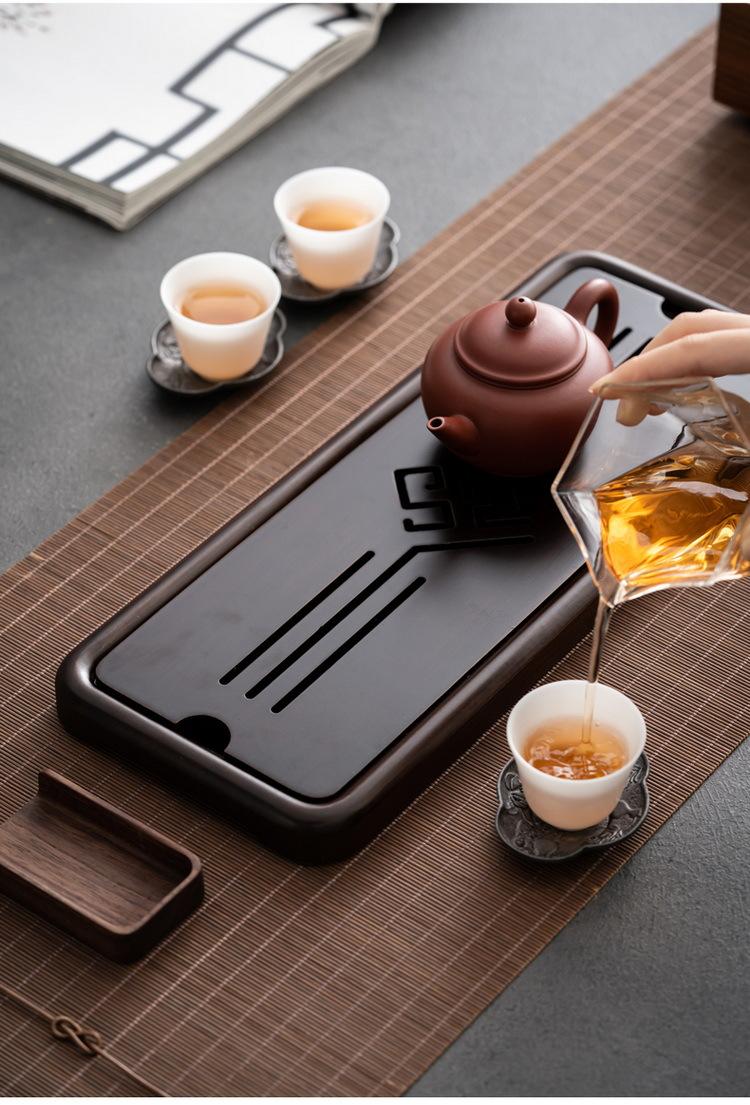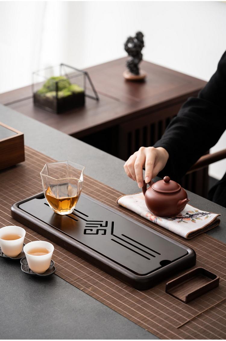 Bandeja de té para el hogar, mesa de té sencilla, almacenamiento de agua, juego de té de estilo chino, bandeja de bambú estilo zen, juego de té de Kung Fu, mesa de secado y remojo de agua