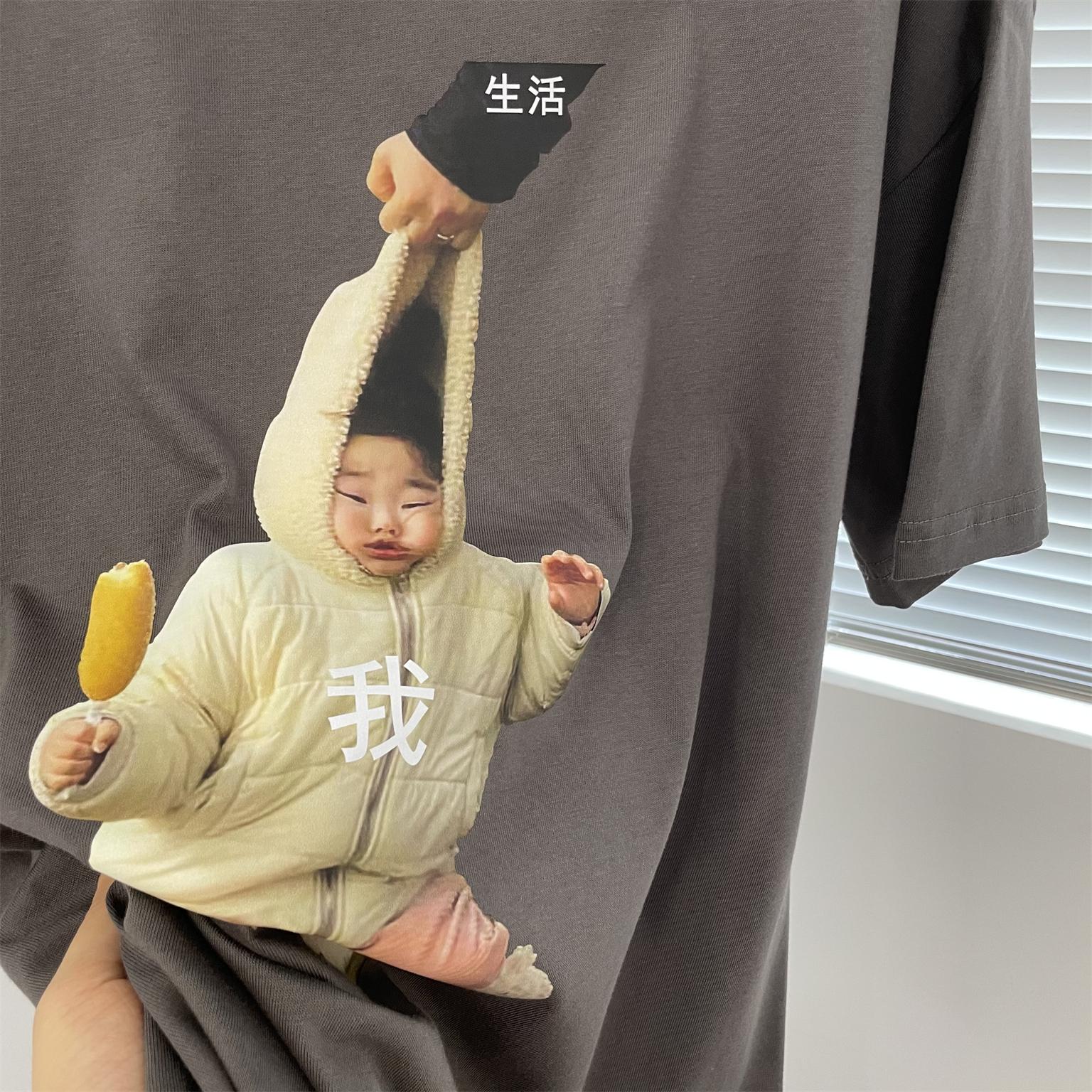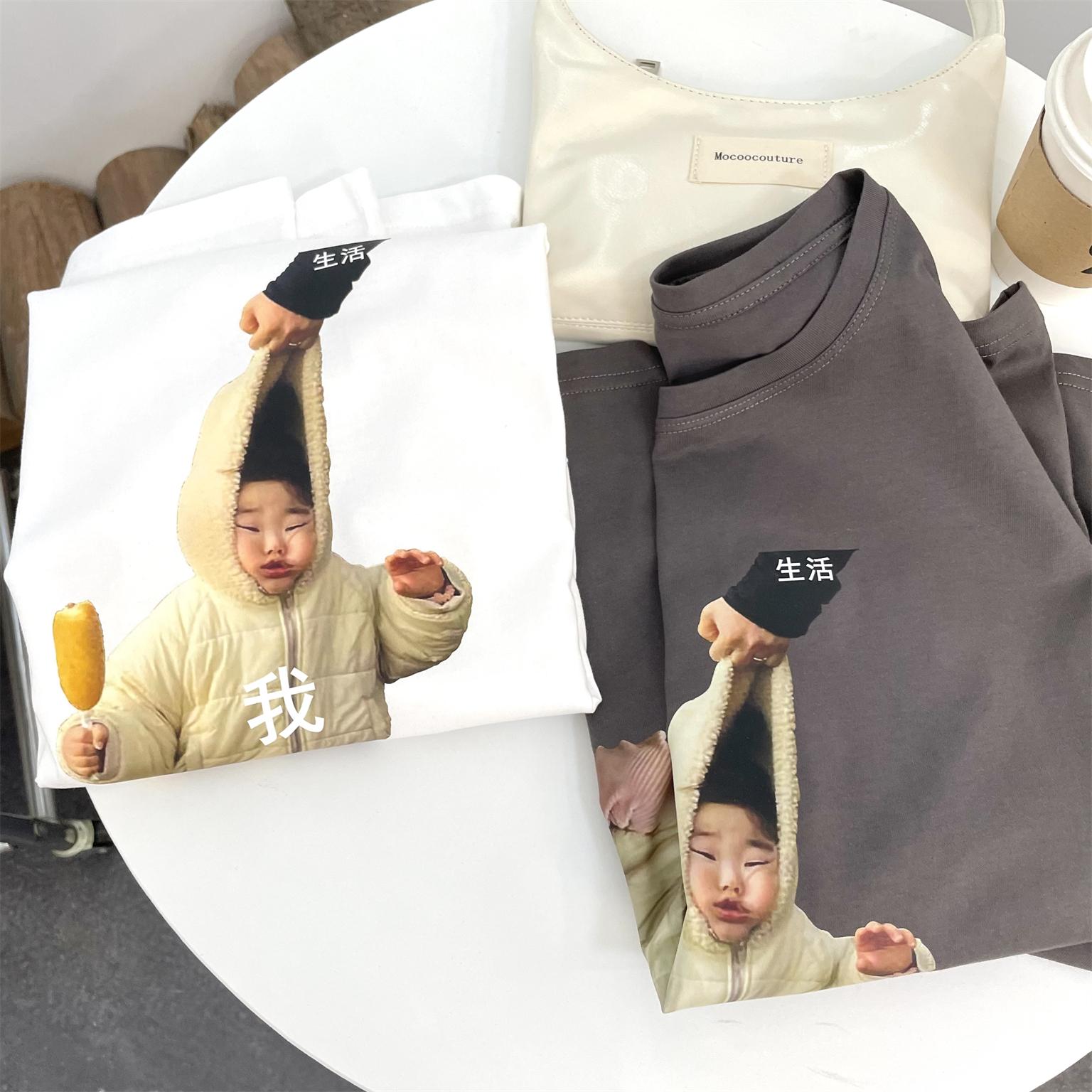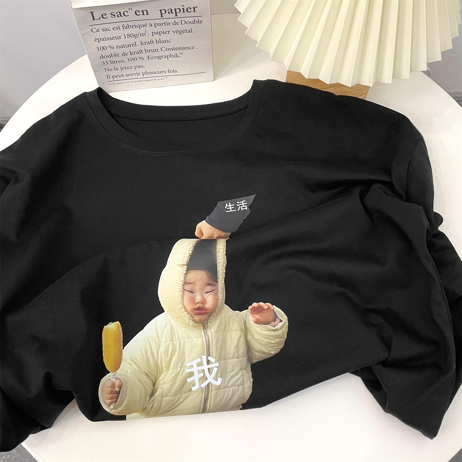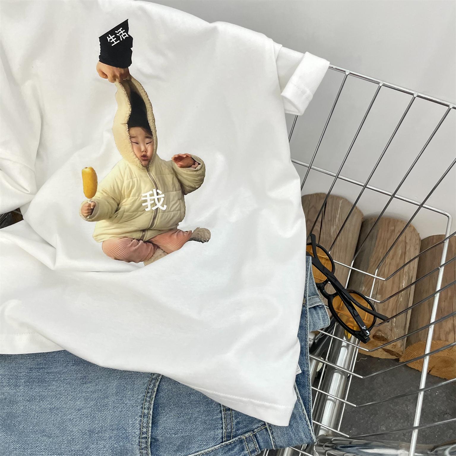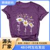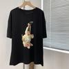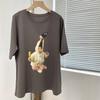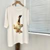 Camiseta informal de verano con cuello redondo y estampado de dibujos animados para mujer, holgada, adelgazante, combinable con todo, de manga corta