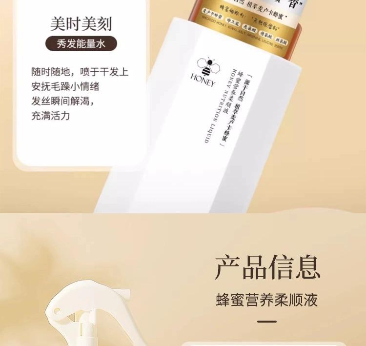 Bee Xun Journey Esencia de Miel Solución Nutritiva Spray Cuidado del Cabello Mejora el Cabello Seco y Encrespado Spray Suave Fragancia Duradera para Mujer