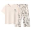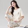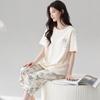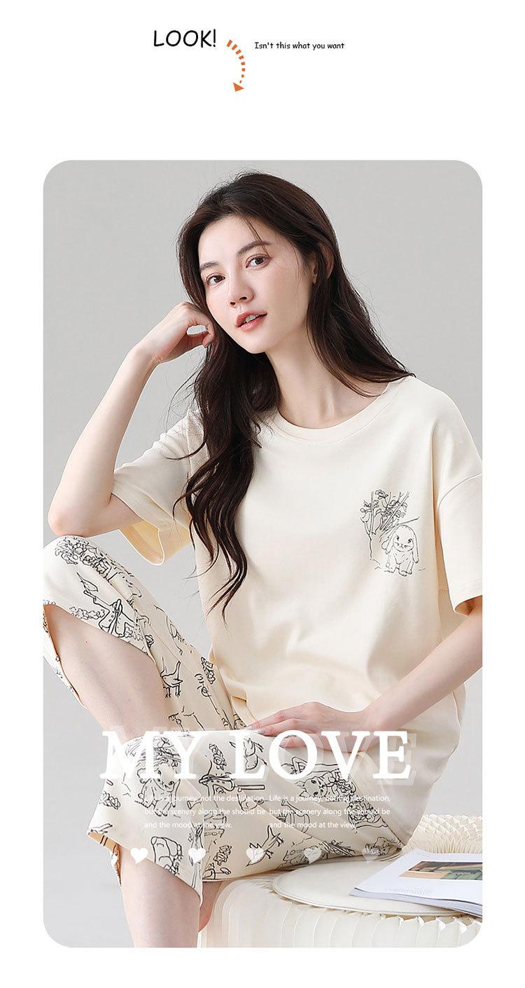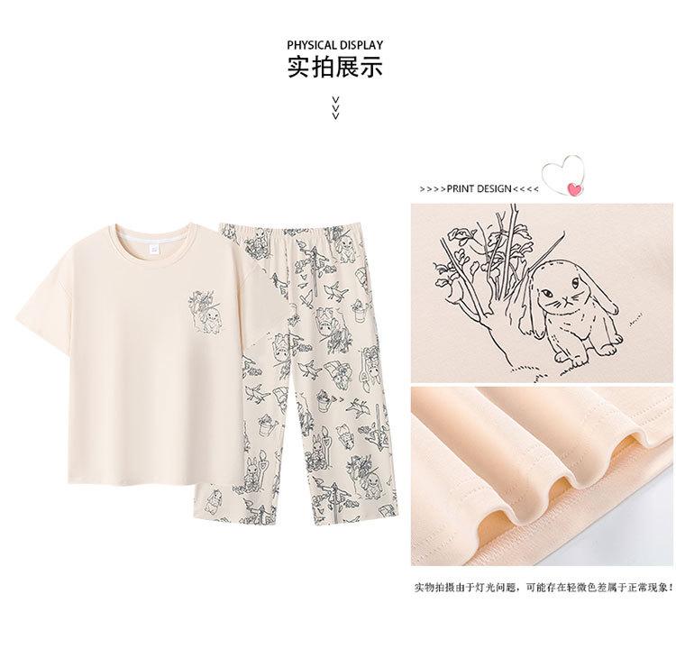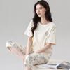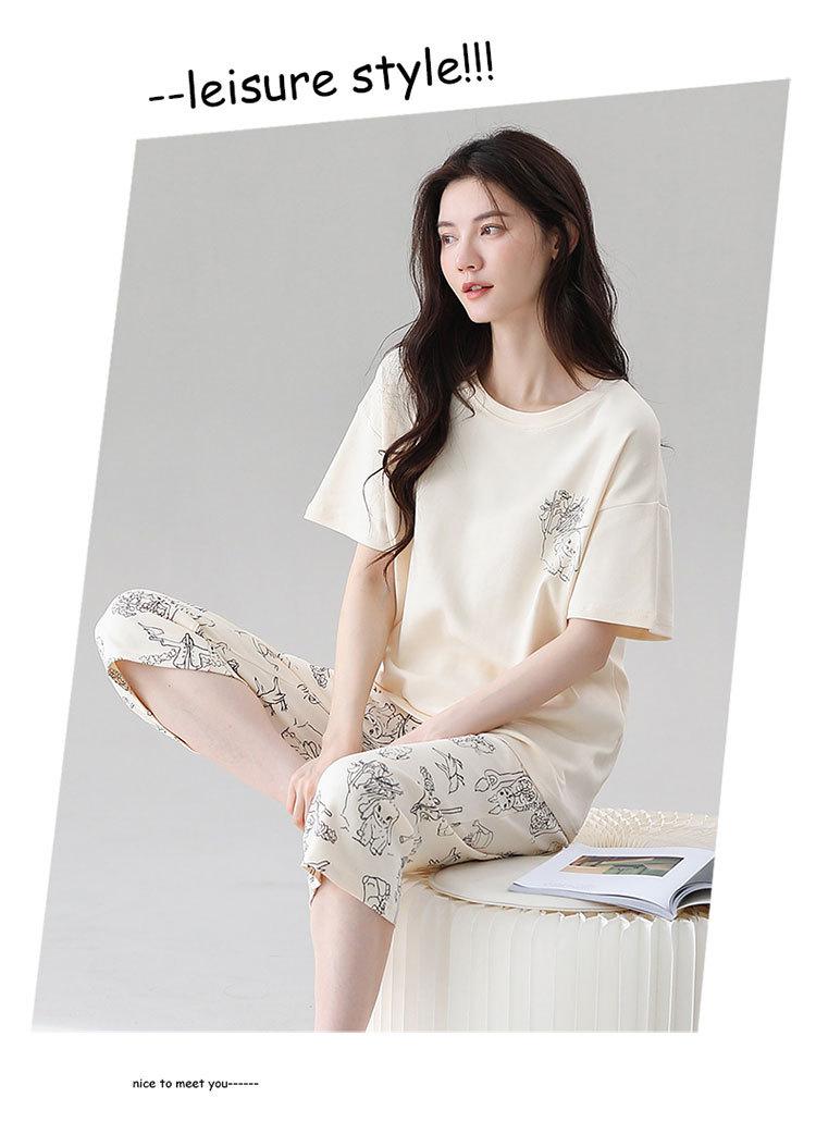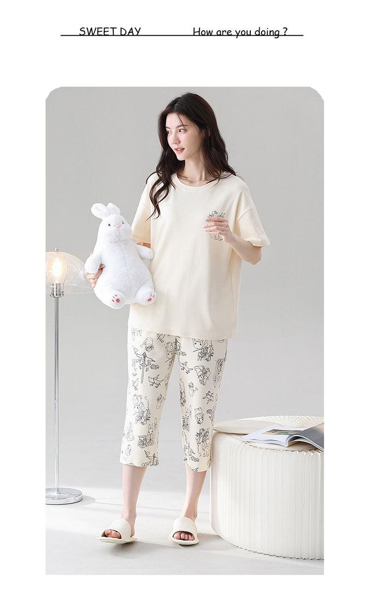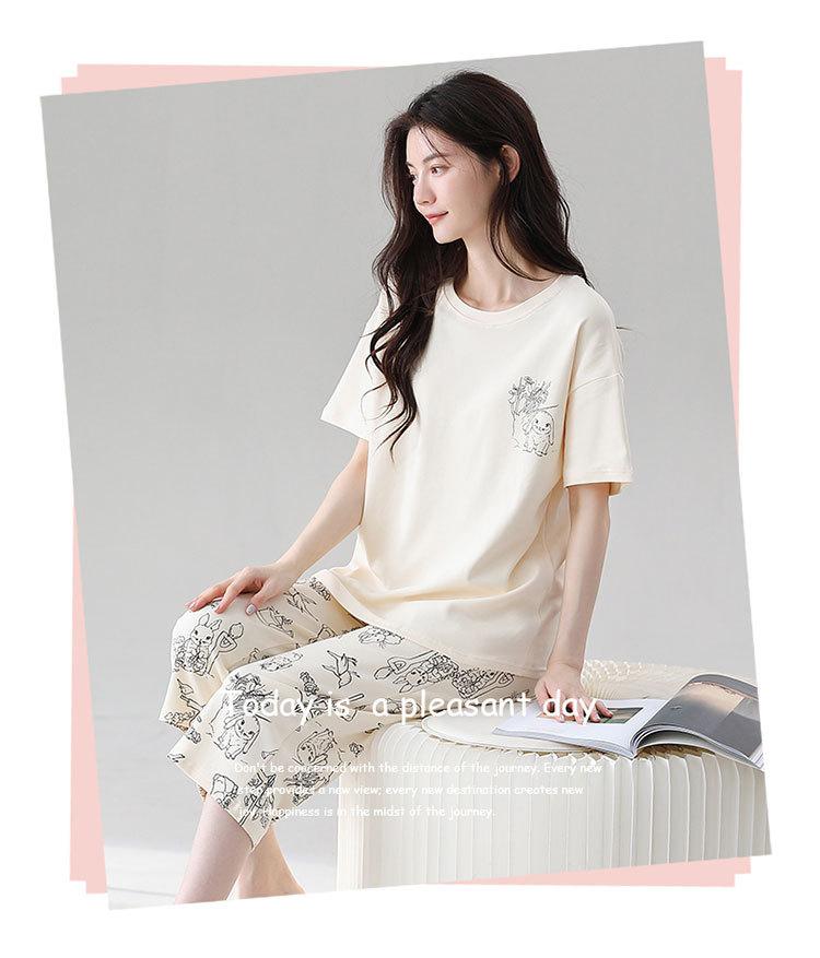 Pijama de algodón de verano para mujer, pantalones capri de manga corta con cuello redondo, ropa informal para el hogar, ropa exterior de estilo coreano para mujer, traje de algodón fresco