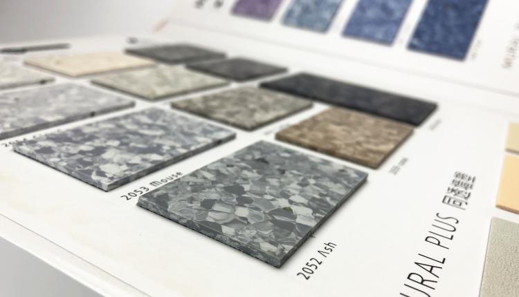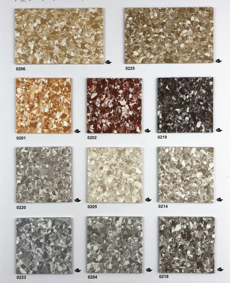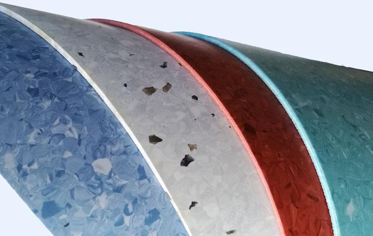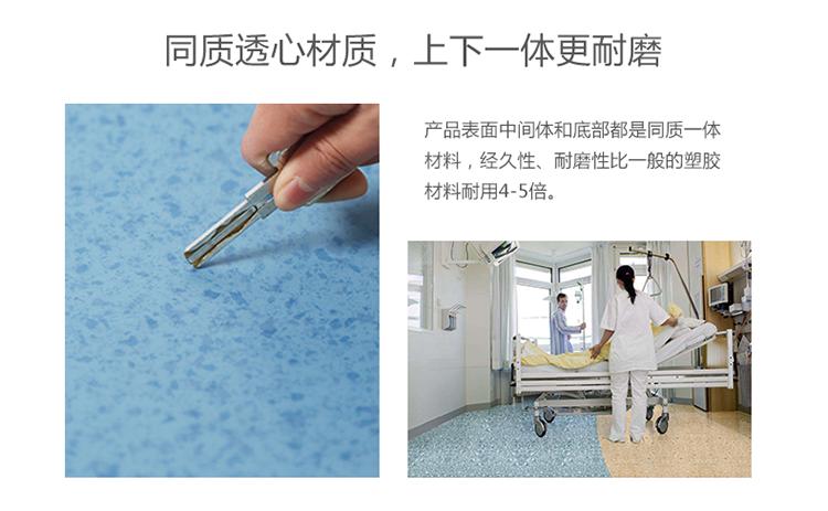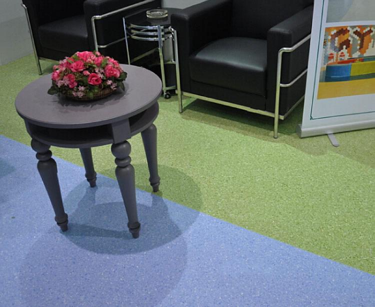 ↓Material enrollado de 2.0 mm de espesor, piso permeable homogéneo no direccional, capa resistente al desgaste 2 mm