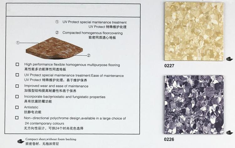 ↓Material en rollo de 2.0 mm de espesor, piso homogéneo permeable no direccional, capa de desgaste 2 mm, un rollo de 2 metros de ancho * 20 metros de largo