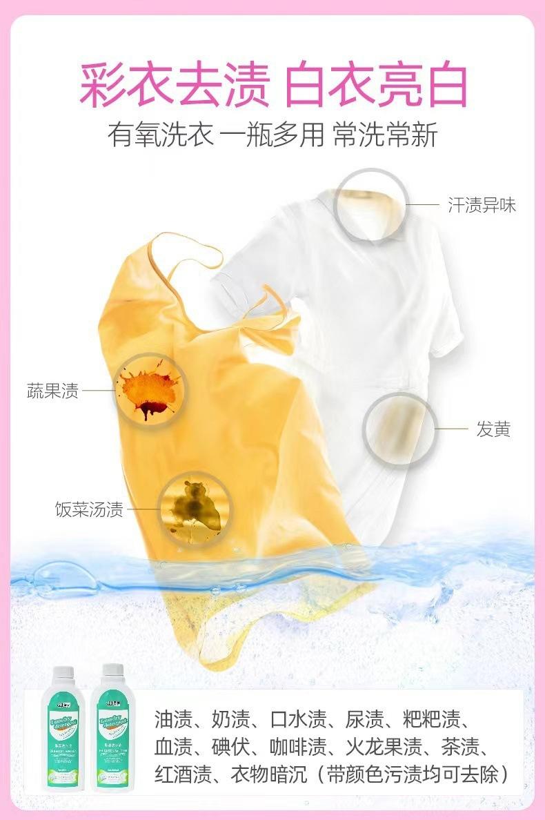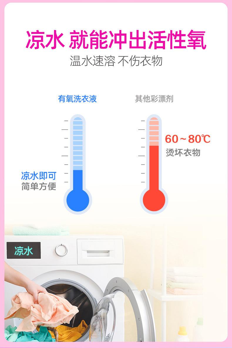 El detergente para ropa blanqueador de color debe medirse en la misma cantidad de detergente Shengyan para eliminar el amarillo, quitar manchas, blanquear, proteger el color, descontaminar con oxígeno activo y remojar.