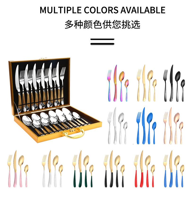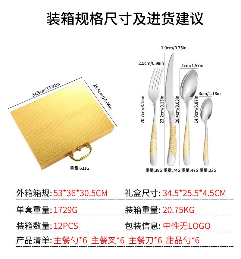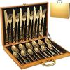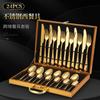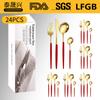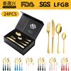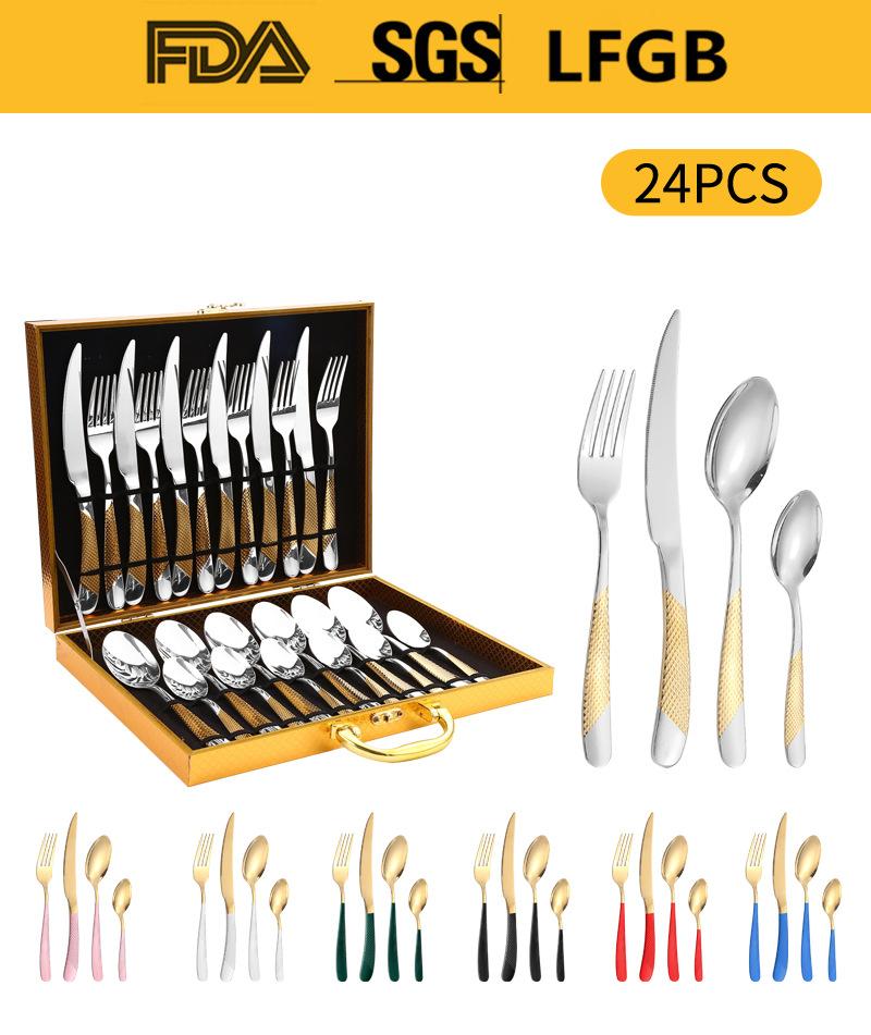 Vajilla de acero inoxidable Amazon TikTok de 24 piezas con diseño de estrella y diamante, cuatro cuchillos, tenedores y cucharas occidentales principales, caja de regalo dorada