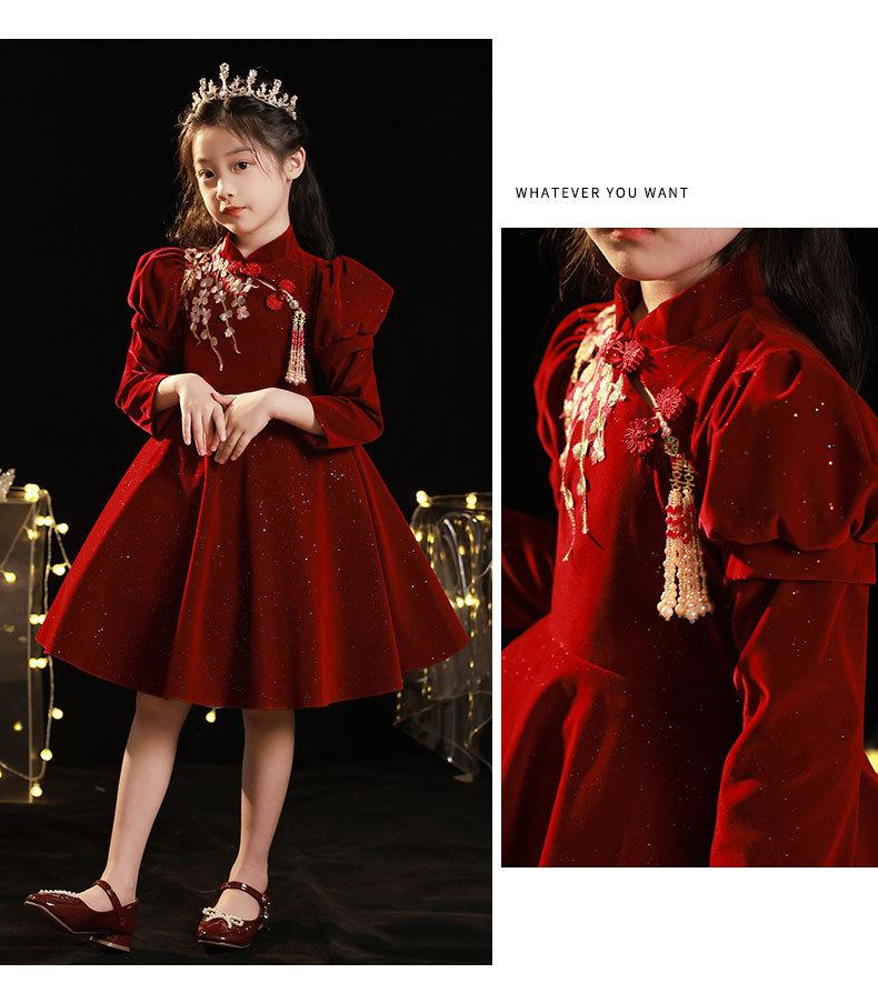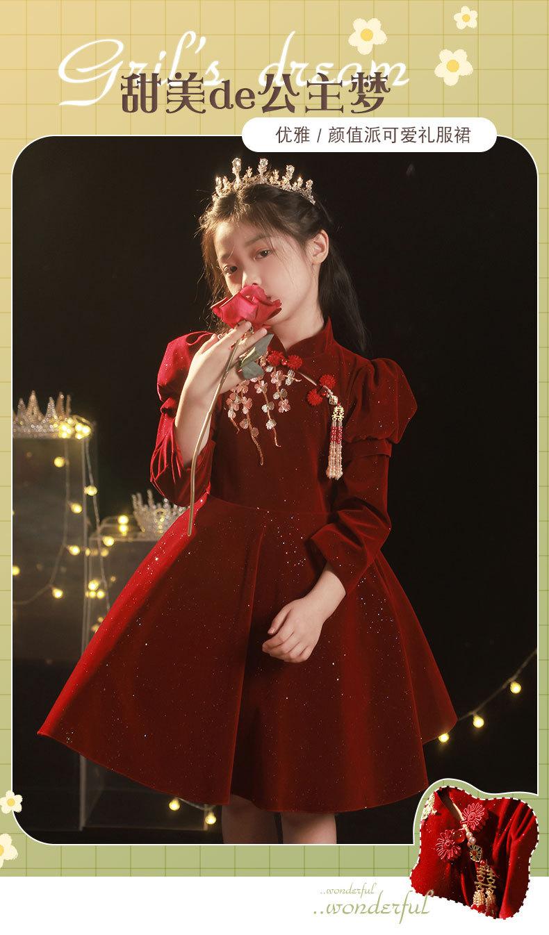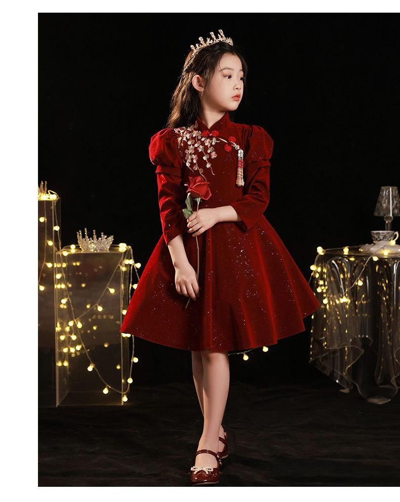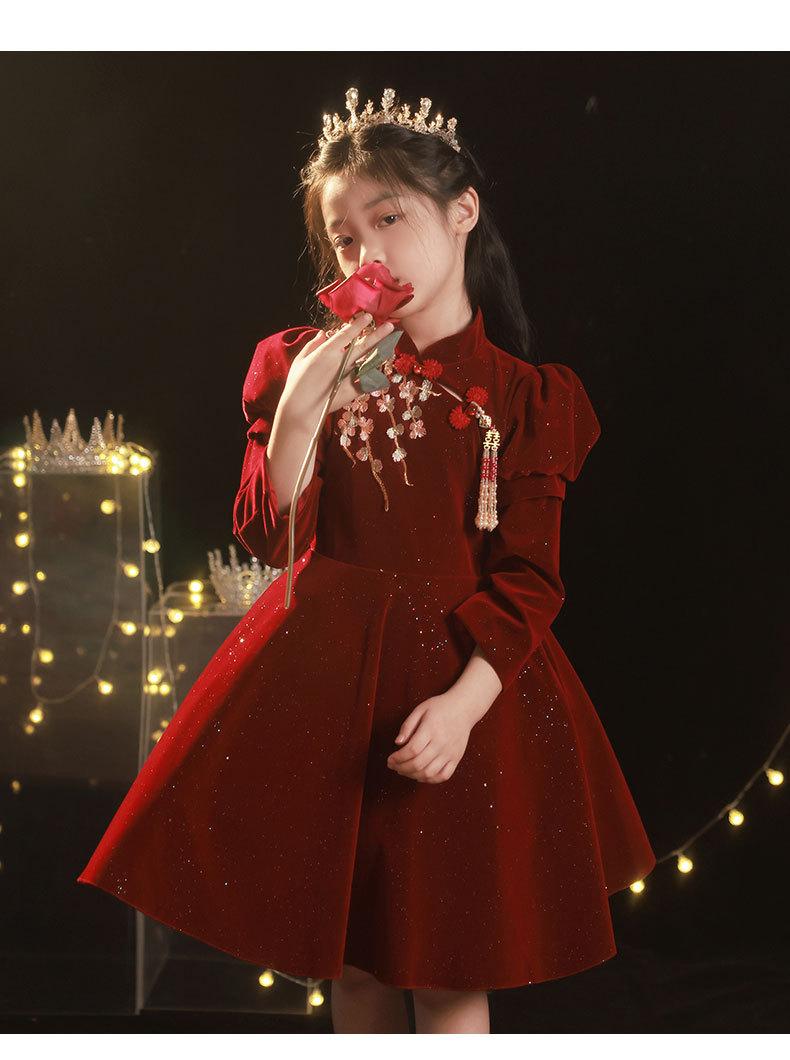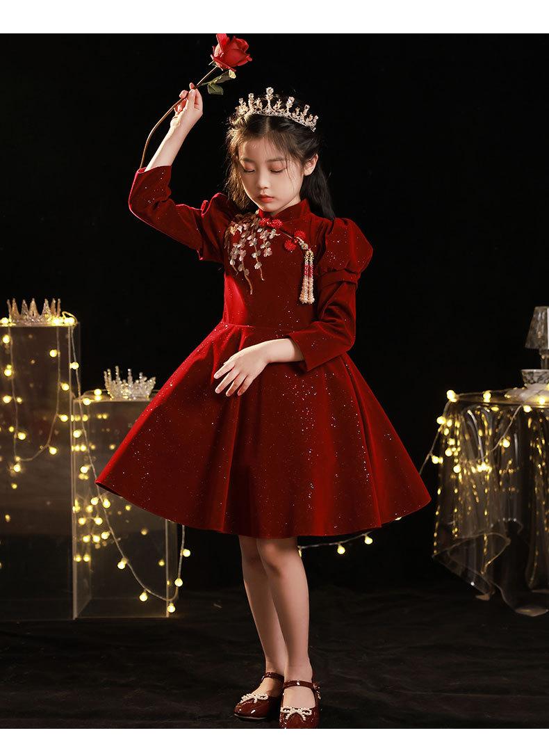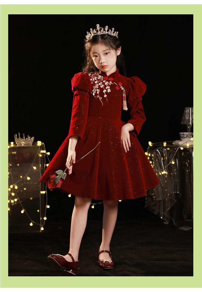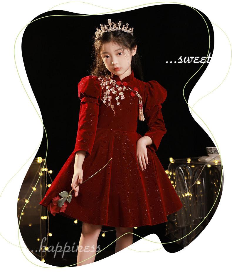 Vestido de Manga Larga para Fiesta de Primer Cumpleaños de Niña 2025 Vestido de Princesa de Terciopelo para Actuación de Piano Invierno