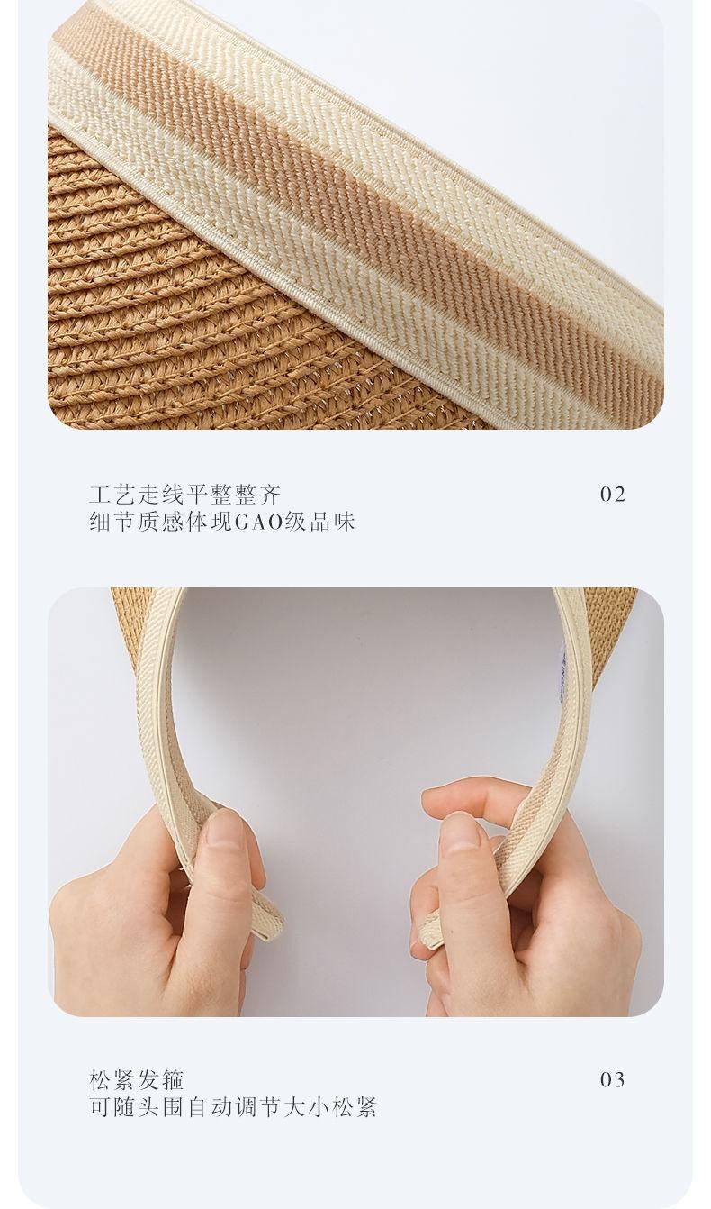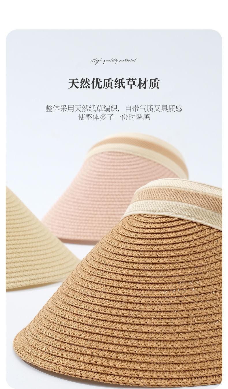Sombrero Visera de Paja de Rafia para Mujer, Sombrero de Paja Parasol para Uso en Exteriores, Protección UV, Sombrero Solar Cubre-Rostro, Protección Solar