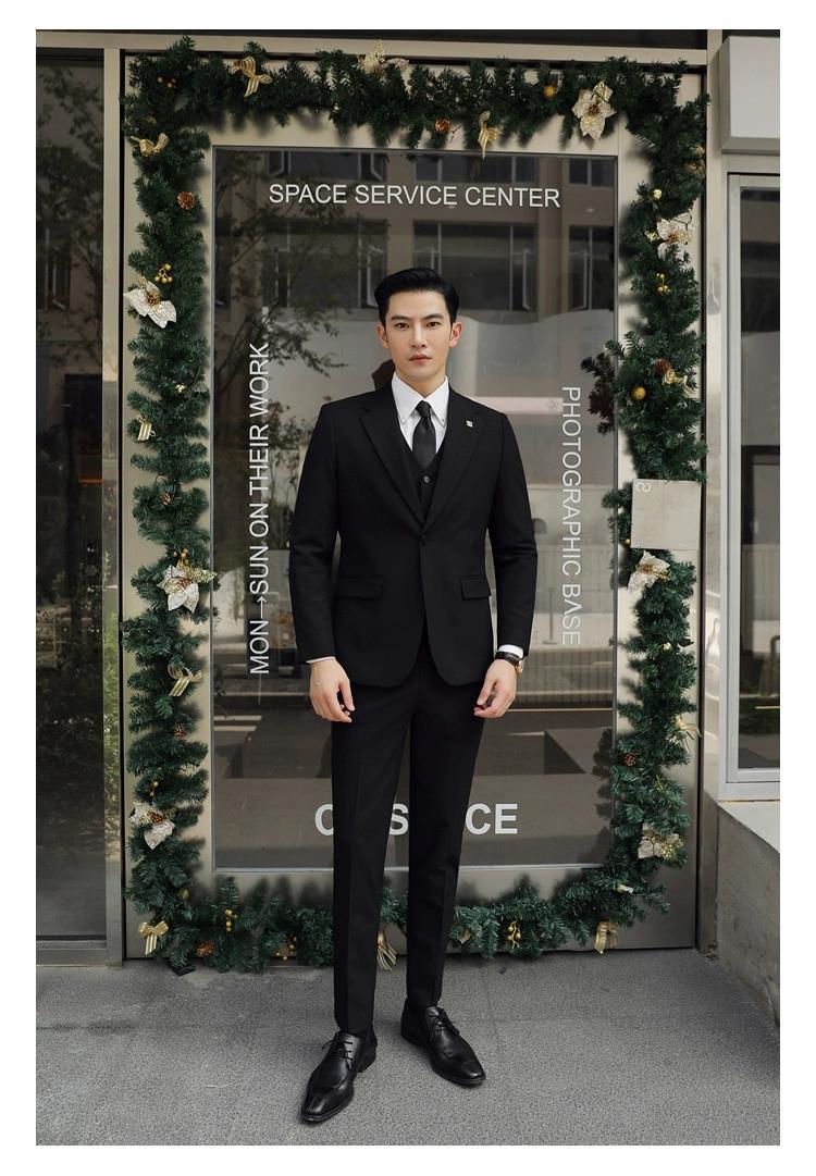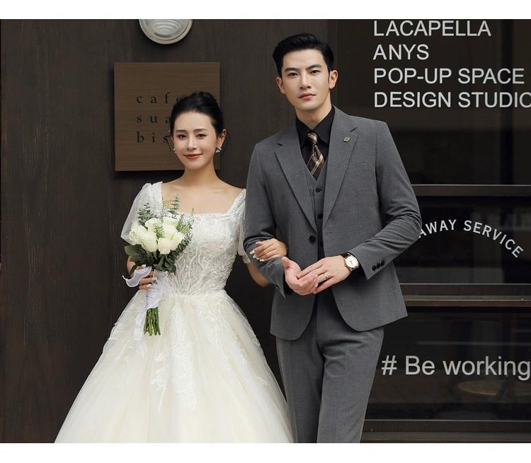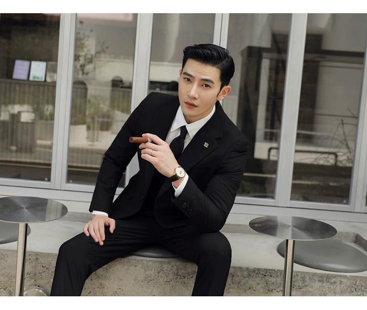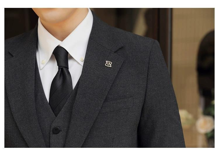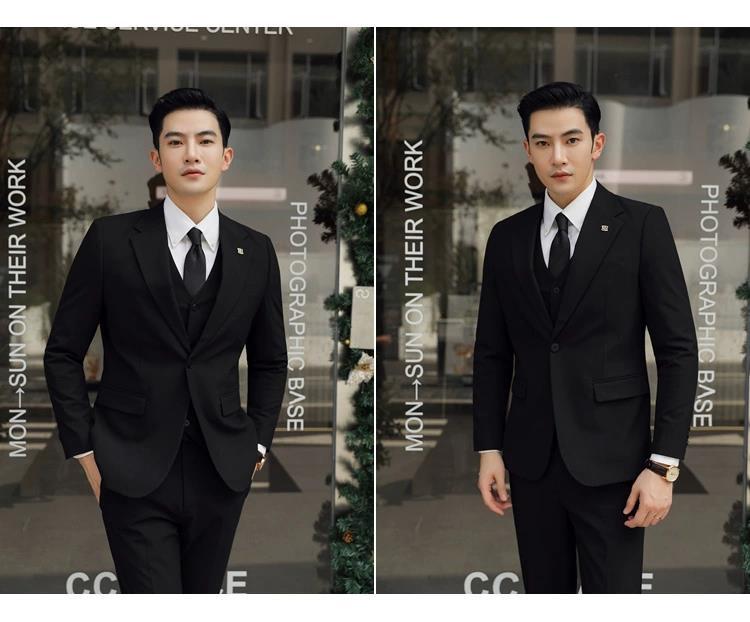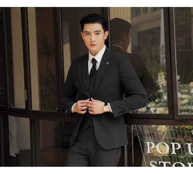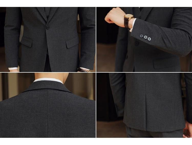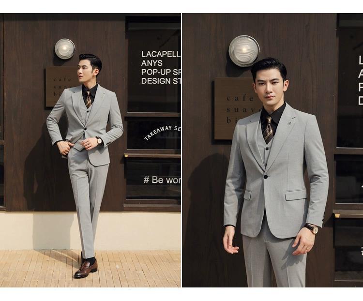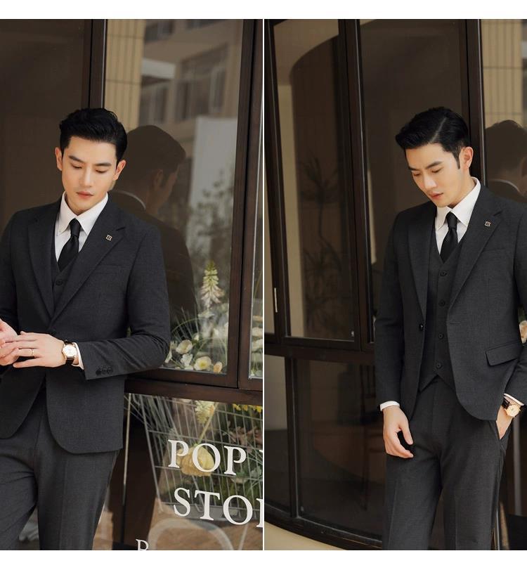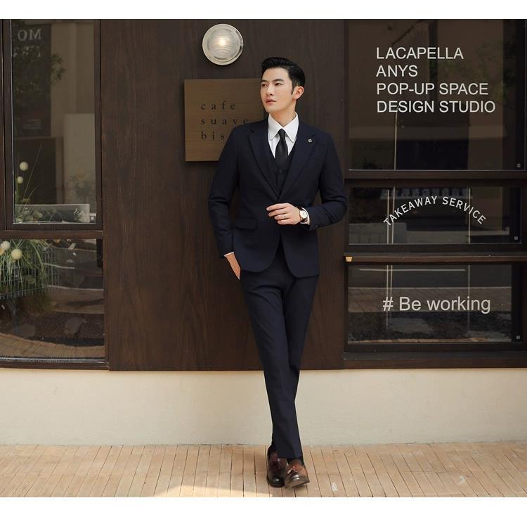 Traje de tres piezas para hombre, otoño 2023, estilo coreano juvenil, color sólido, sencillo, informal, de negocios, ajustado