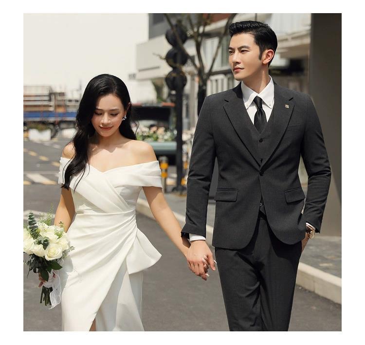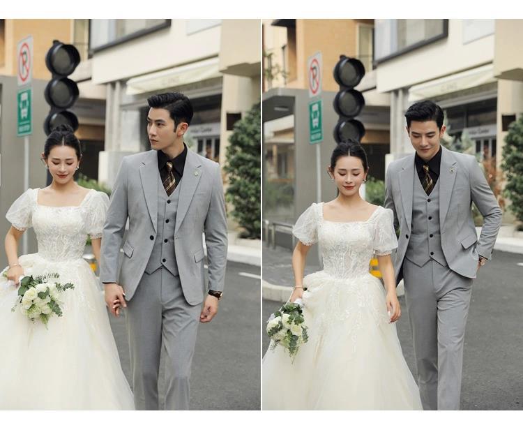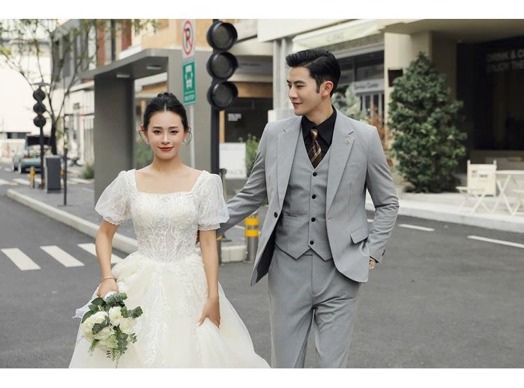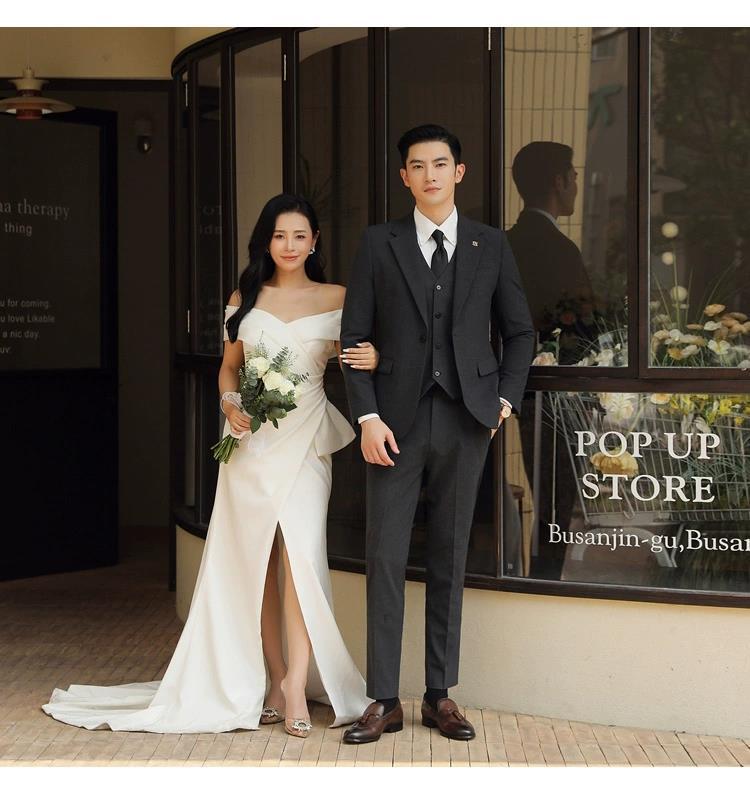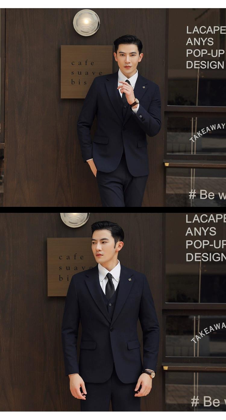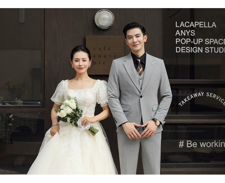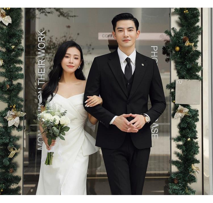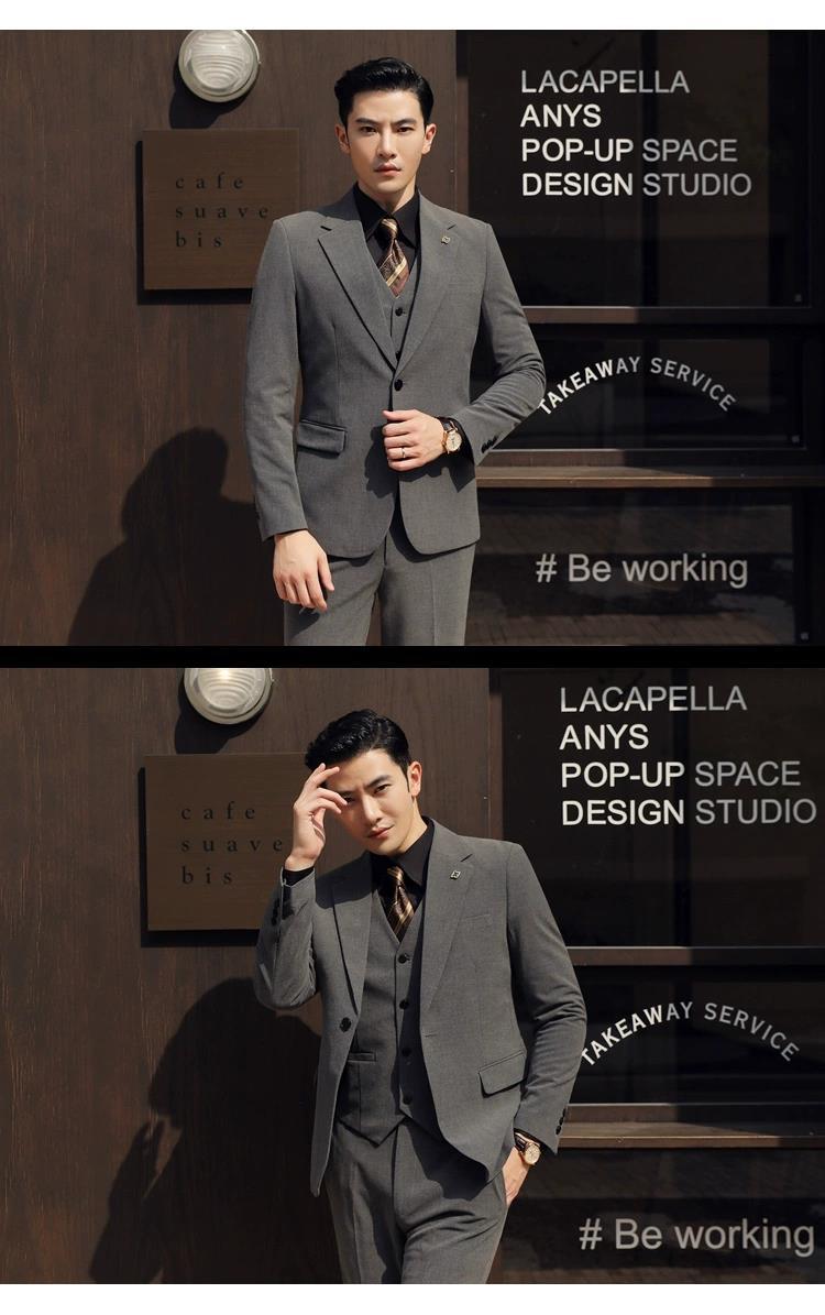 Traje de tres piezas para hombre, otoño 2023, estilo coreano juvenil, color sólido, sencillo, informal, de negocios, ajustado