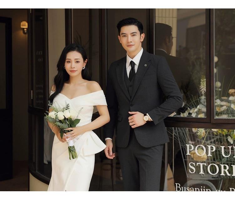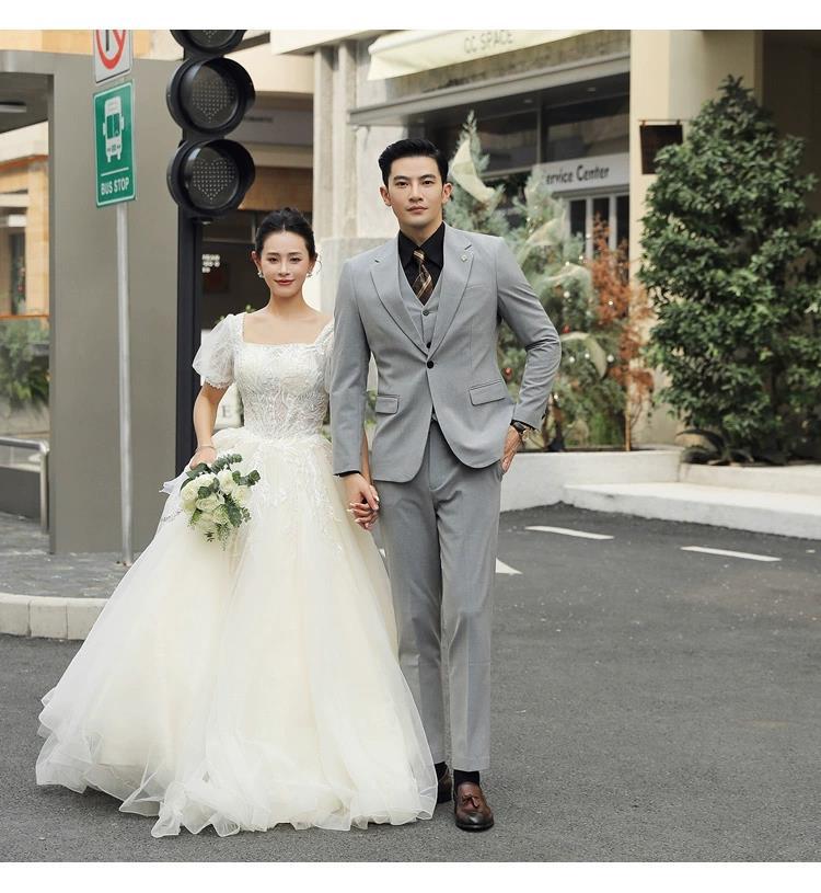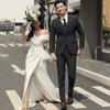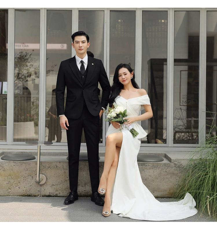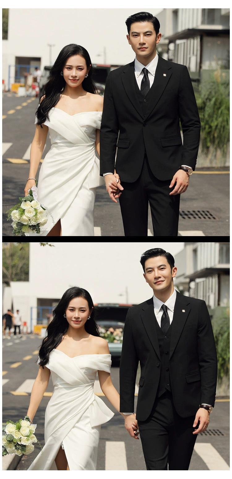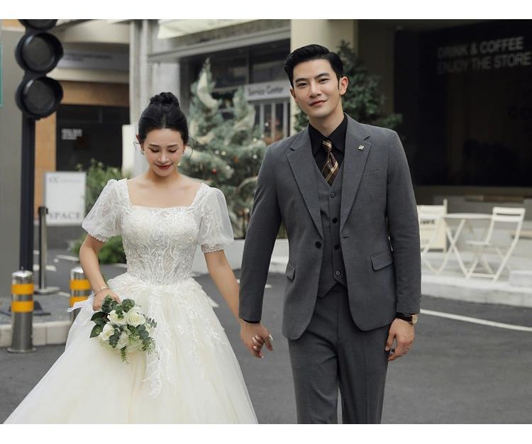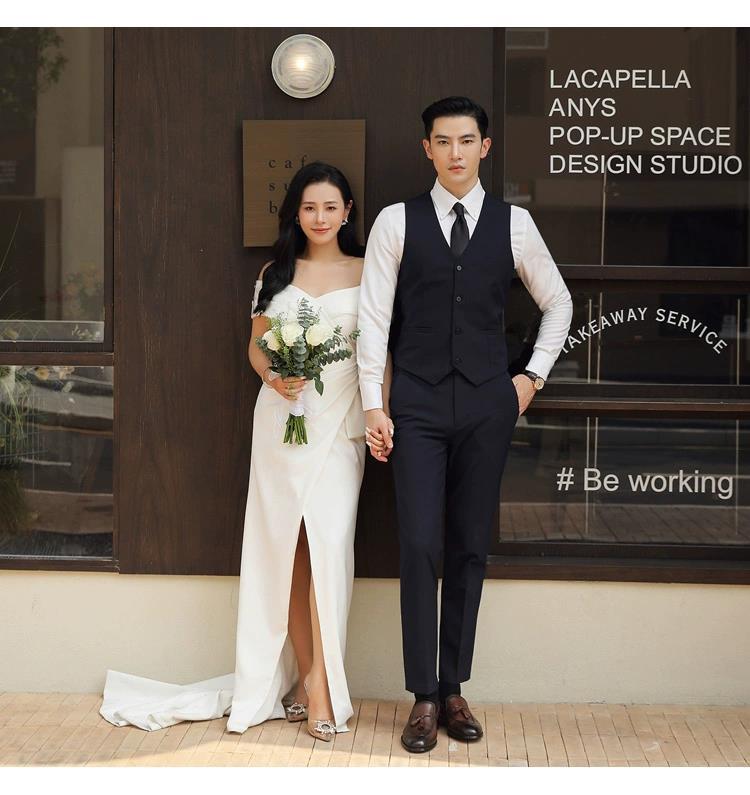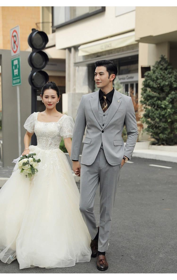 Traje de tres piezas para hombre, otoño 2023, estilo coreano juvenil, color sólido, sencillo, informal, de negocios, ajustado
