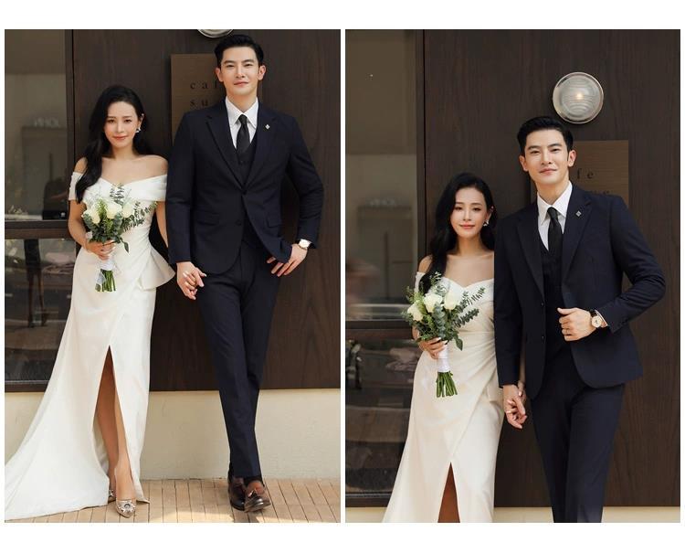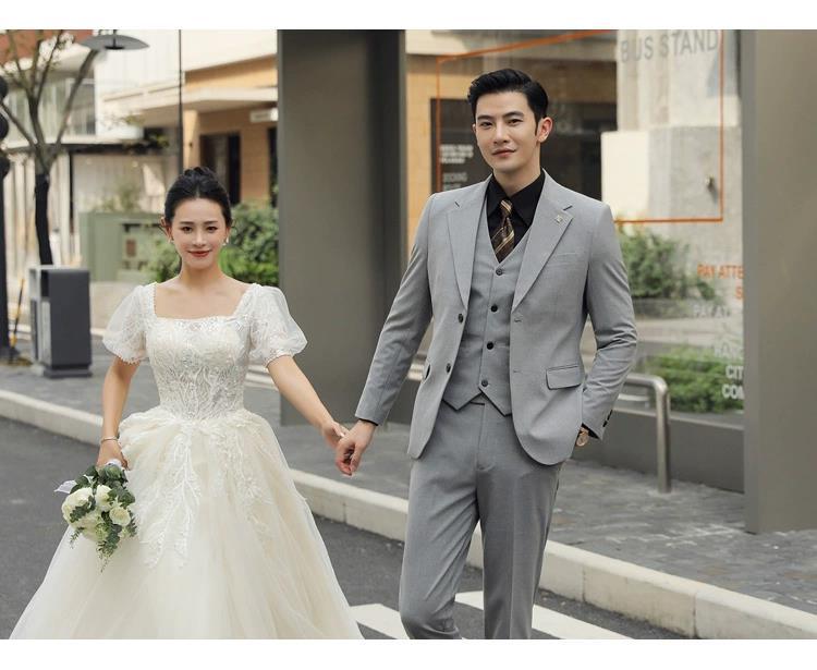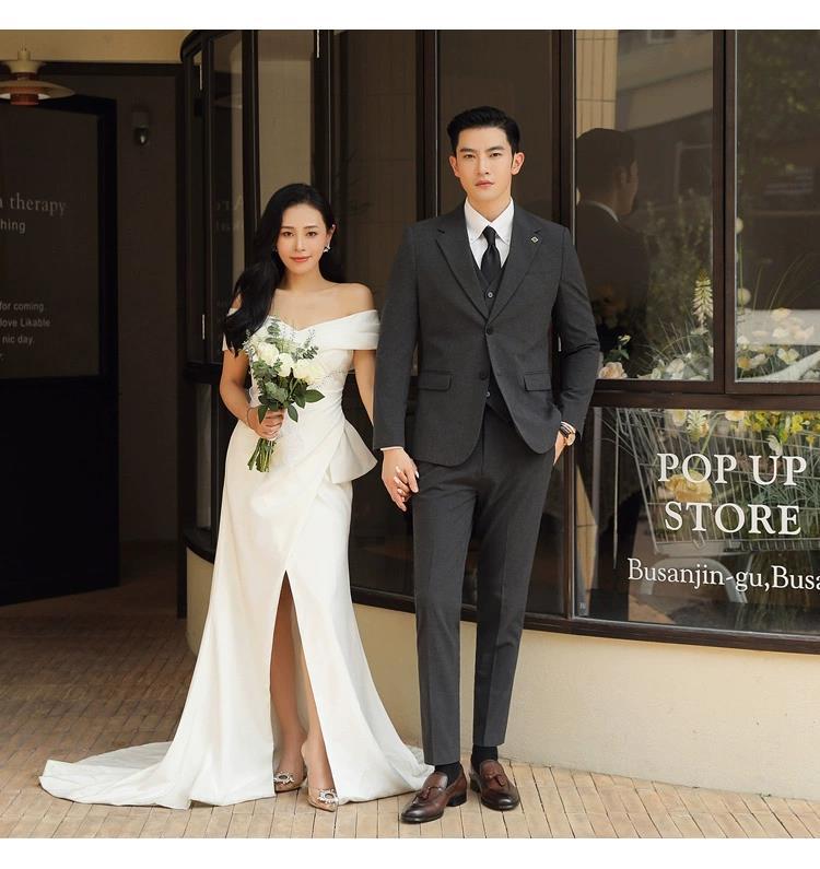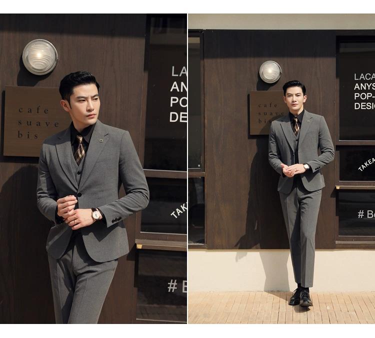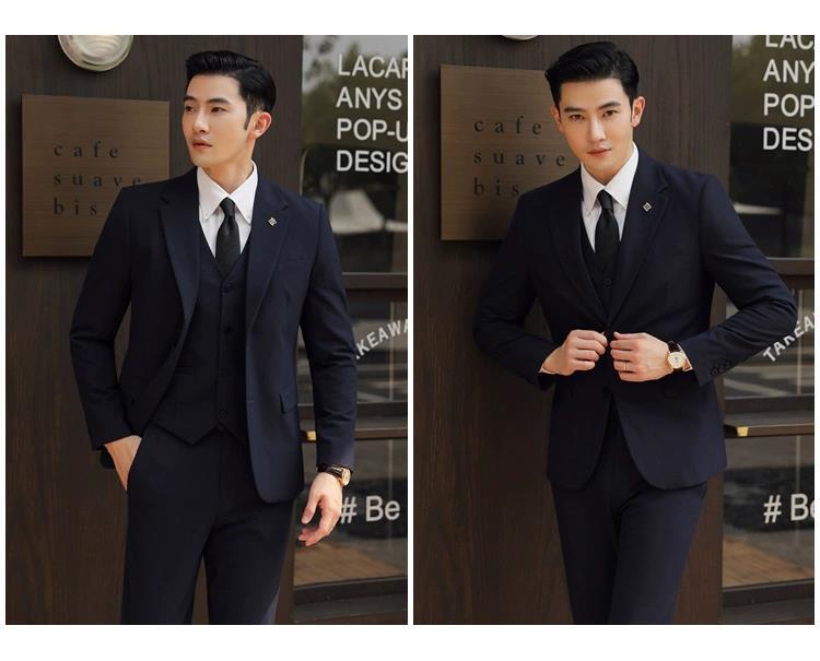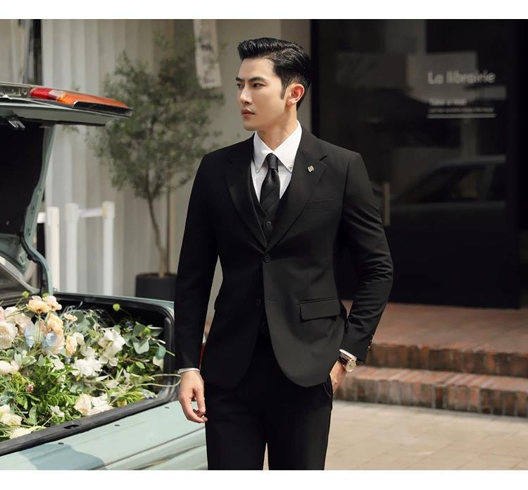 Traje de tres piezas para hombre, estilo coreano, para jóvenes, de negocios, de color sólido, sencillo, ropa formal, otoño 2023