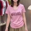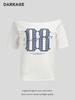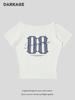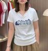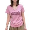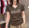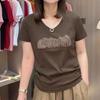 Nueva camiseta de manga corta con hombros descubiertos para mujer, estilo coreano, con estampado tie-dye, letras, cintura alta, corta, ajustada, con cuello en V.
