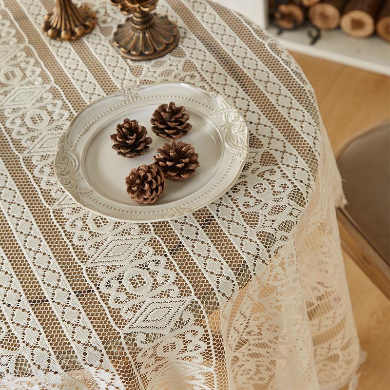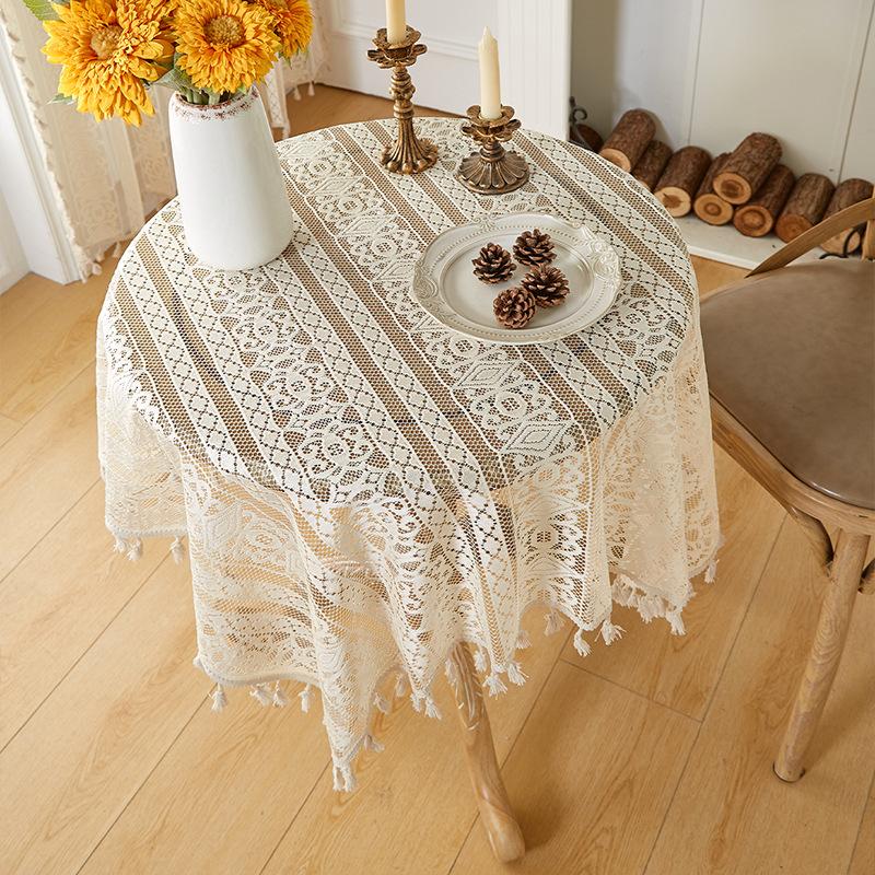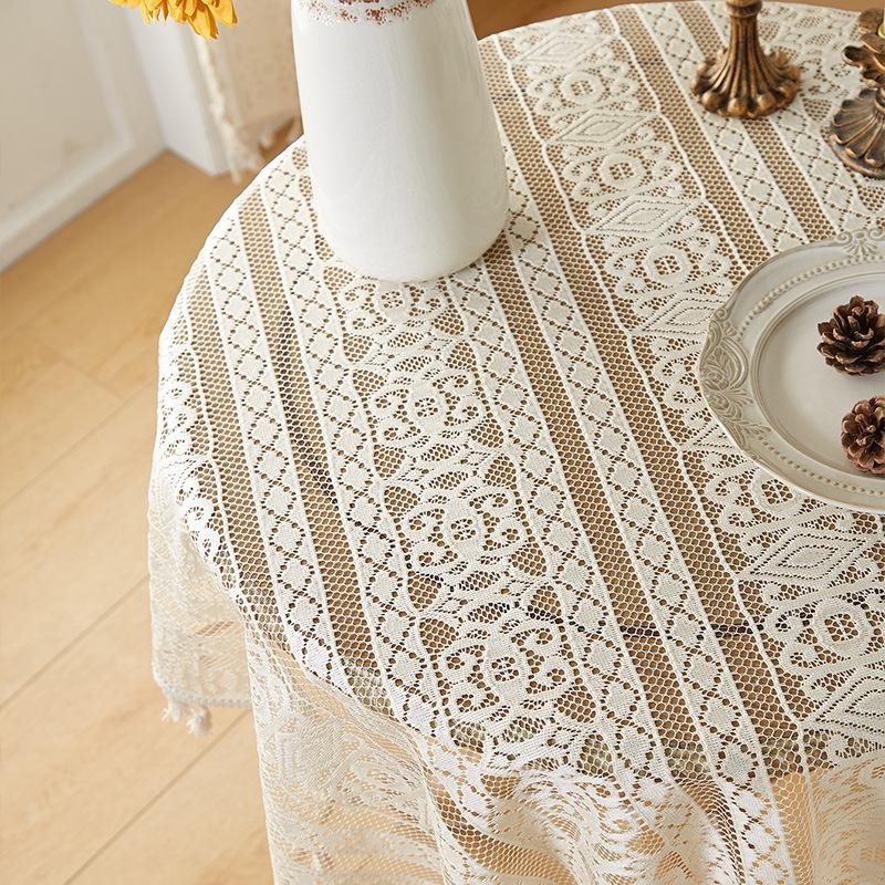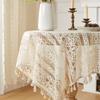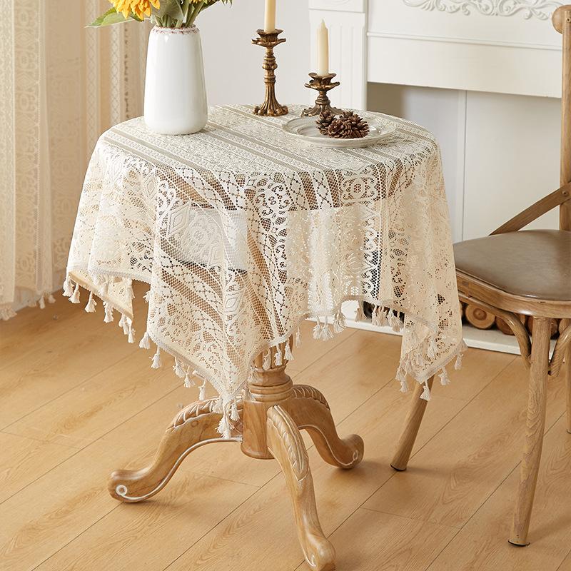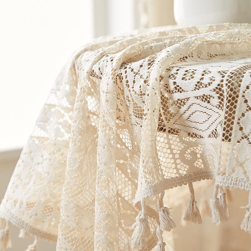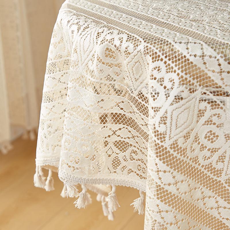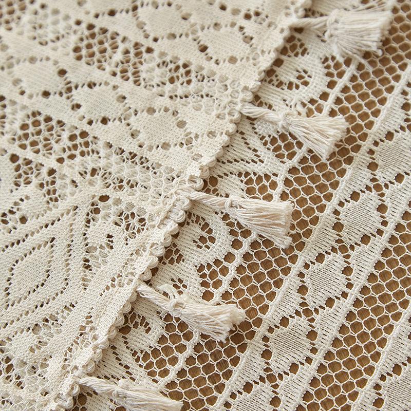 Mantel de encaje estilo bohemio, de algodón y lino, artístico, a prueba de polvo, estilo pastoral, para comedor, ahuecado, para el hogar.