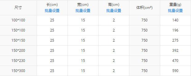 100*100, 150*100, 150*150, 150*200, 150*230, 150*300
