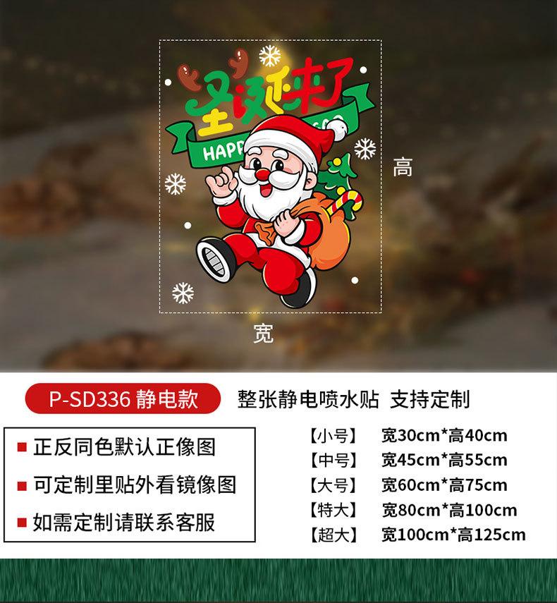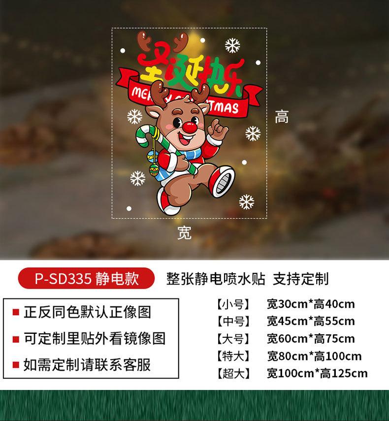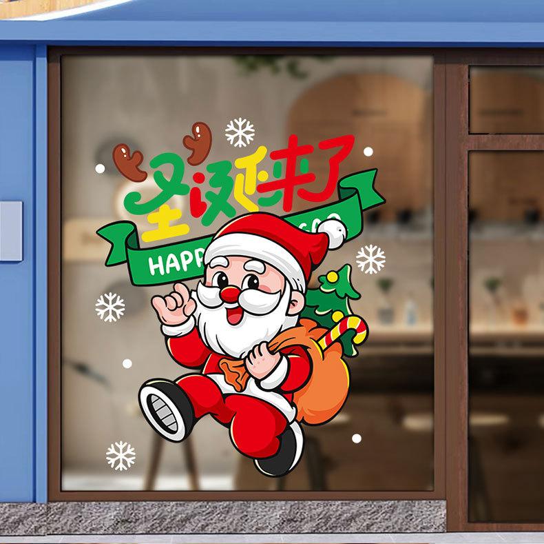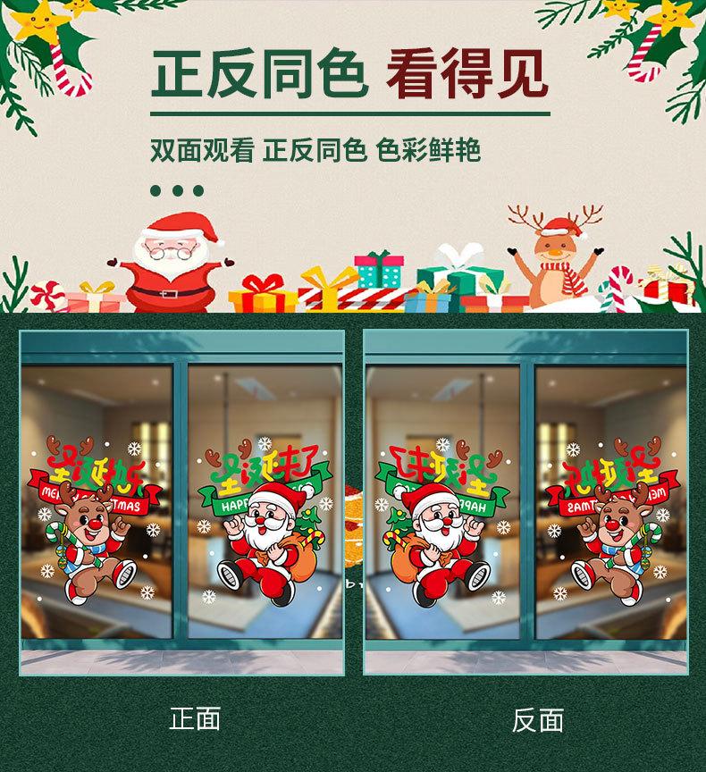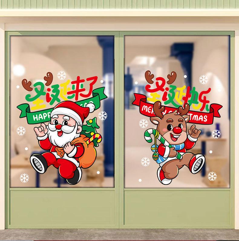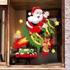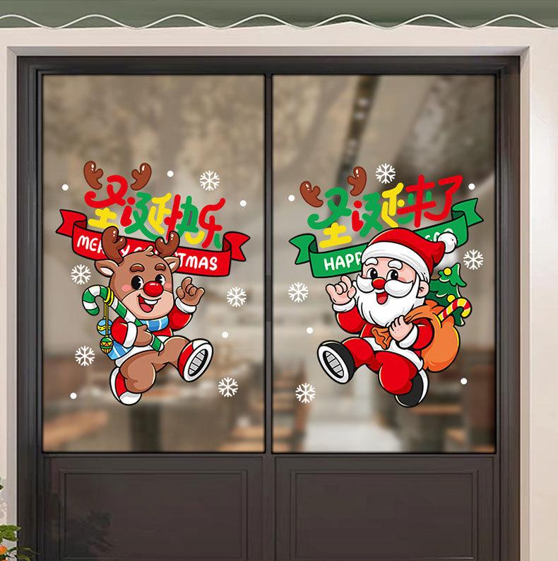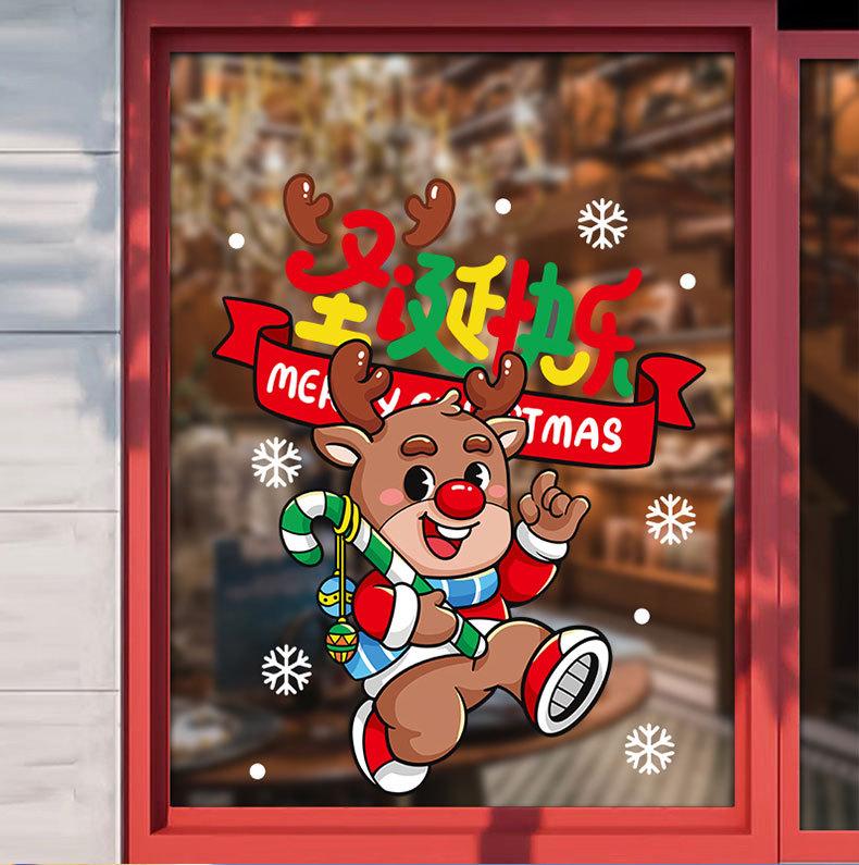Pegatinas navideñas de alce y Papá Noel para vidrio, diseño de escena de ventana de centro comercial, pegatinas electrostáticas de Feliz Navidad