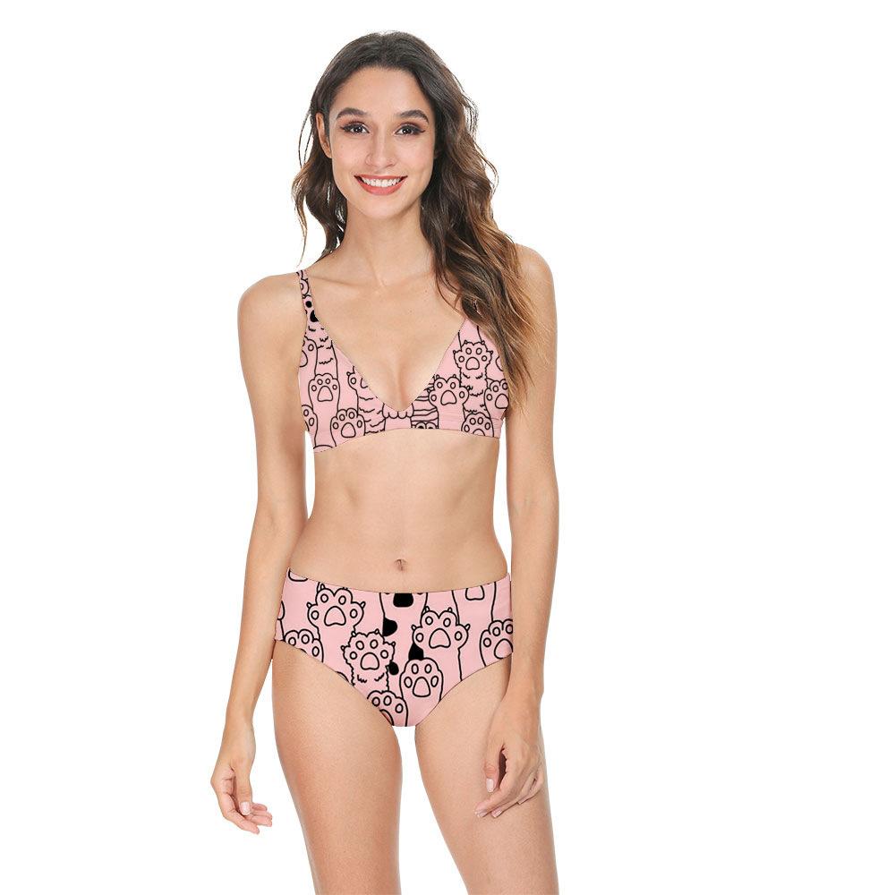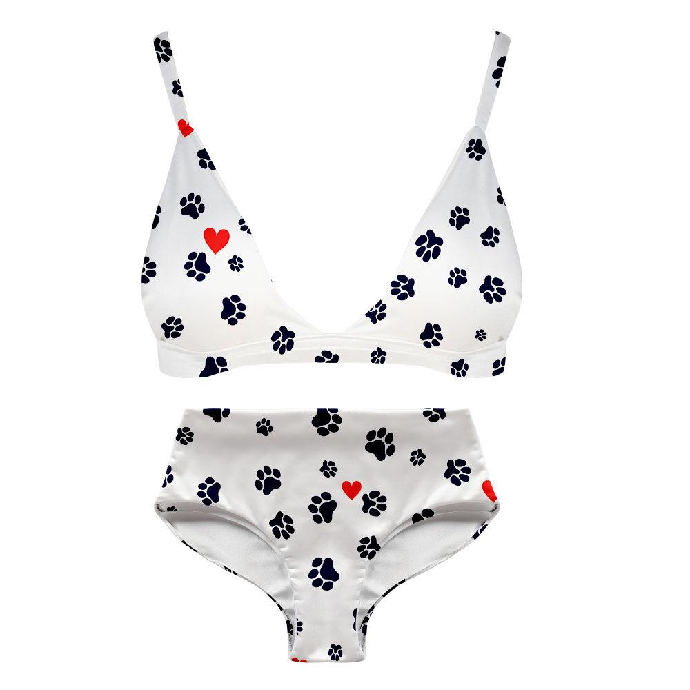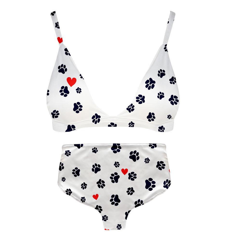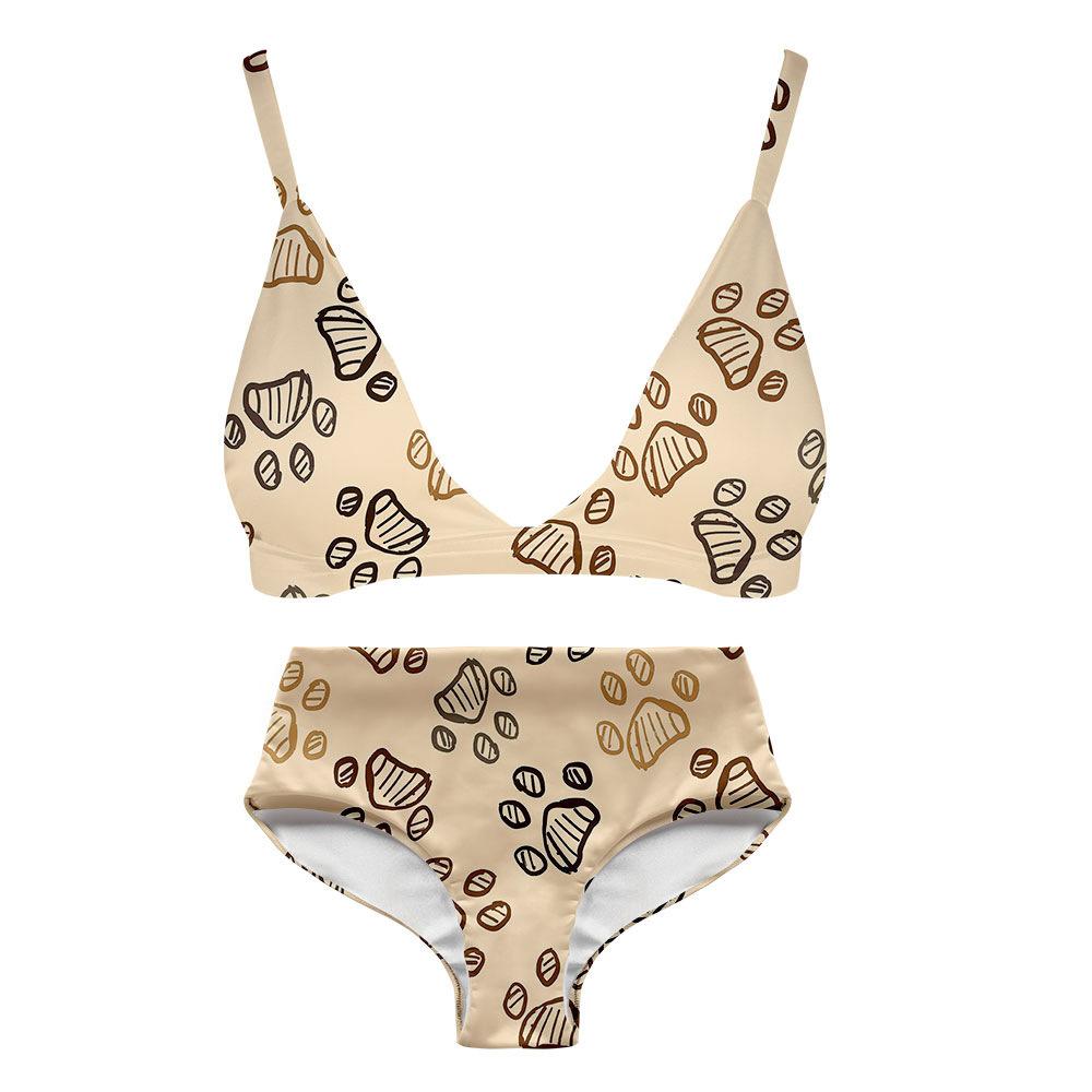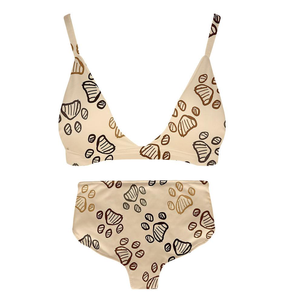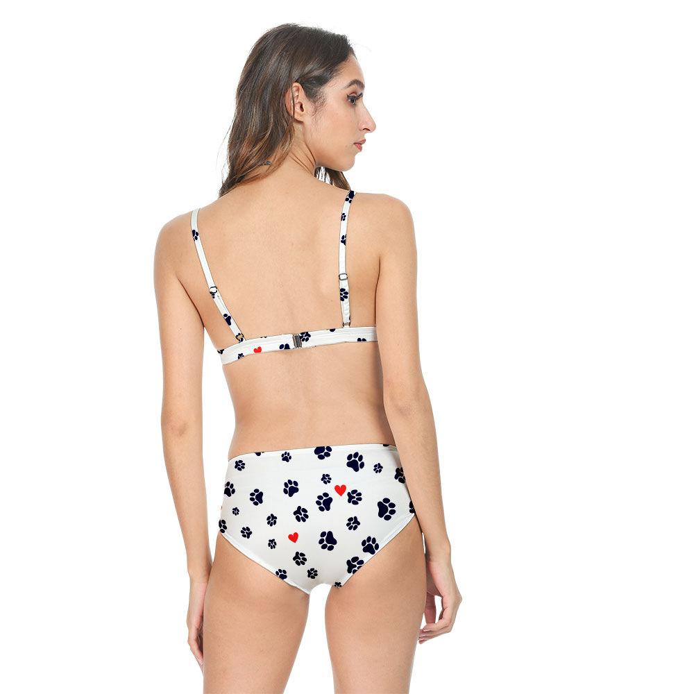 Traje de baño bikini de tres puntos dividido con estampado de huellas de pata de Amazon de verano transfronterizo