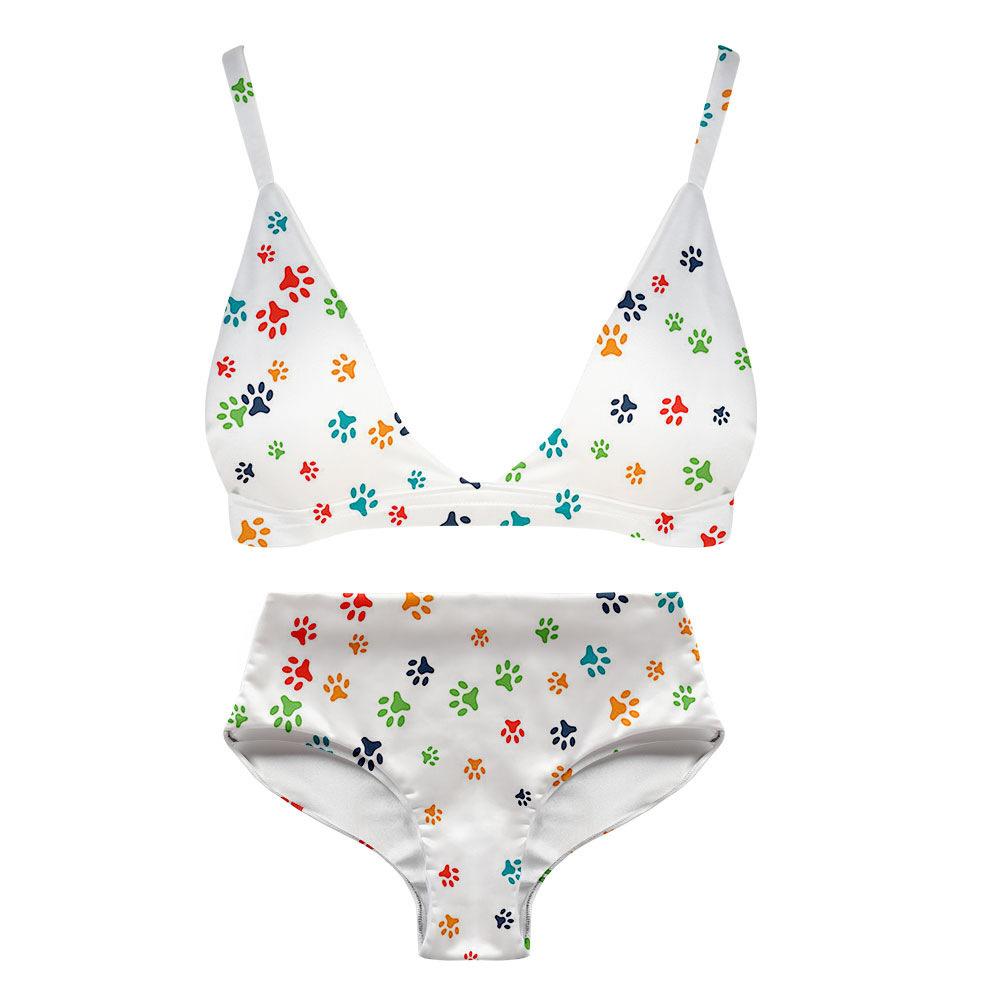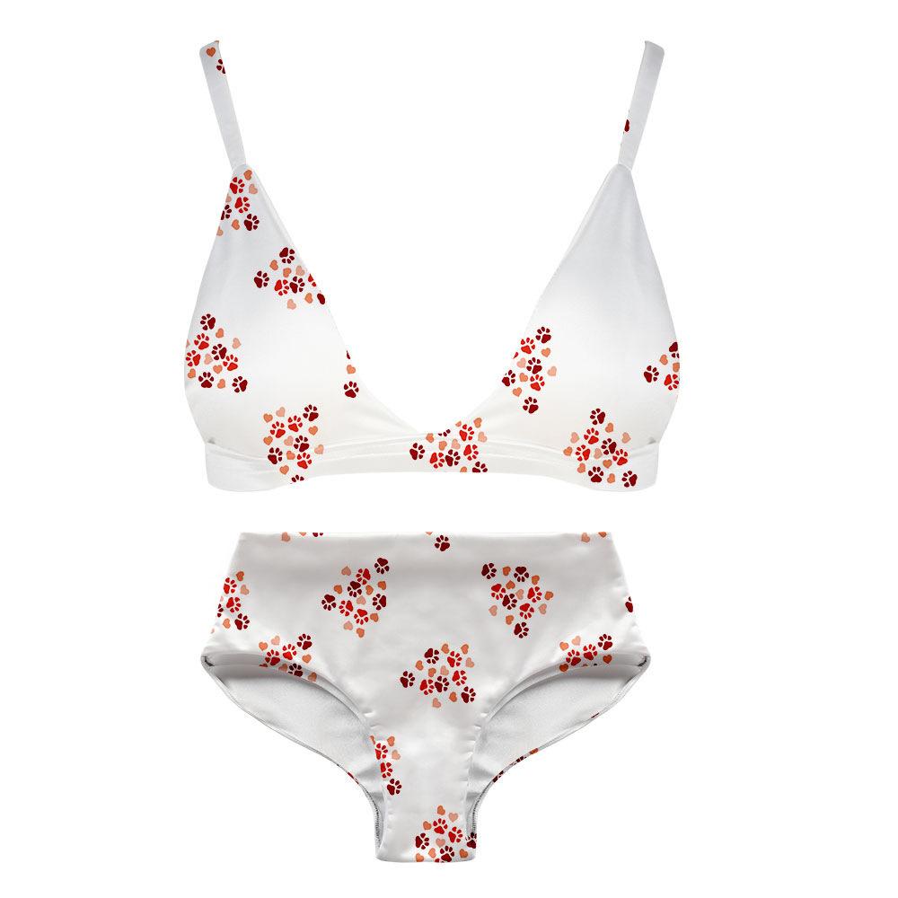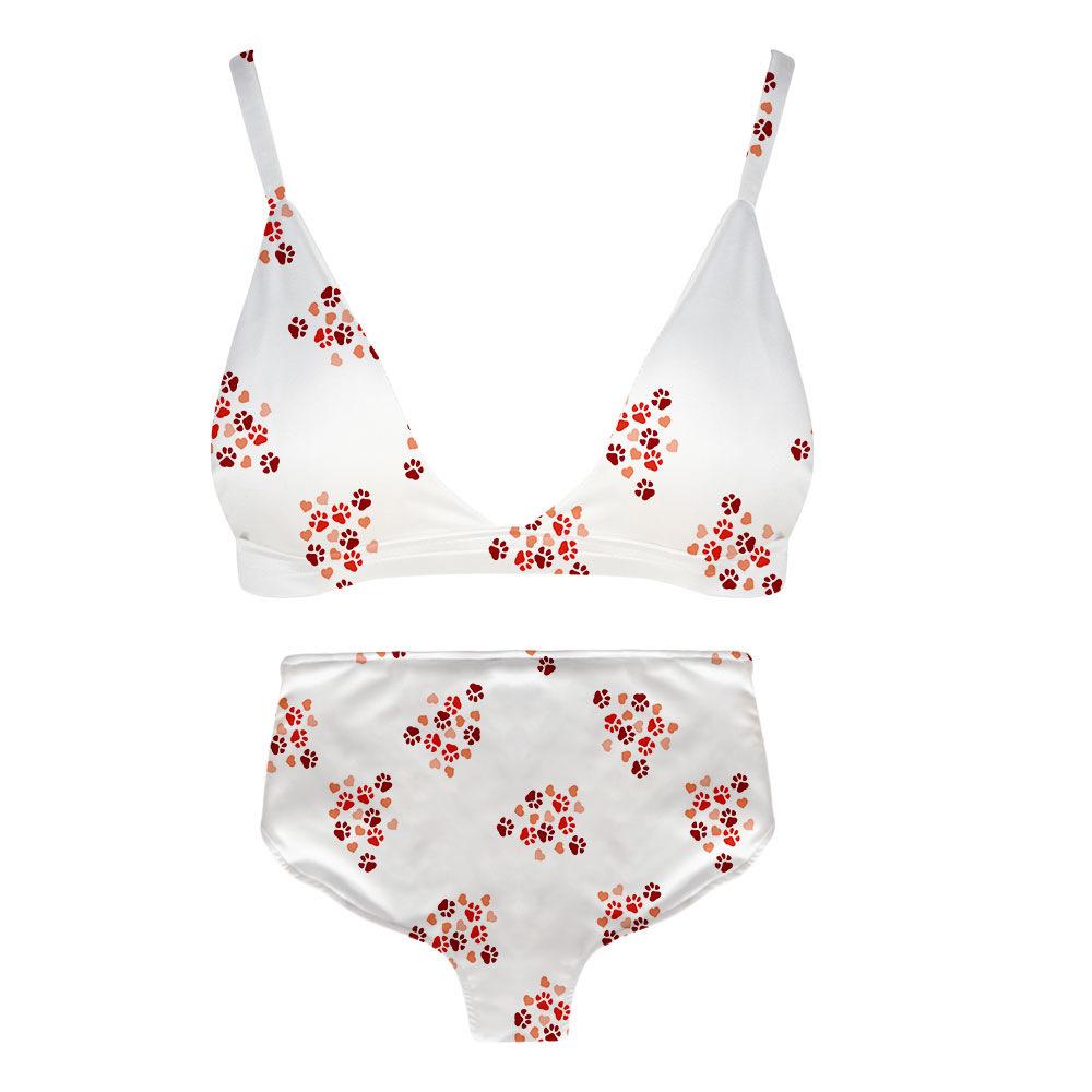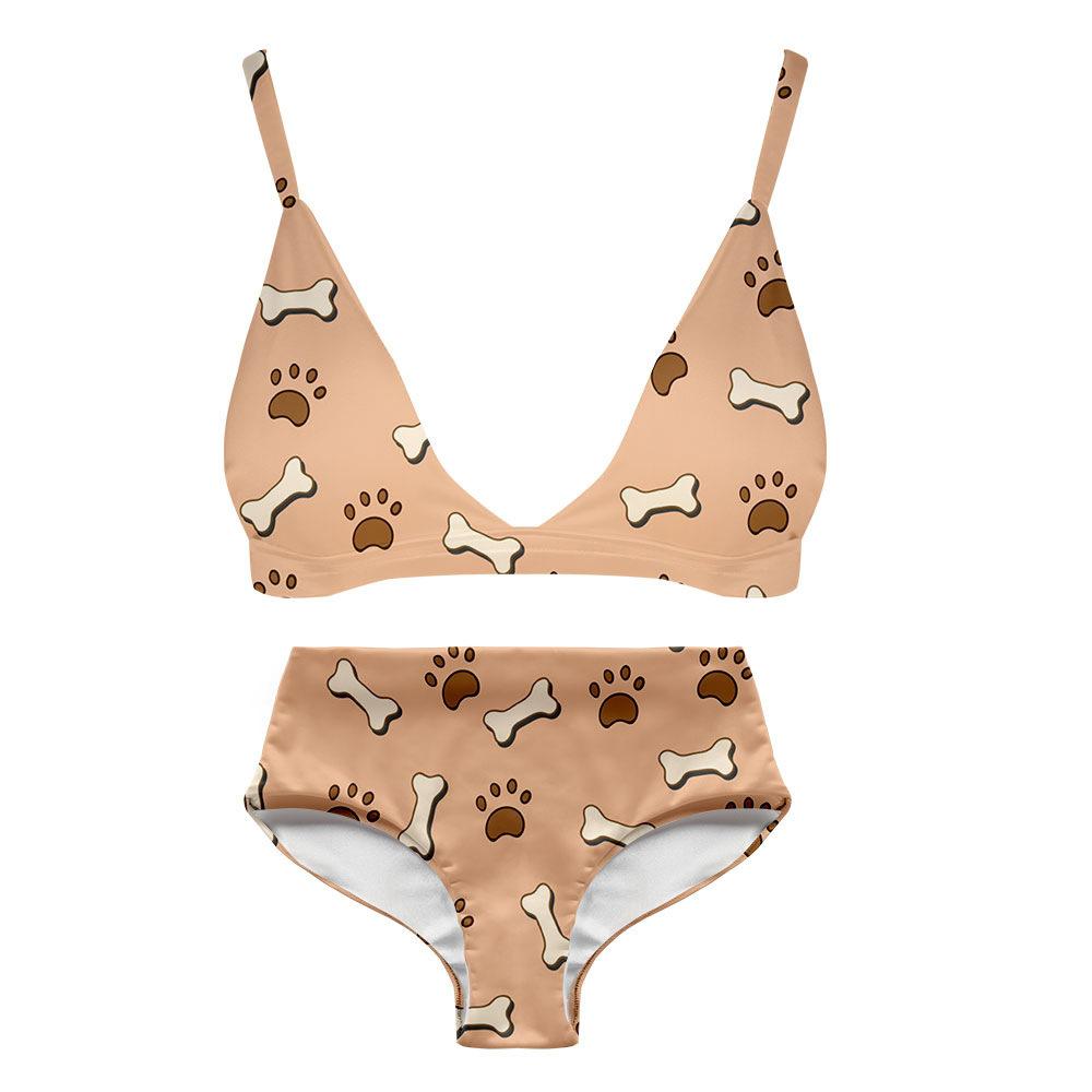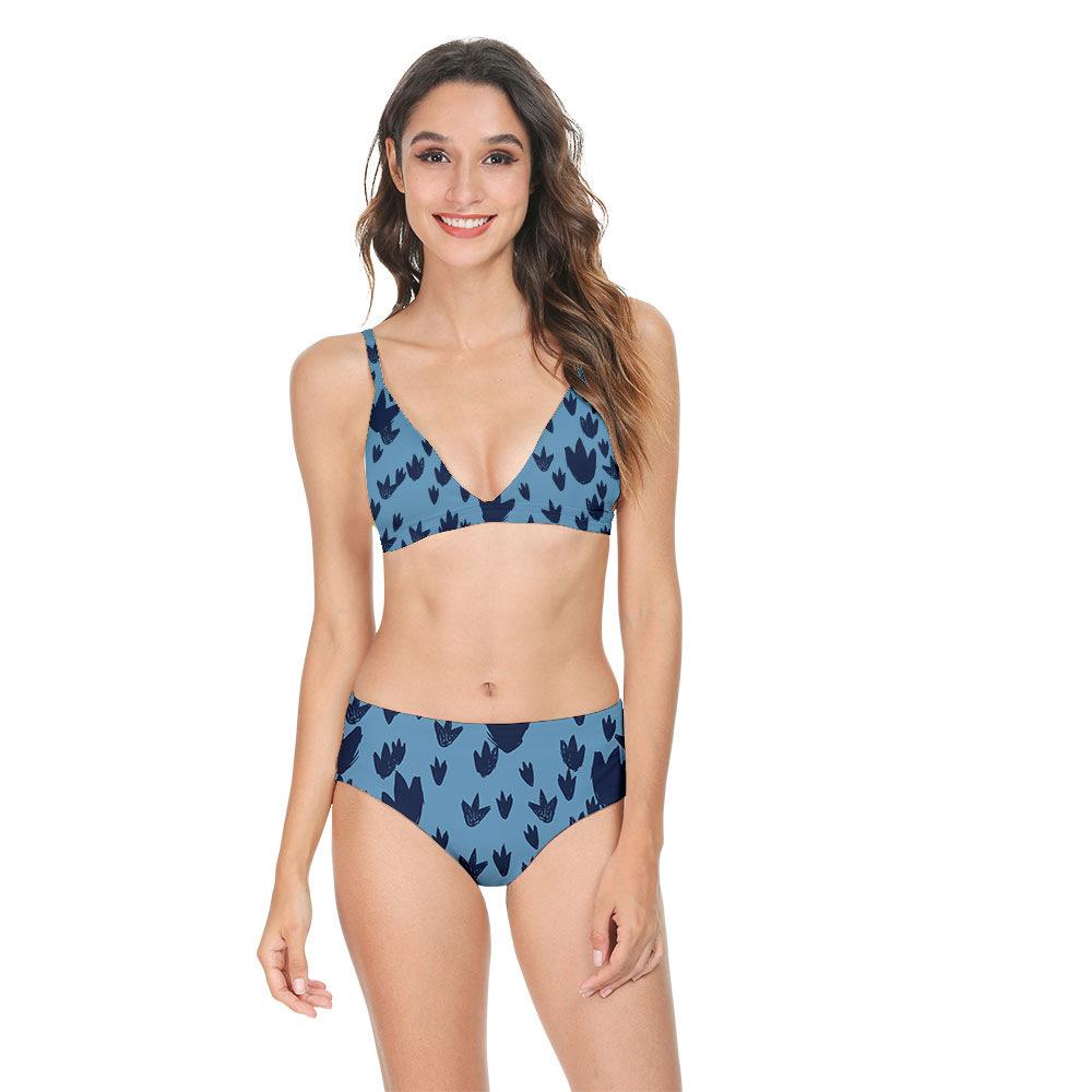 Traje de baño bikini de tres puntos dividido con estampado de huellas de pata de Amazon de verano transfronterizo