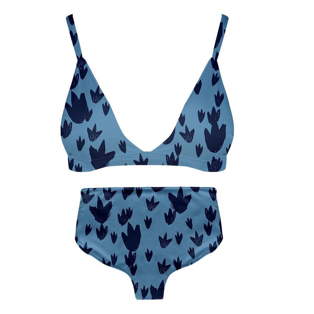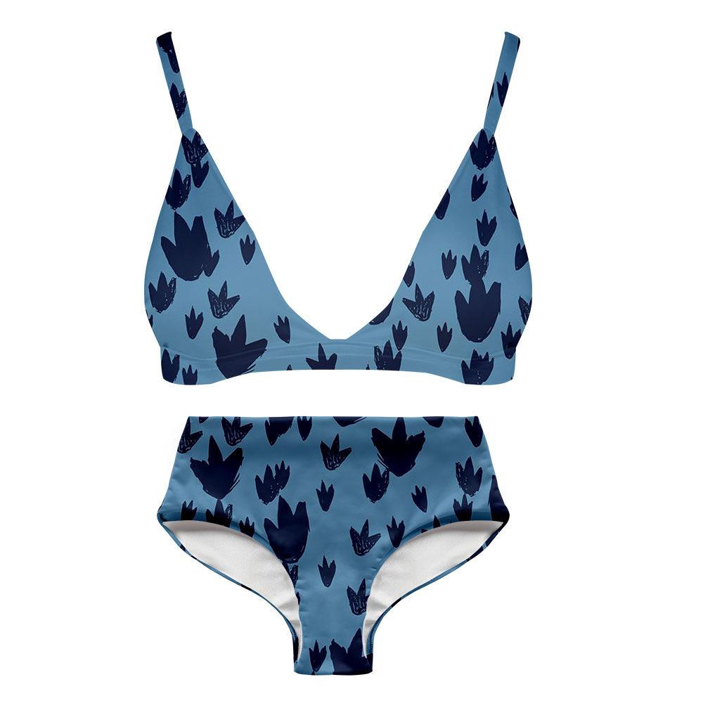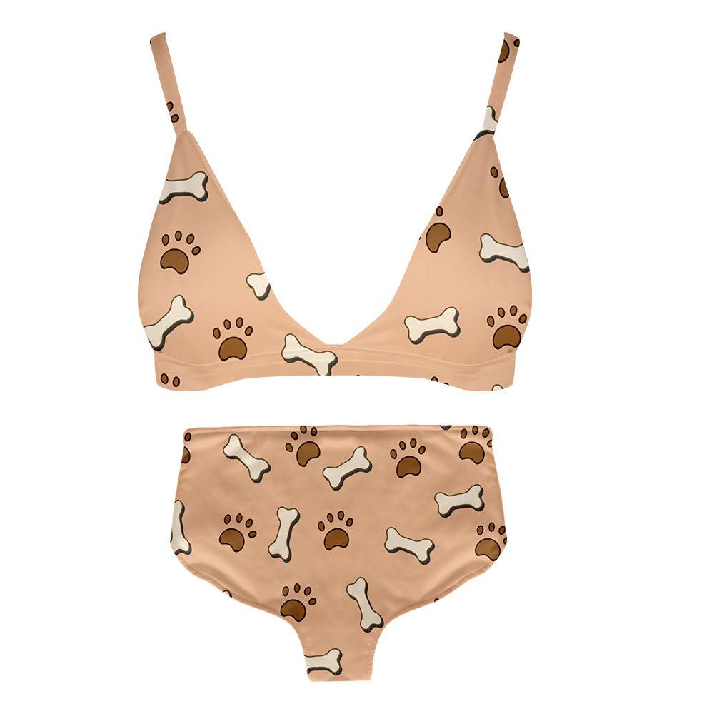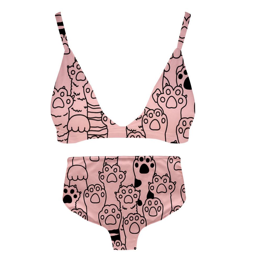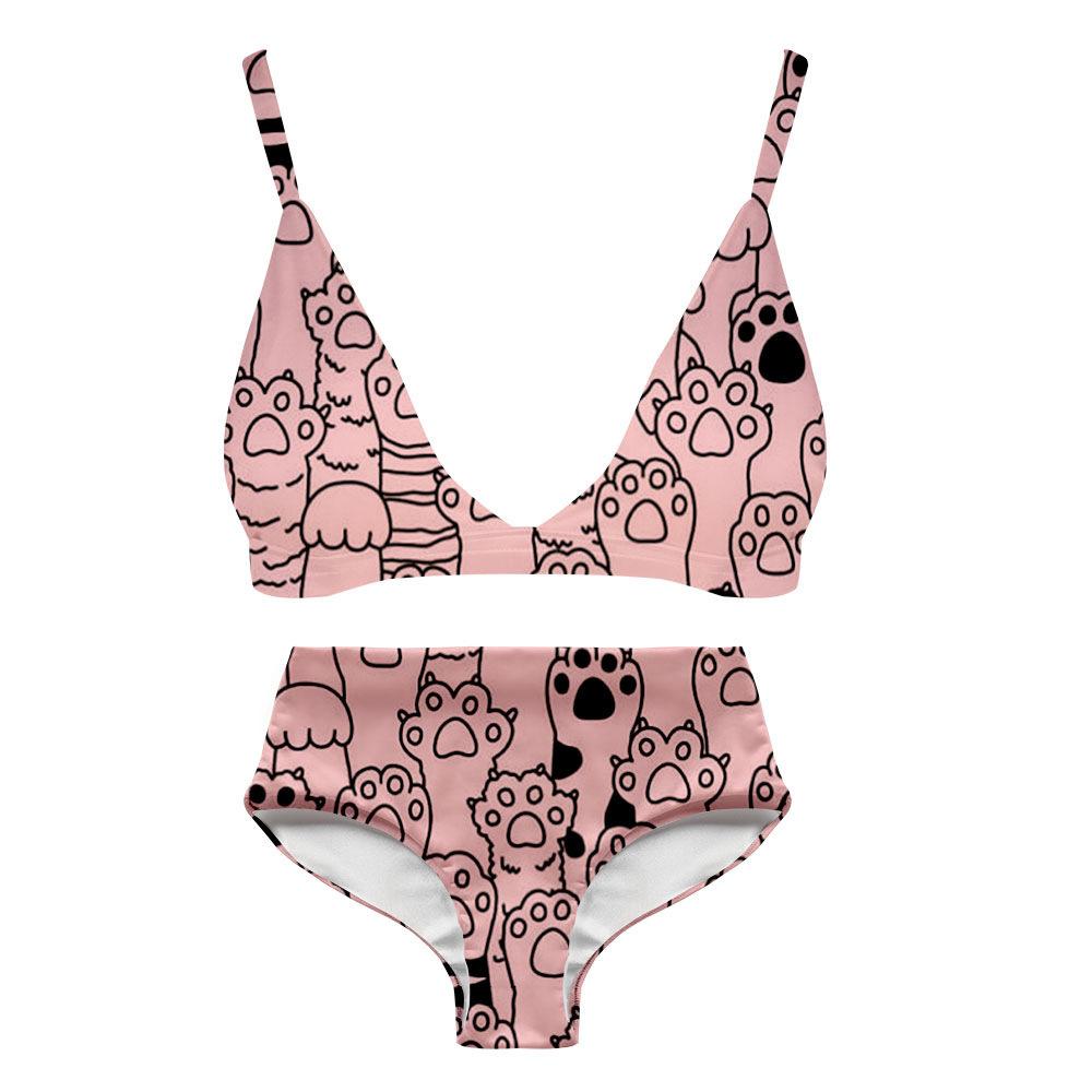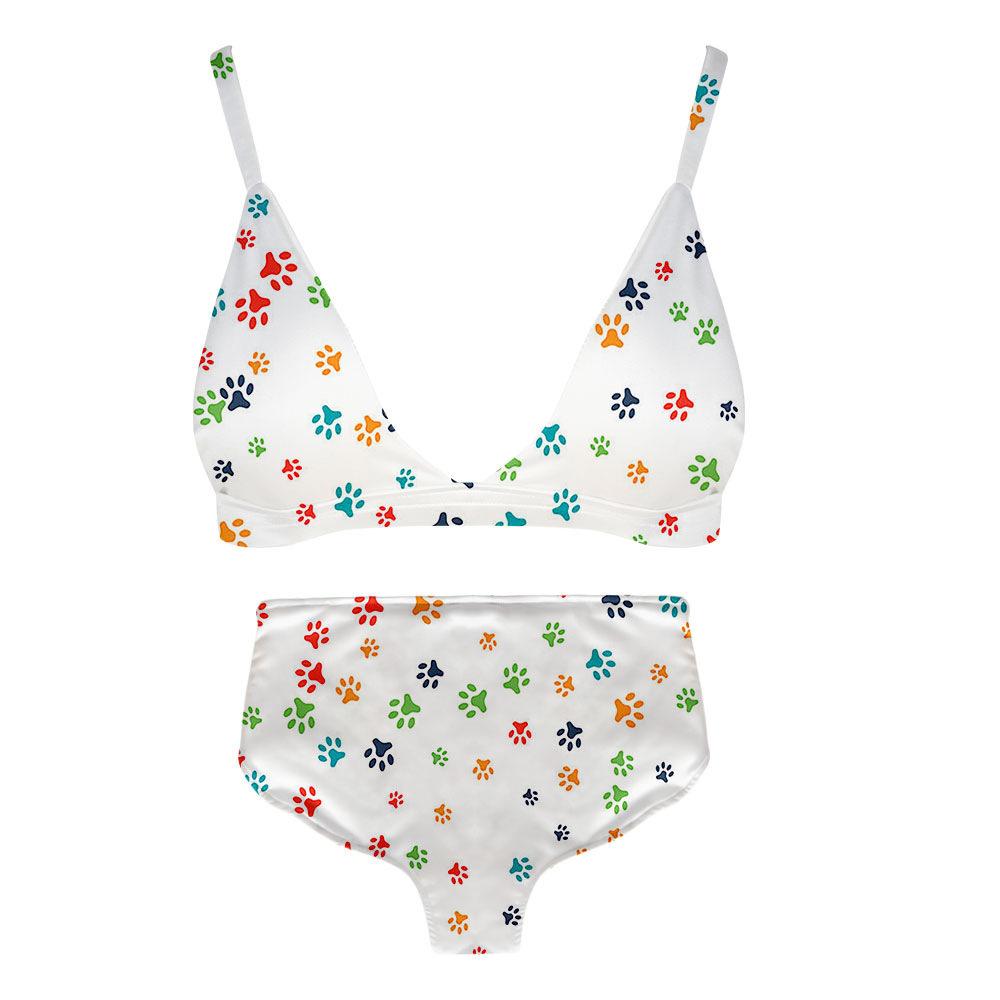 Traje de baño bikini de tres puntos dividido con estampado de huellas de pata de Amazon de verano transfronterizo