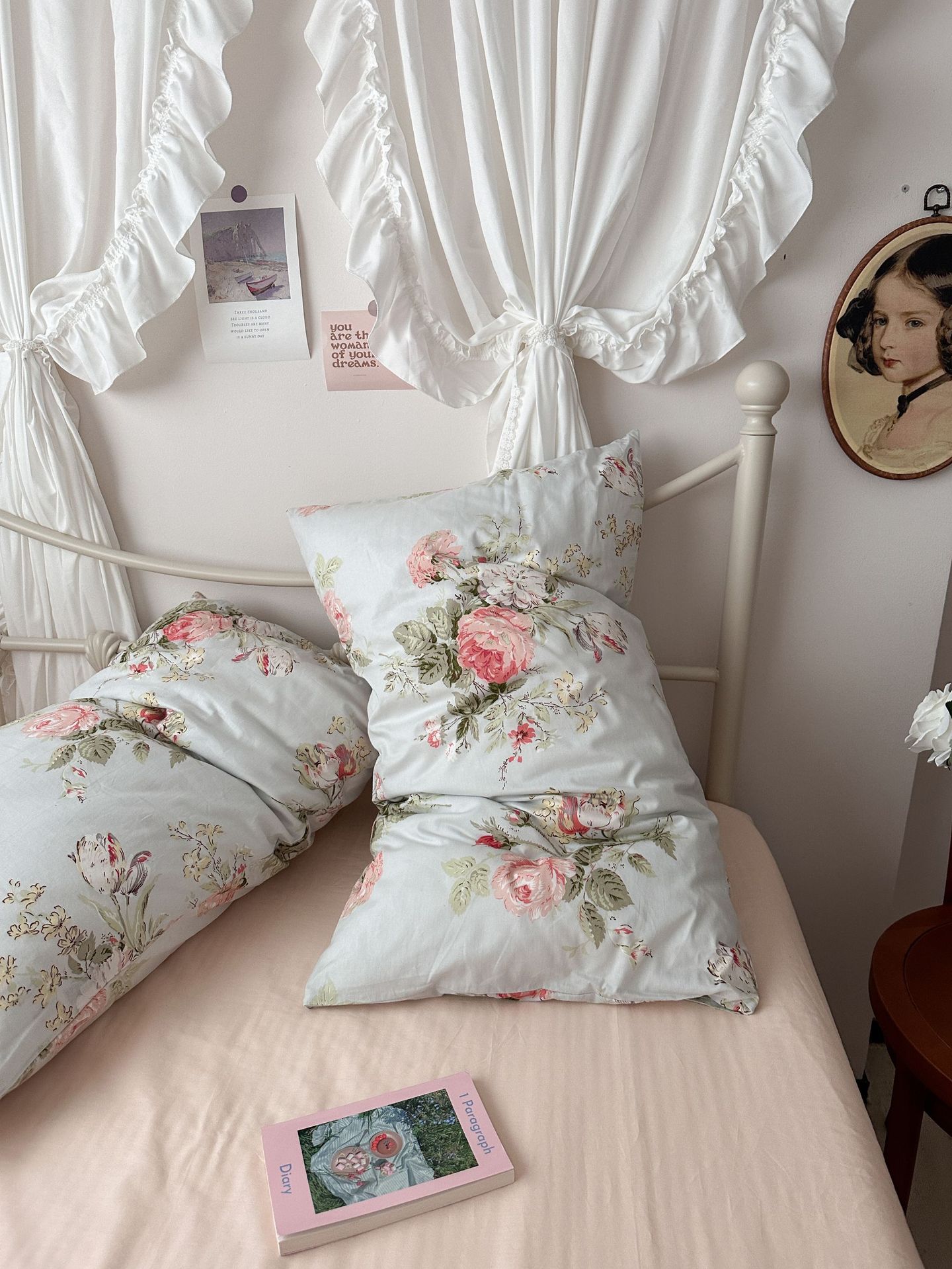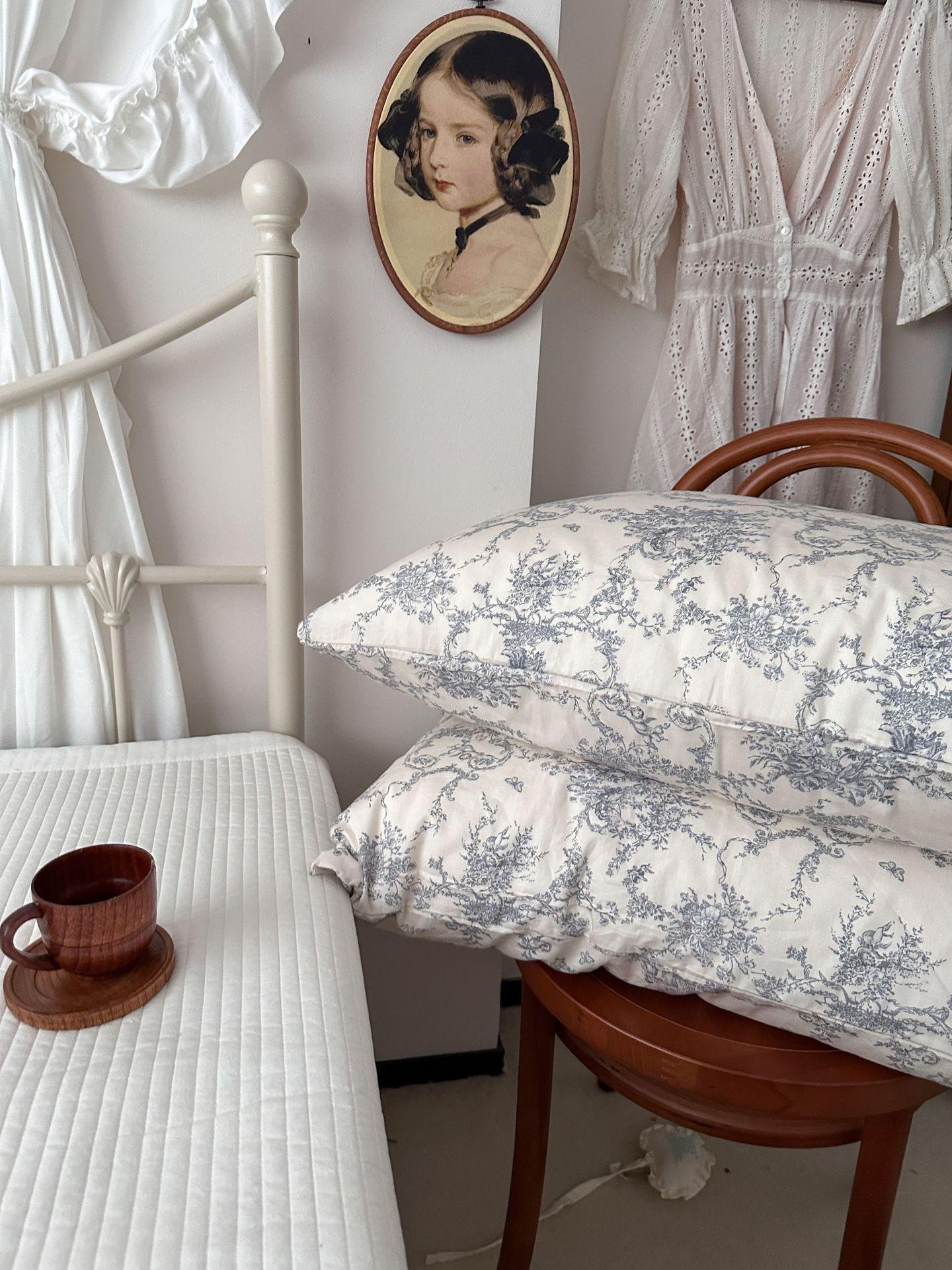 Funda de almohada de algodón de un solo producto con diseño de flores francesas, con funda de almohada de algodón de 48 x 74 cm, funda interior de almohada individual
