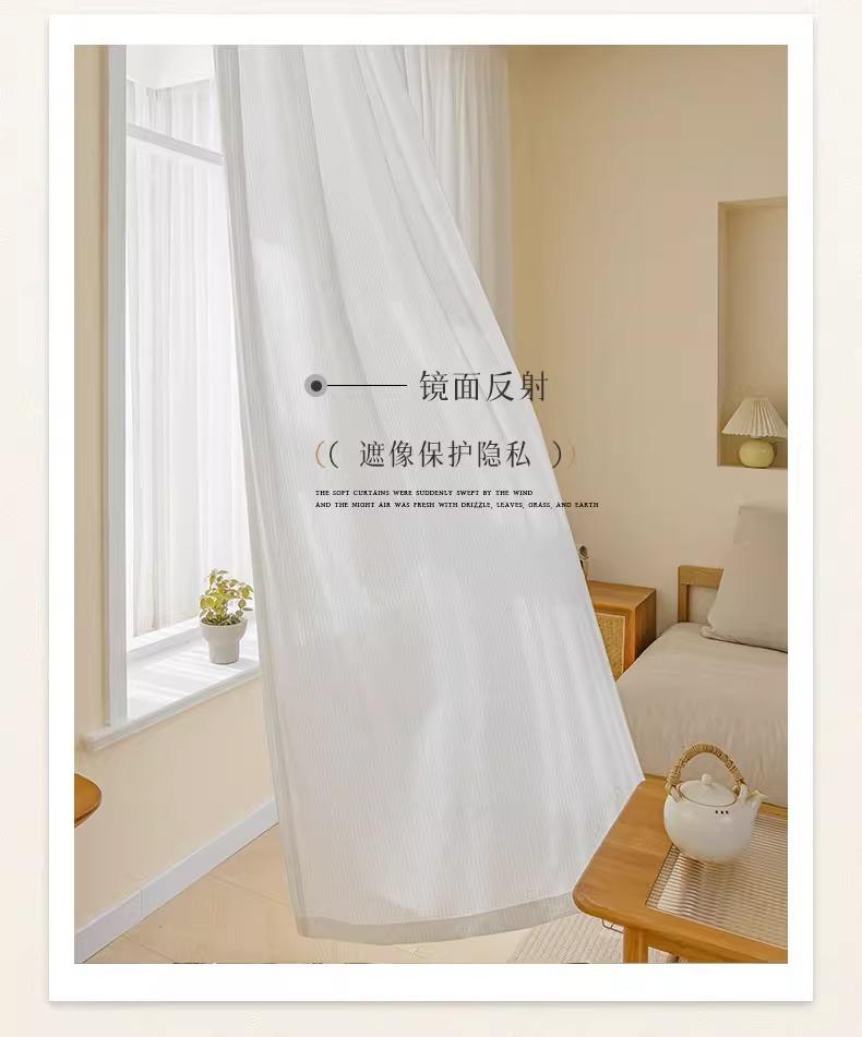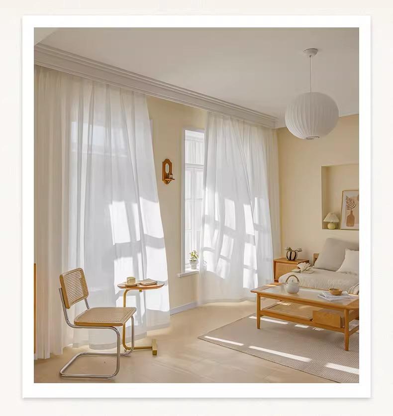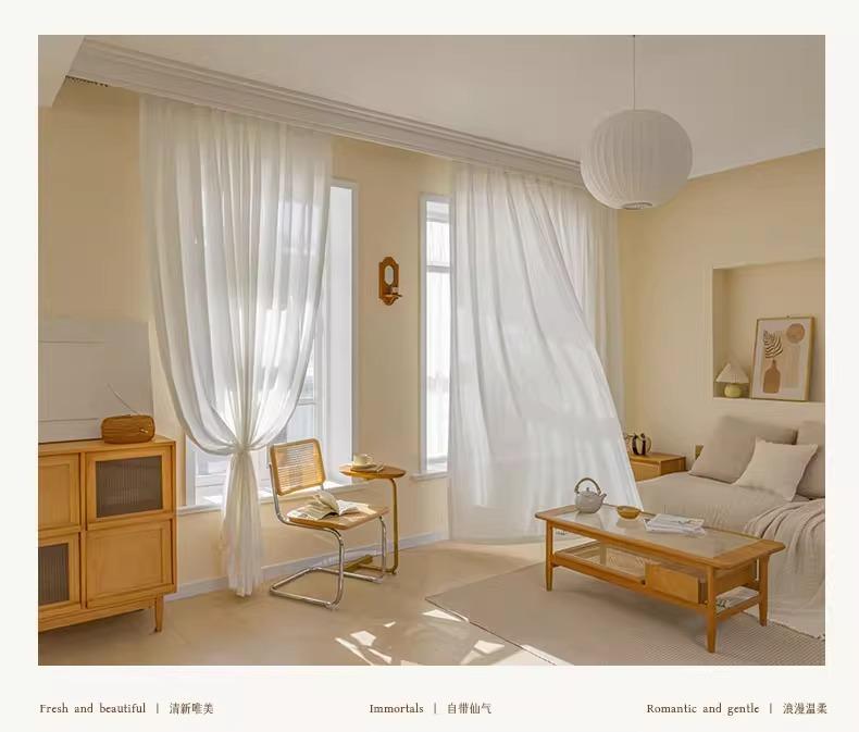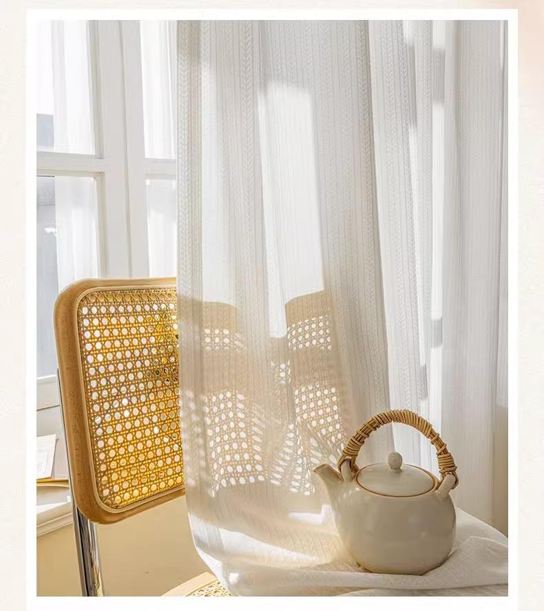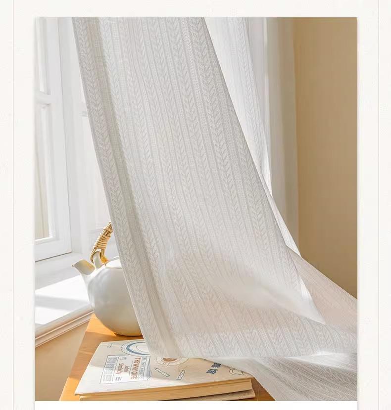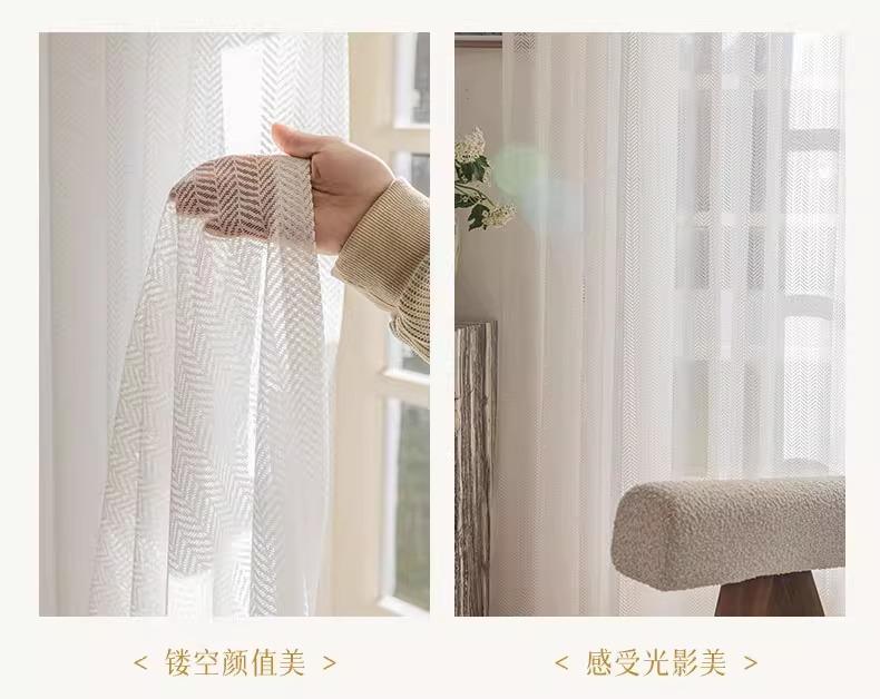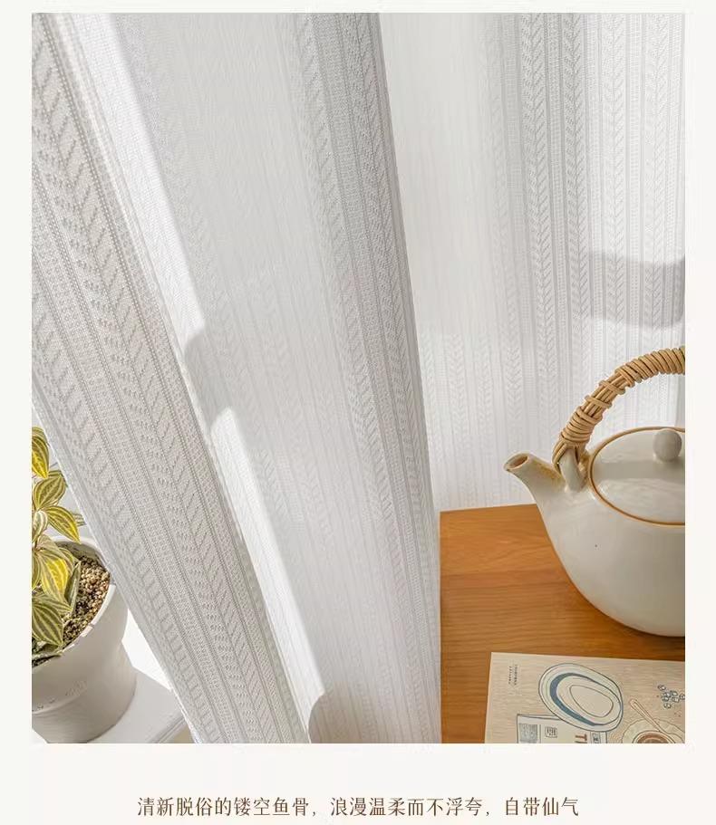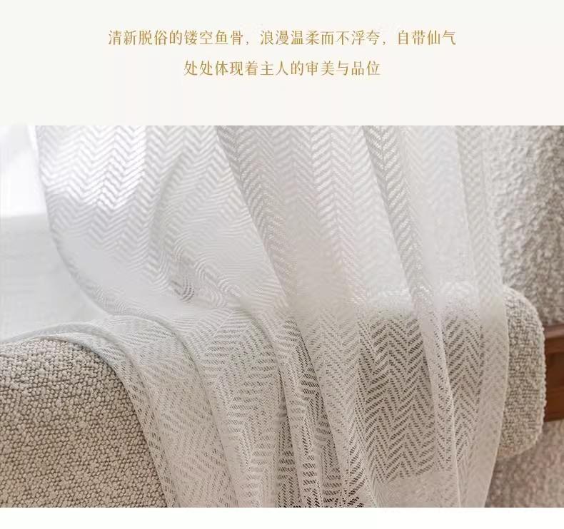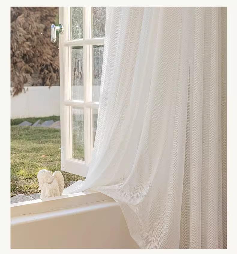 Cortina de gasa espiga de pescado estilo japonés transparente para sala de estar balcón blanco mosquitera viento ins protección solar y aislamiento térmico mirador