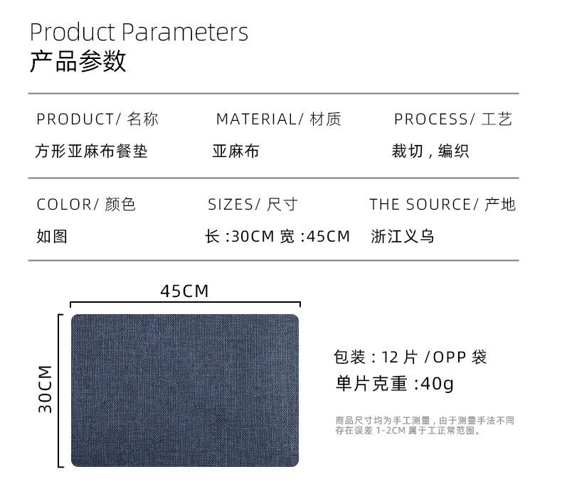 Tapete de lino de PVC para café, tapete aislante para mesa de comedor, tapete para comida, tapete para plato de color sólido, posavasos, tapete para comida occidental