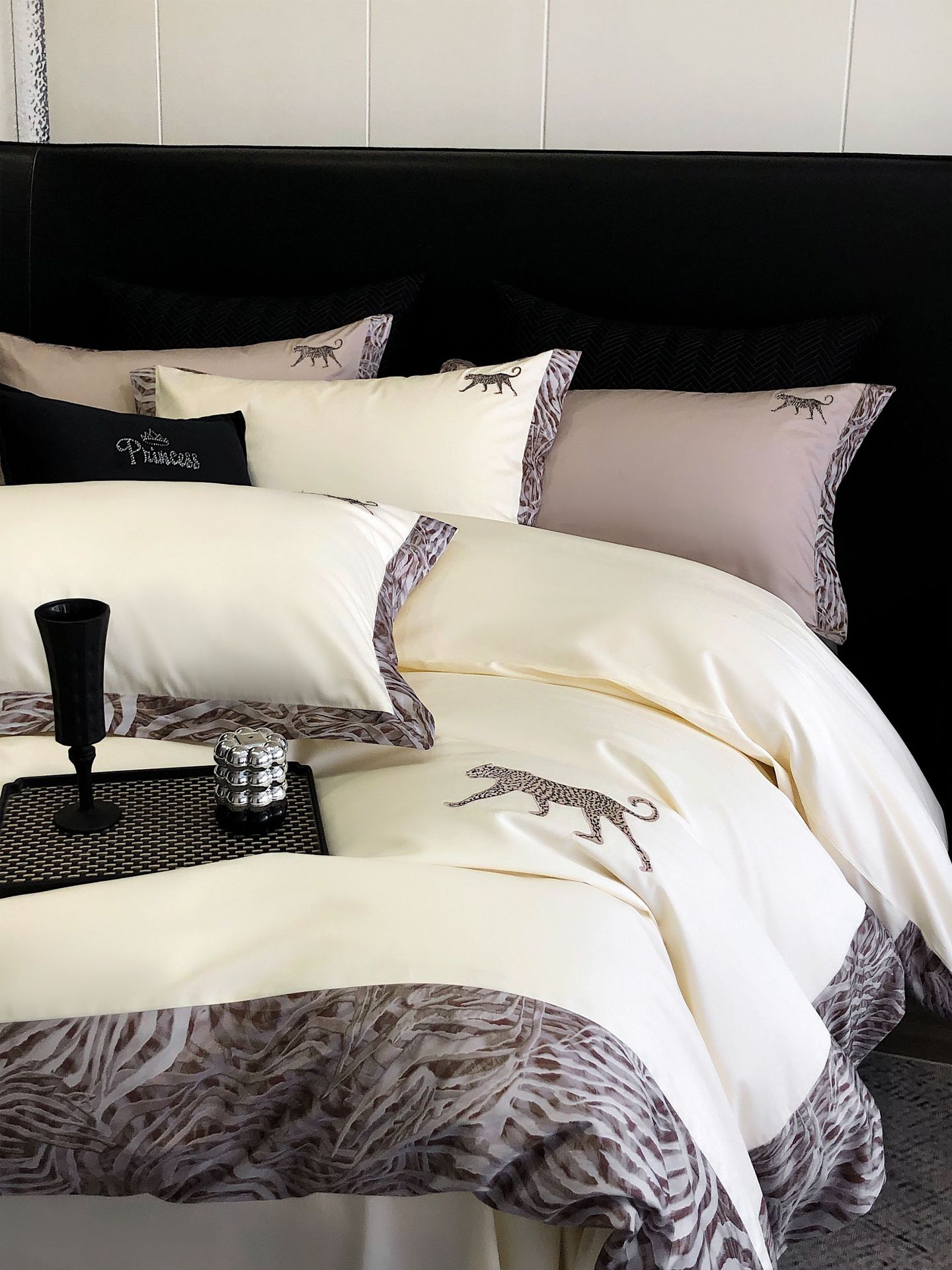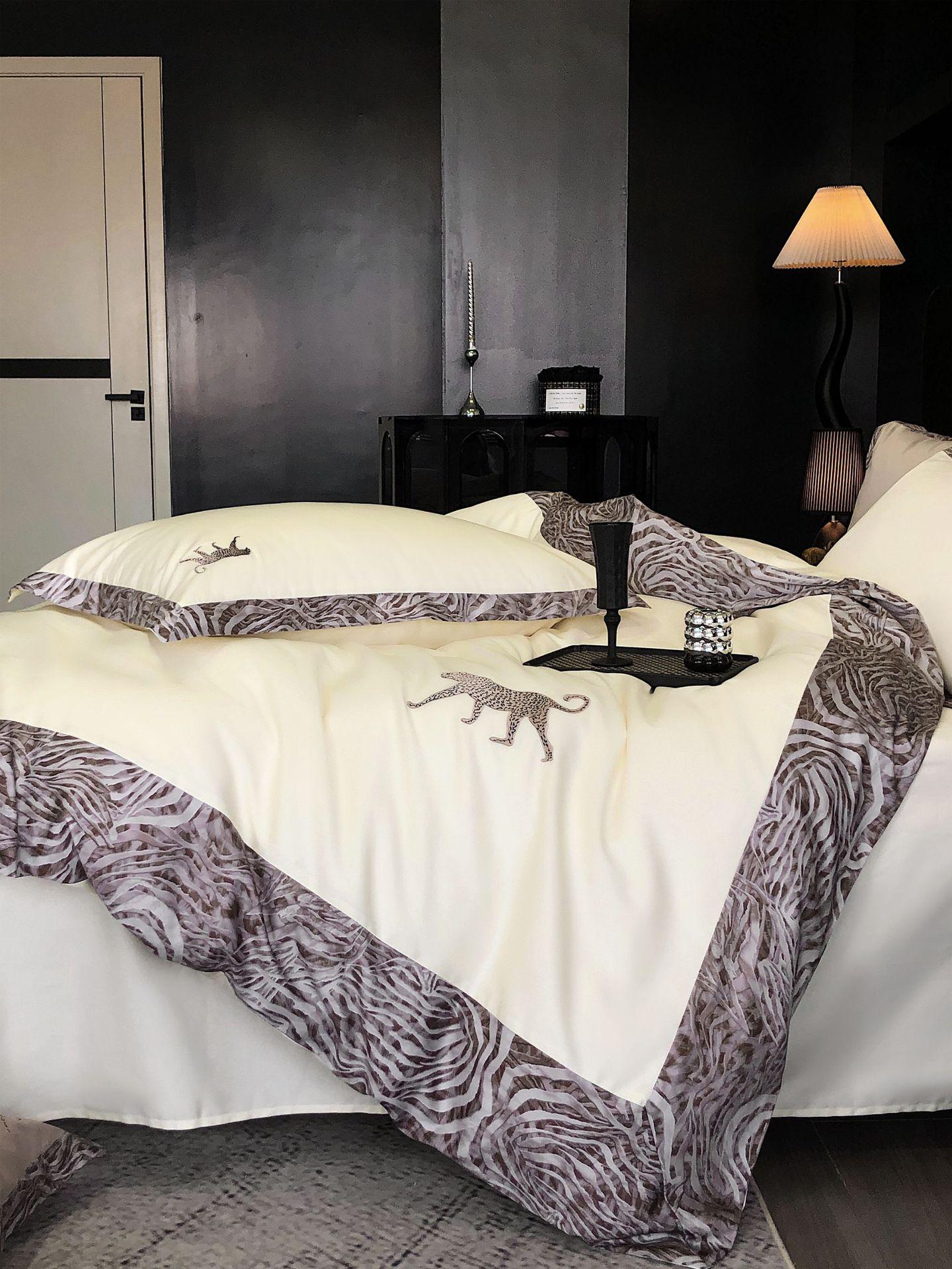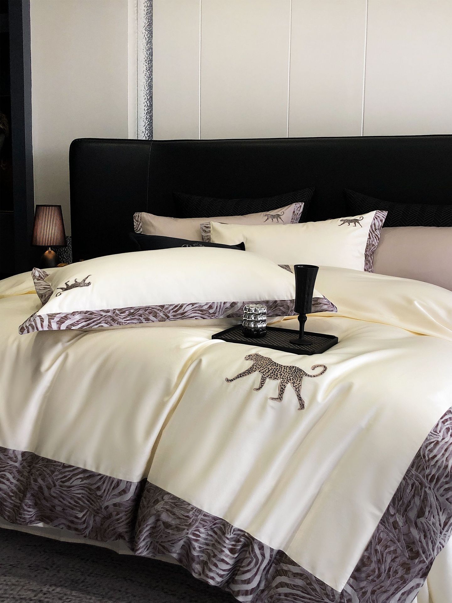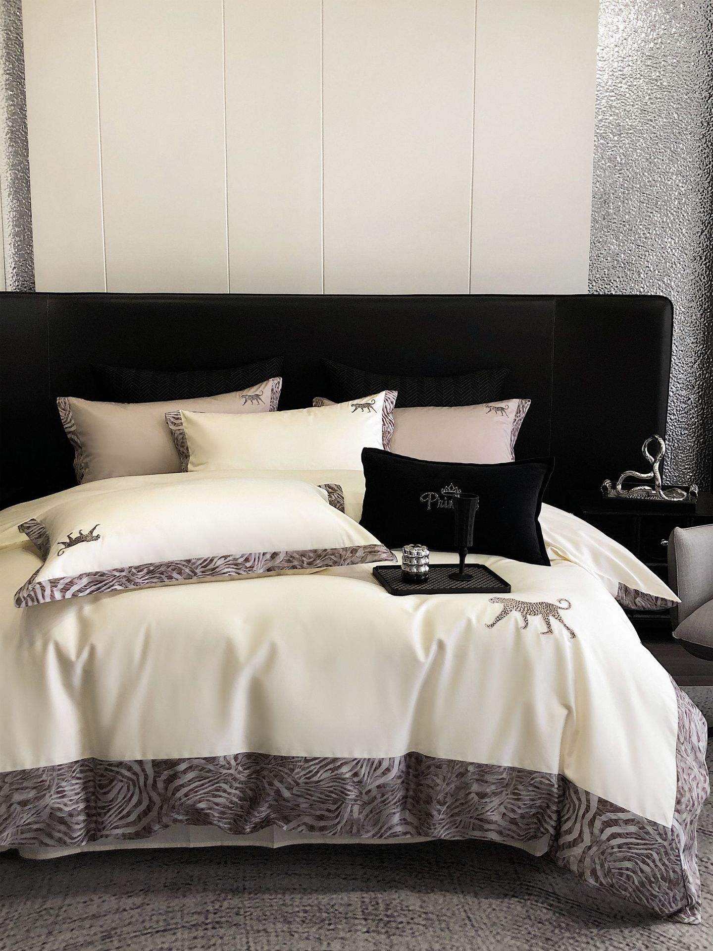 Sencillo 100% Algodón de Fibra Larga Juego de Cuatro Piezas Bordado Estampado Moderno Cubre Edredón de Algodón Universal para Todas las Estaciones Ropa de Cama