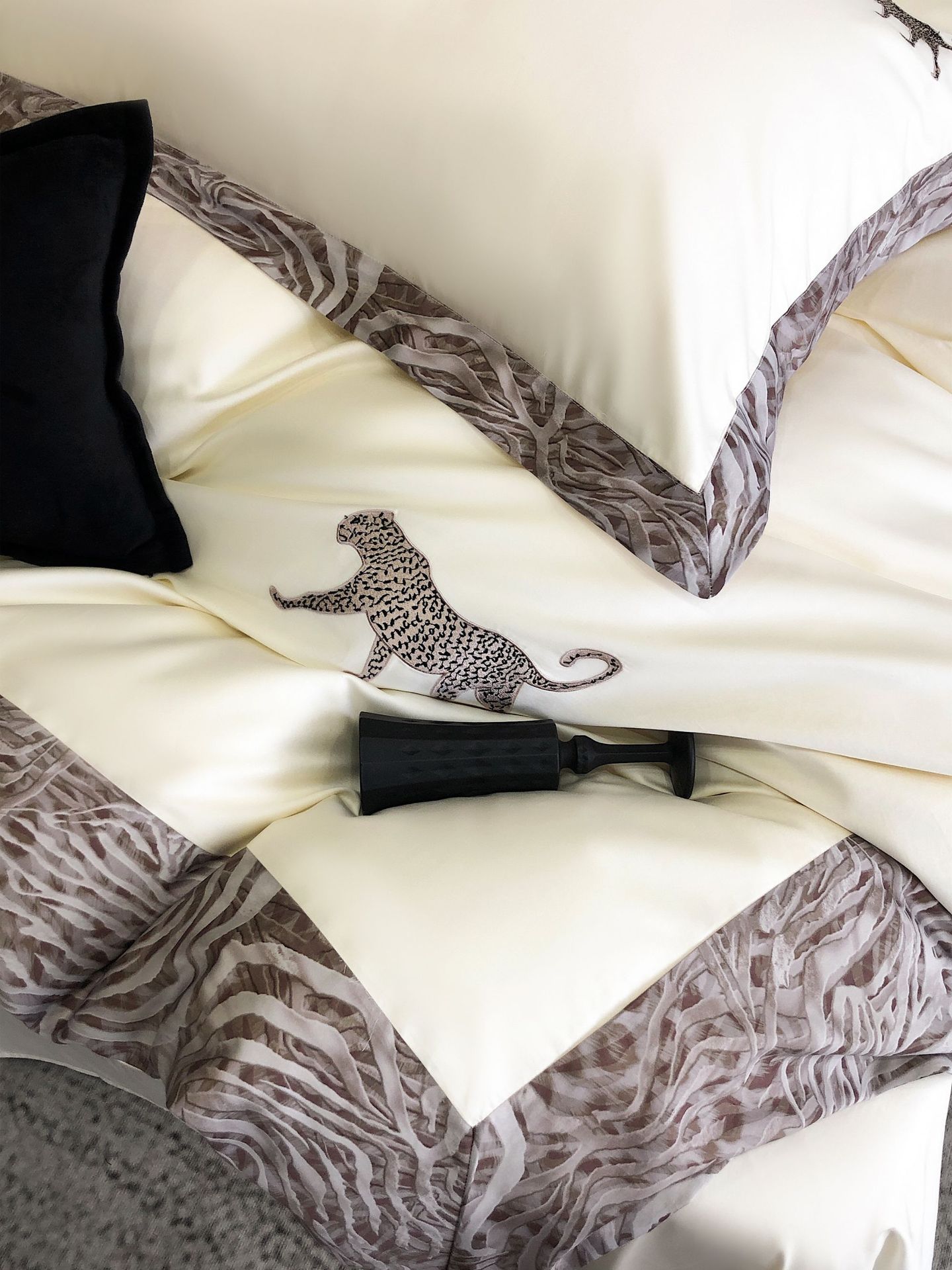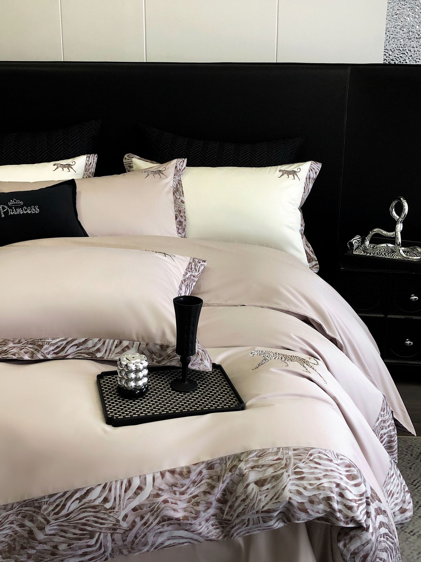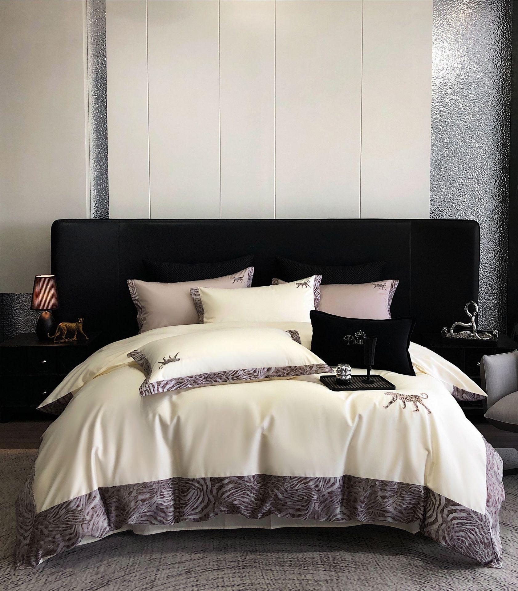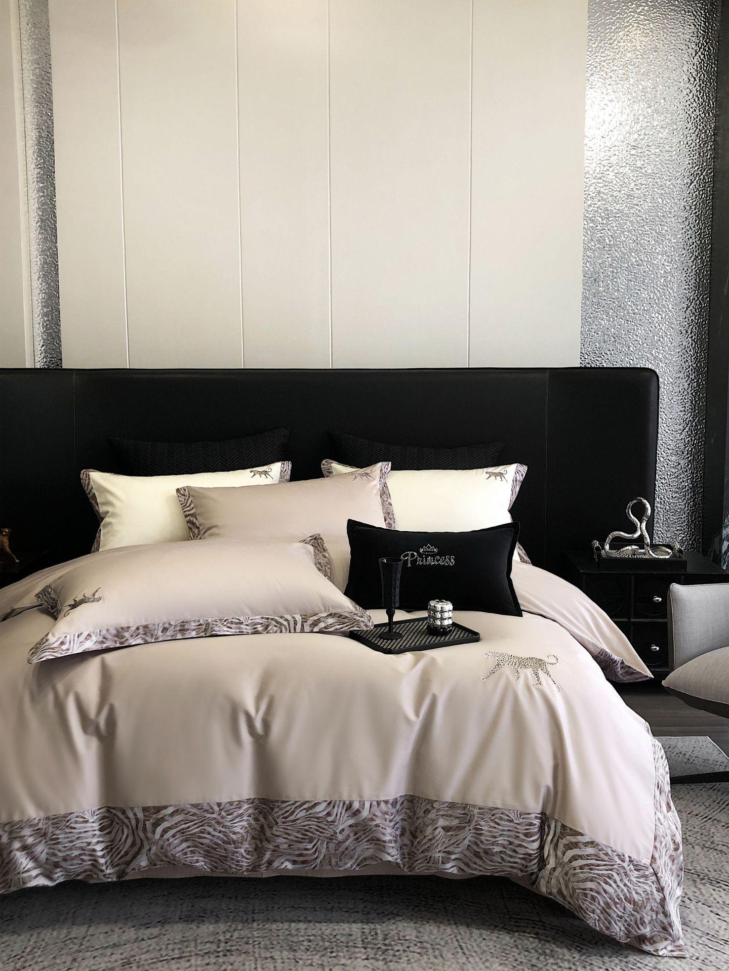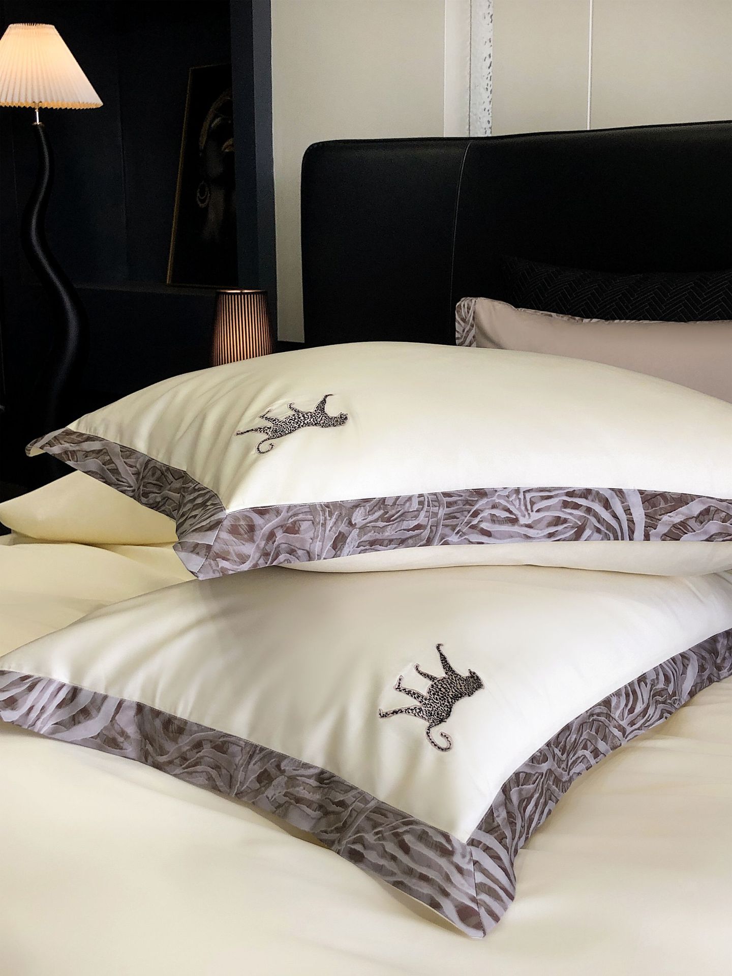 Sencillo 100% Algodón de Fibra Larga Juego de Cuatro Piezas Bordado Estampado Moderno Cubre Edredón de Algodón Universal para Todas las Estaciones Ropa de Cama