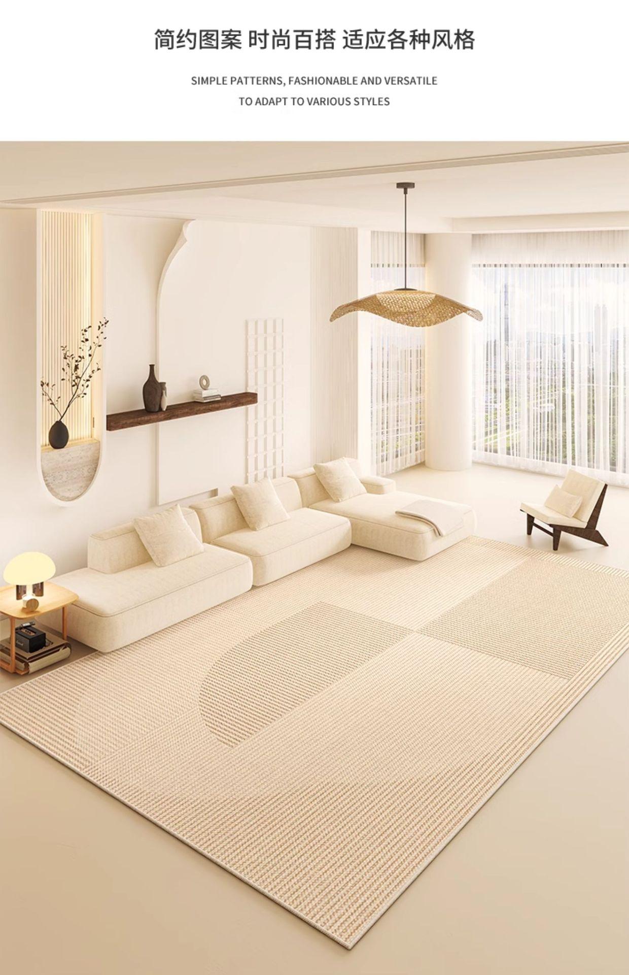 Alfombra color crema para sala de estar, de lujo, ligera, avanzada, para el hogar, antideslizante, borrable, para sofá, mesa de centro, alfombra para dormitorio, mesita de noche