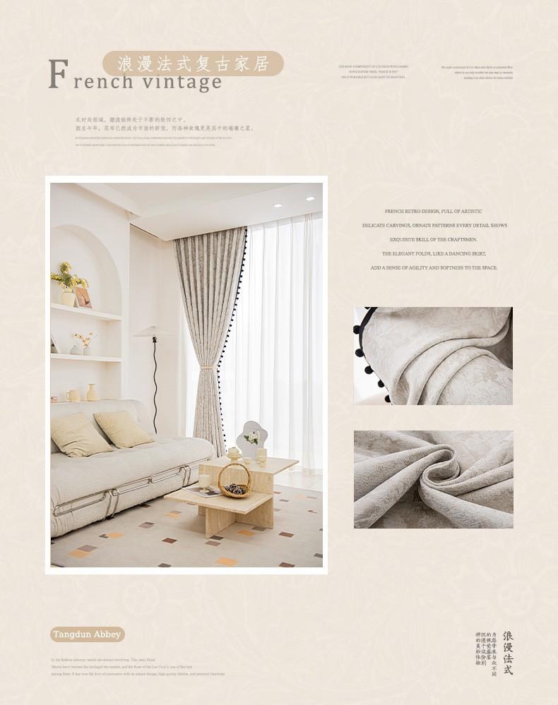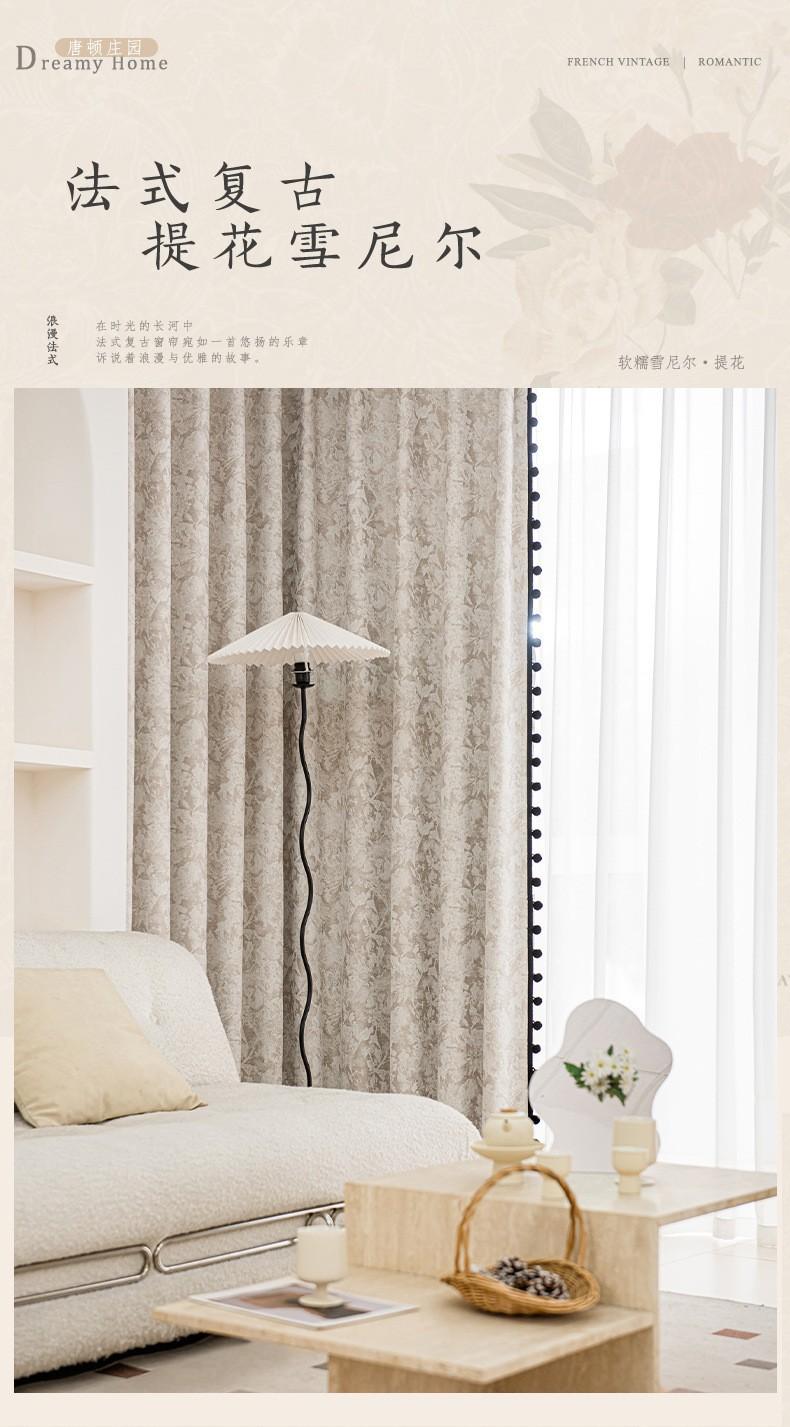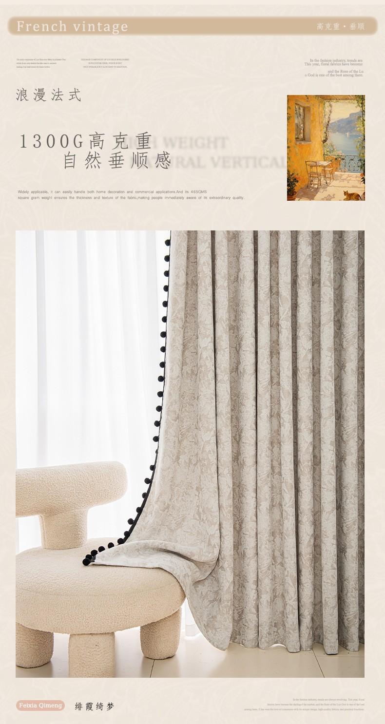 Cortina opaca de chenilla vintage francesa de Downton Abbey para sala de estar y dormitorio, tela antigua de lujo de alta gama.
