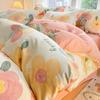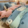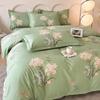 Juego de cuatro piezas cepillado engrosado de algodón puro 2025 Nuevo otoño e invierno Funda de edredón Sábanas Juego de cama de tres piezas para dormitorio