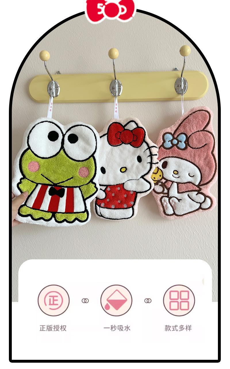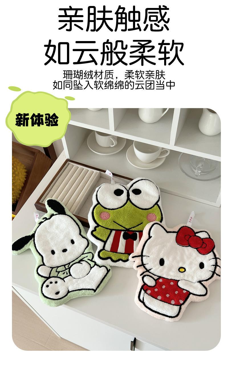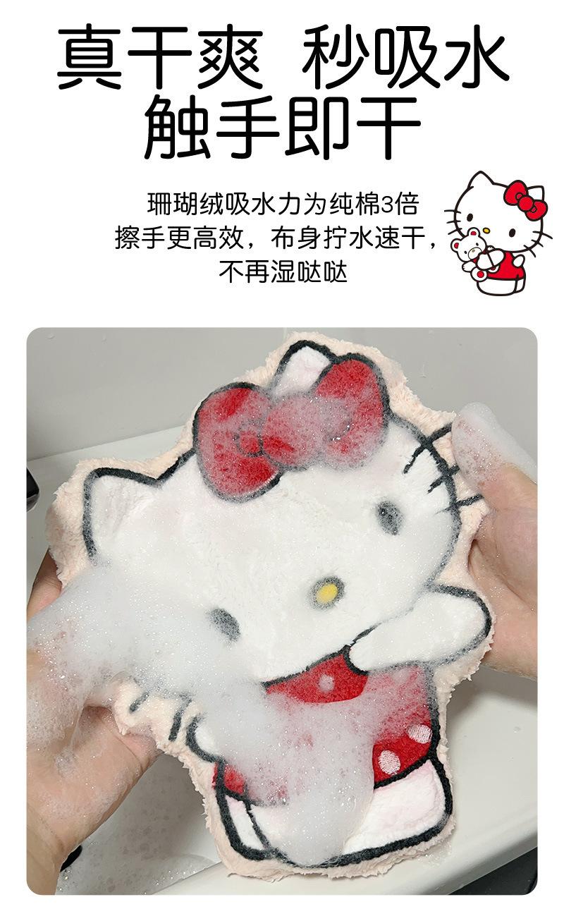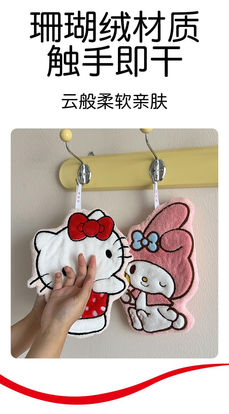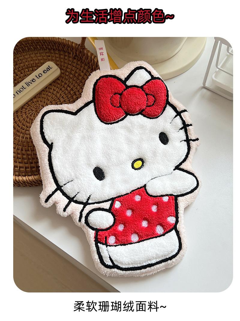 Toalla de mano KT Cat Wipe, bonita toalla de lavado de manos con dibujos animados, colgante de doble capa, gruesa, absorbente, de forro polar coral, para niños, cuadrada.
