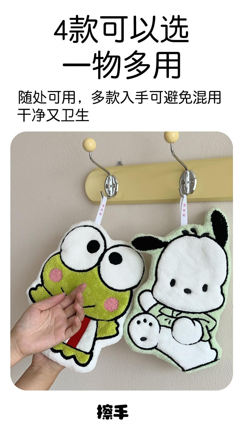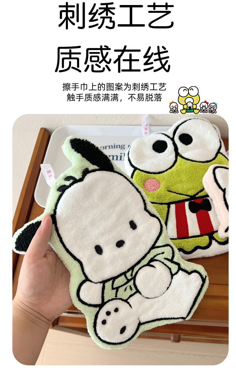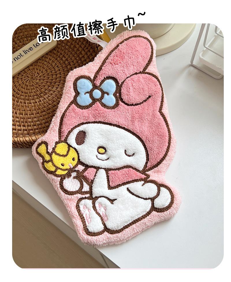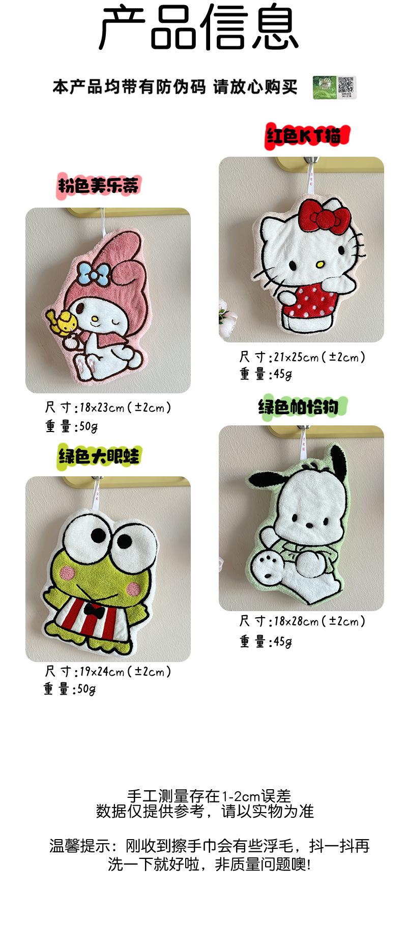 Toalla de mano KT Cat Wipe, bonita toalla de lavado de manos con dibujos animados, colgante de doble capa, gruesa, absorbente, de forro polar coral, para niños, cuadrada.