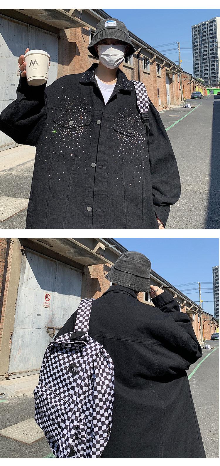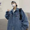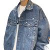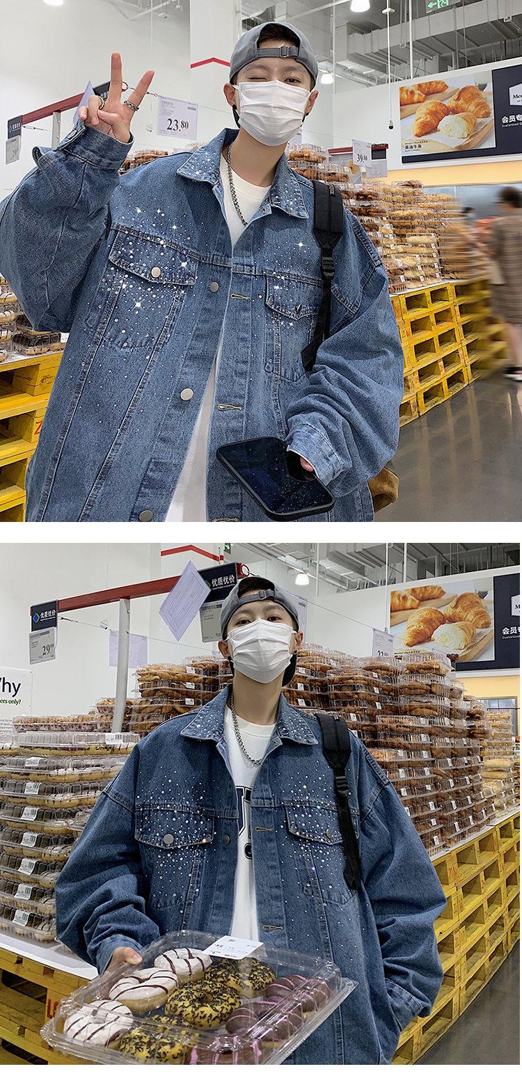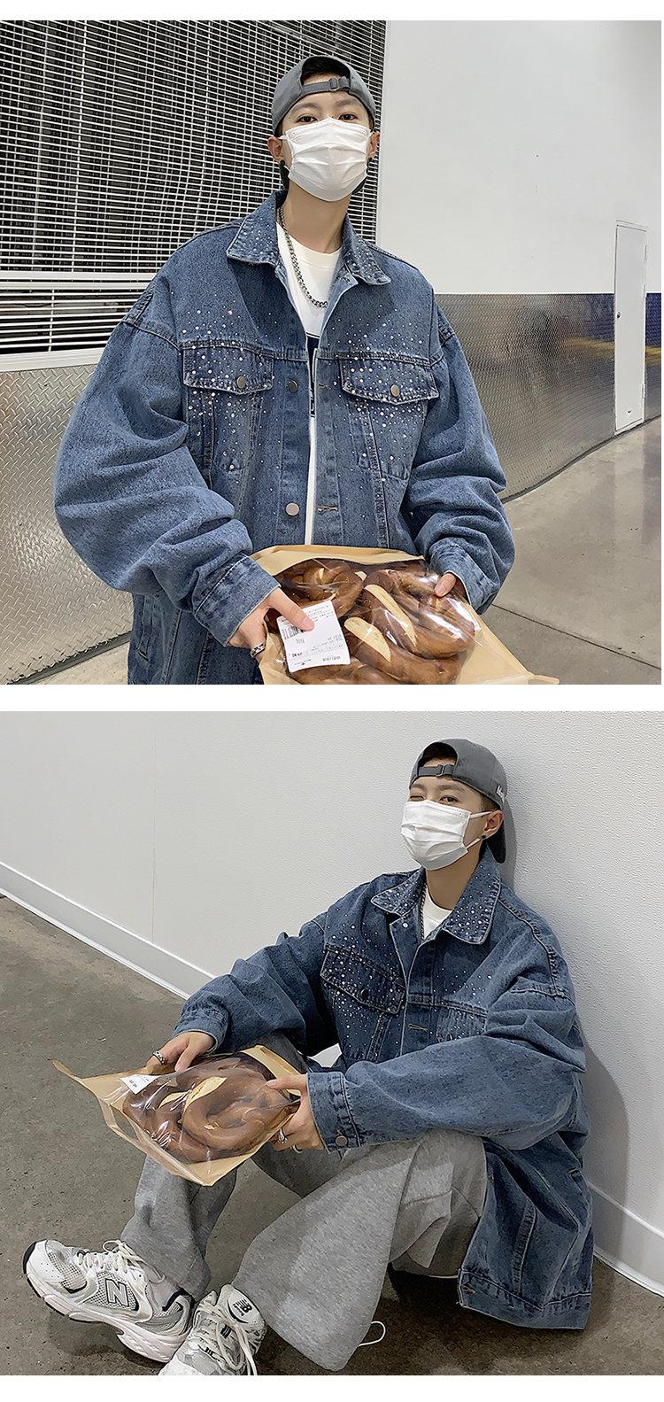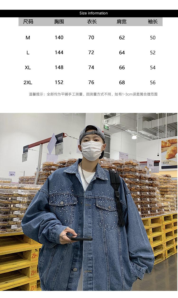 Chaqueta vaquera holgada con diamantes de imitación para hombre, chaqueta de manga larga combinable con todo, estilo coreano, color negro, para otoño