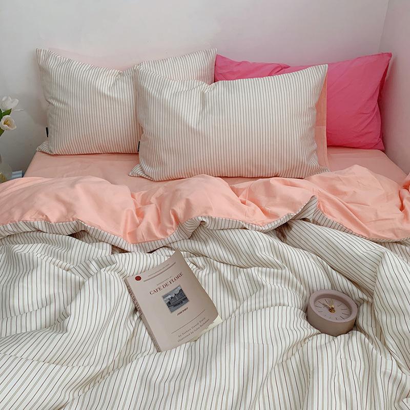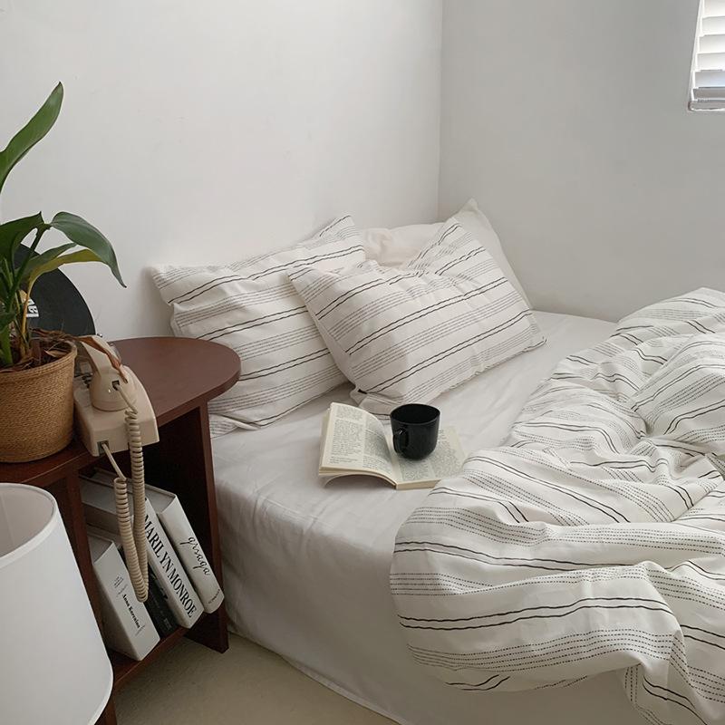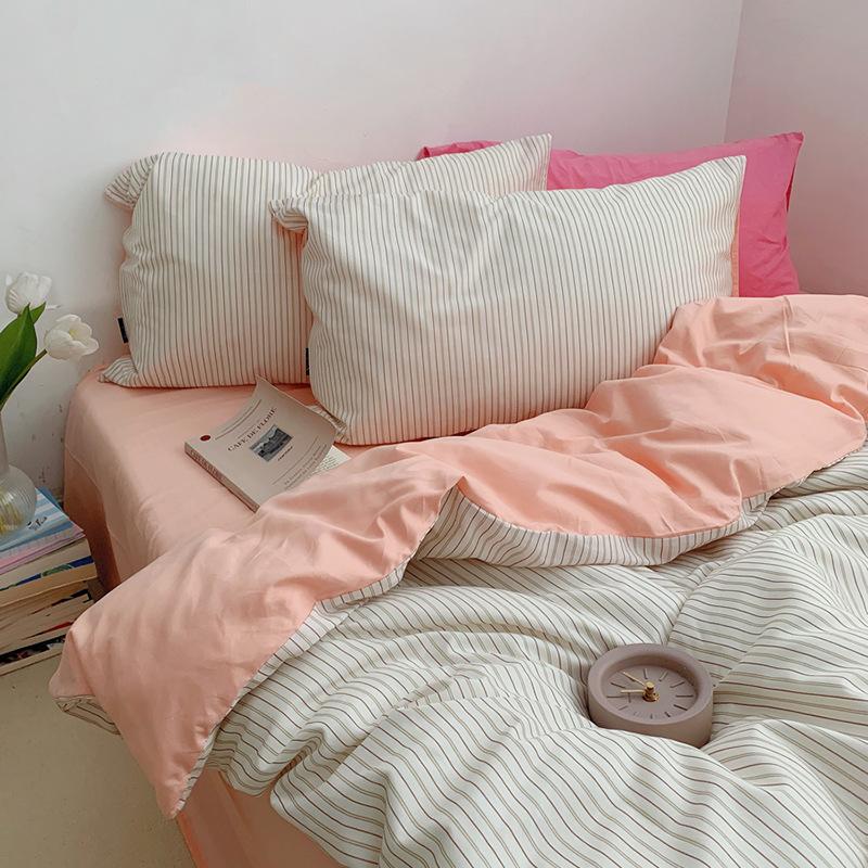 Juego de sábanas para cama de 1.8m: funda nórdica 200*230, sábana encimera 245*250, un par de fundas de almohada (las fundas de almohada vienen con un par de rayas occidentales por defecto, puede cambiar el color comentando)
