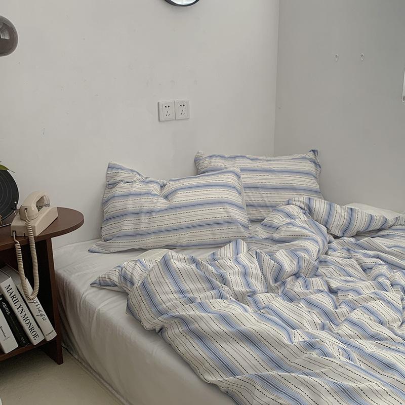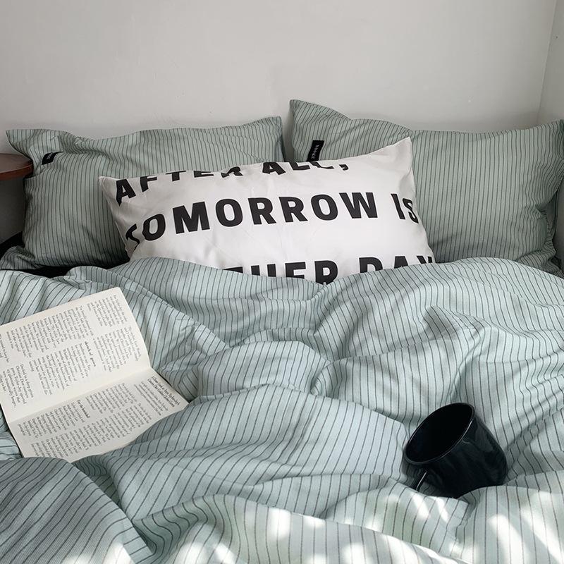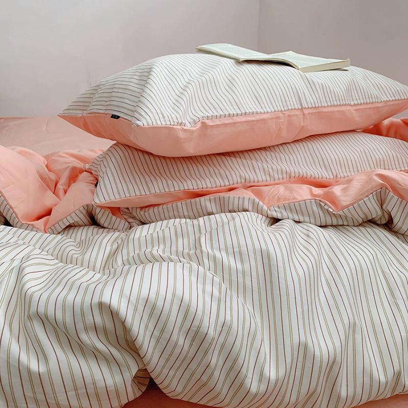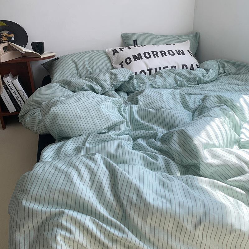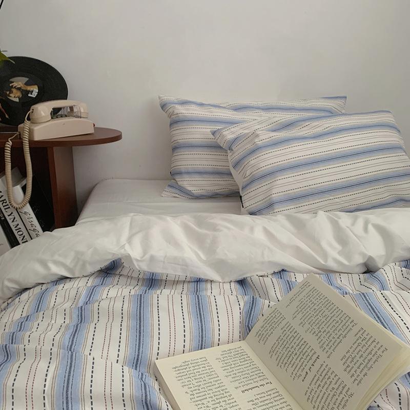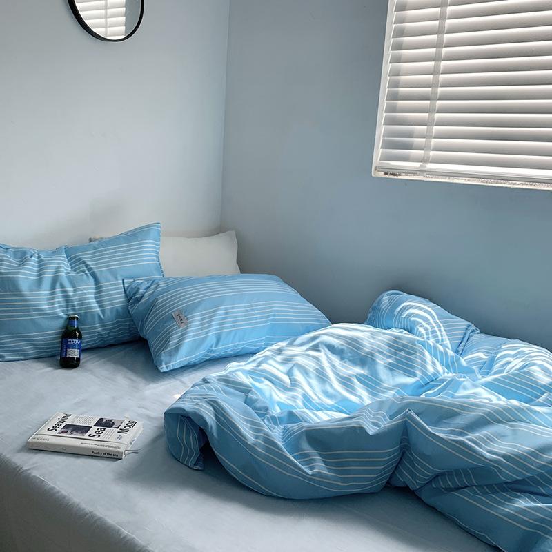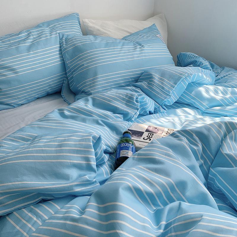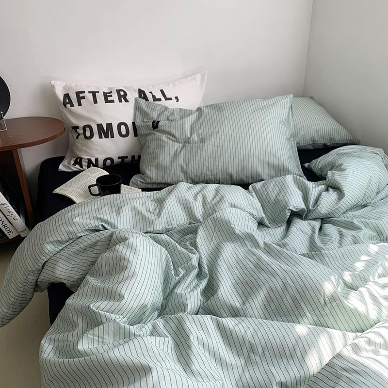Juego de sábanas para cama de 1.5m: funda nórdica 200*230, sábana encimera 245*250, un par de fundas de almohada (las fundas de almohada vienen con un par de rayas occidentales por defecto, puede cambiar el color comentando)