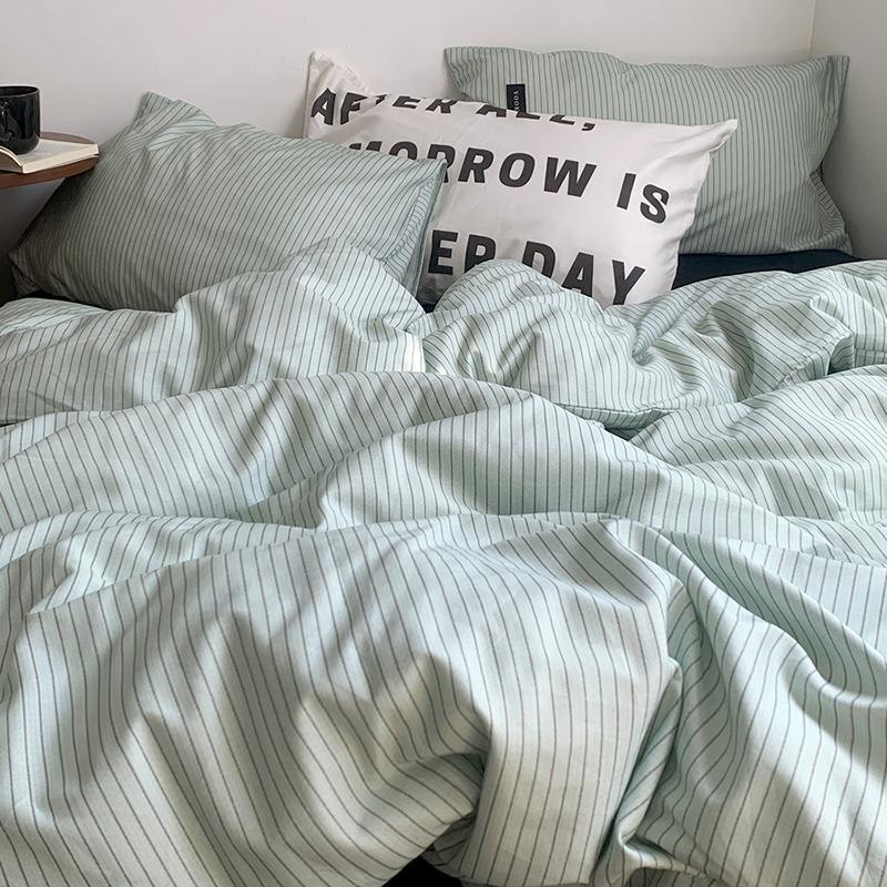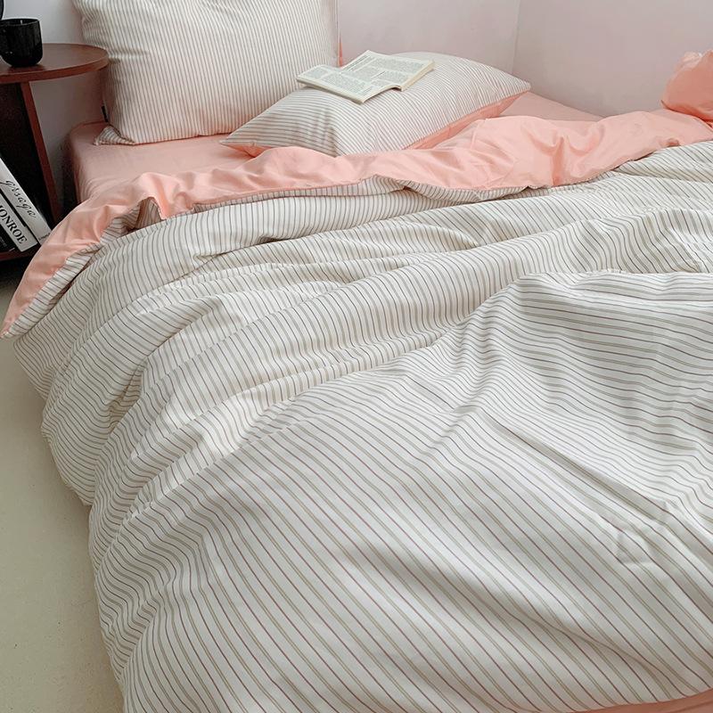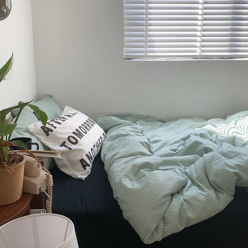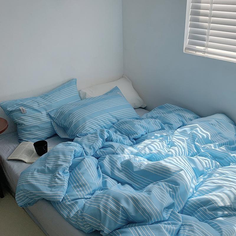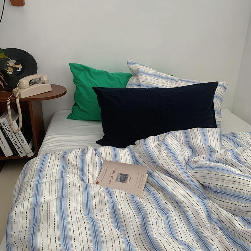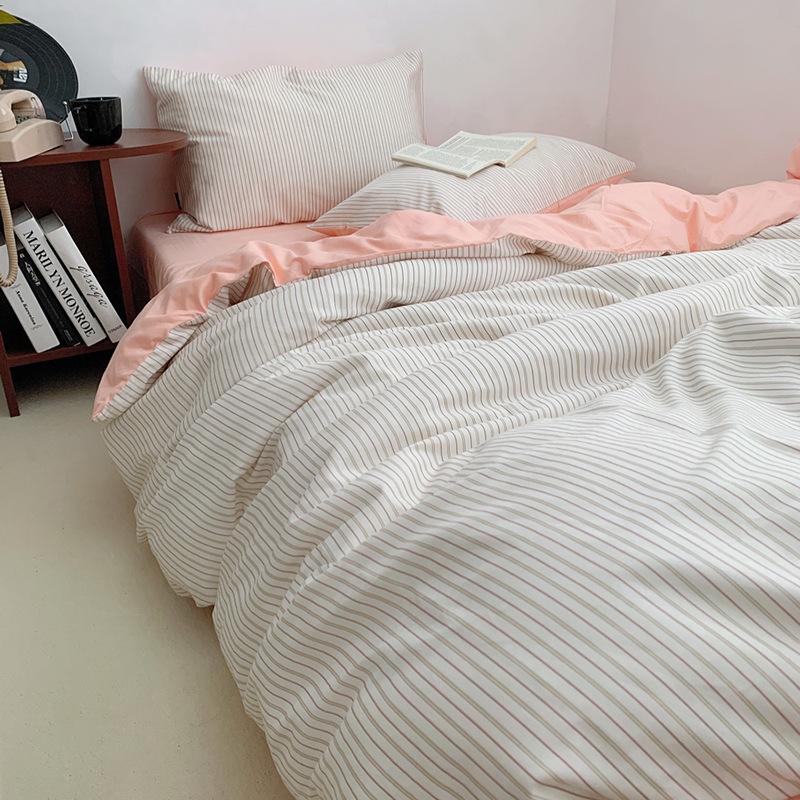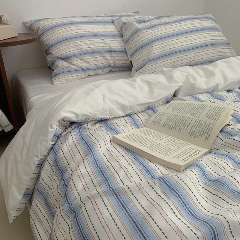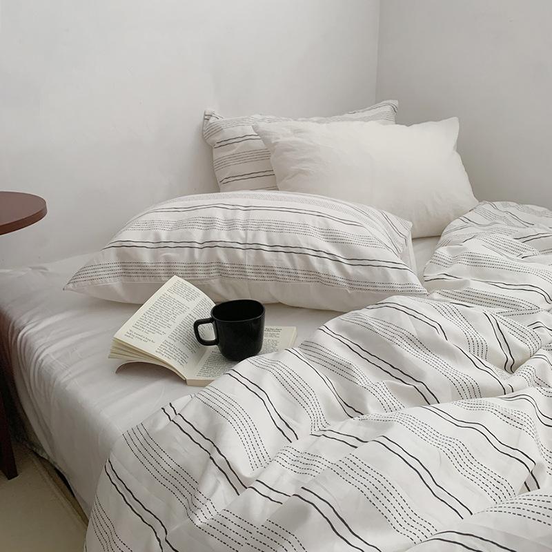 Juego de sábanas para cama de 1.5m: funda nórdica 200*230, sábana encimera 245*250, un par de fundas de almohada (las fundas de almohada vienen con un par de rayas occidentales por defecto, puede cambiar el color comentando)
