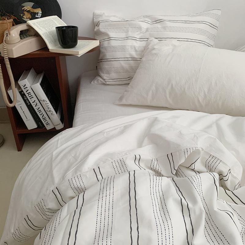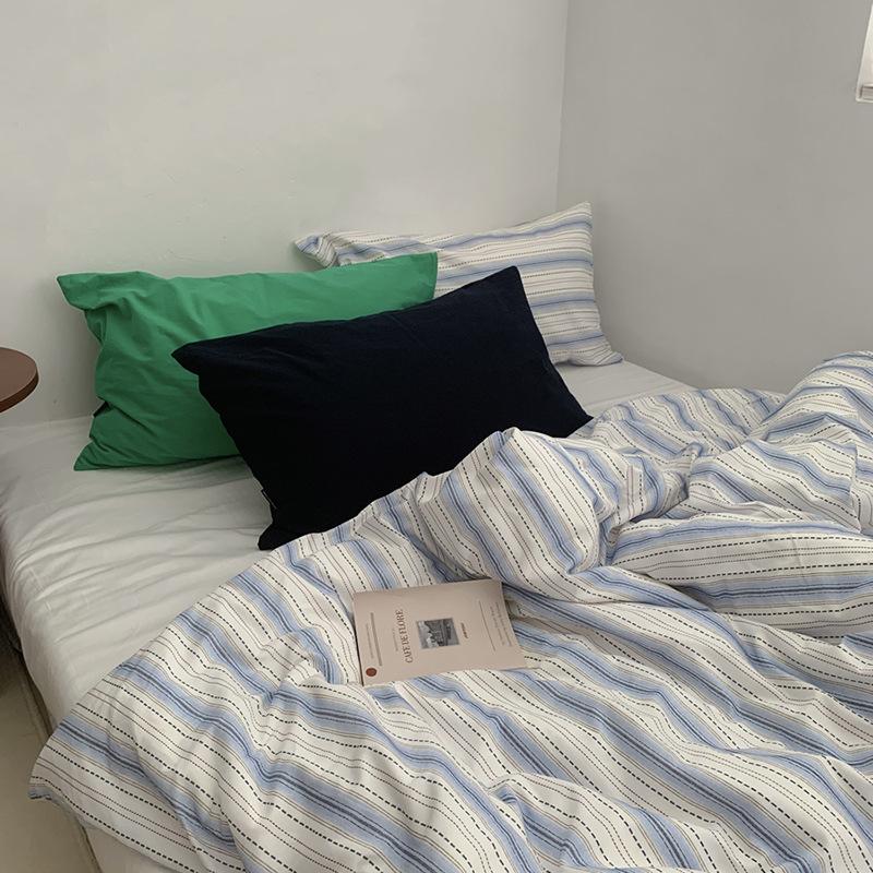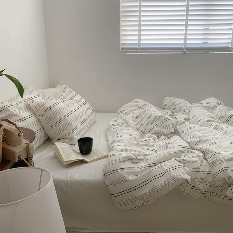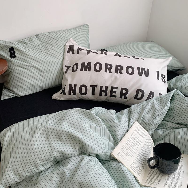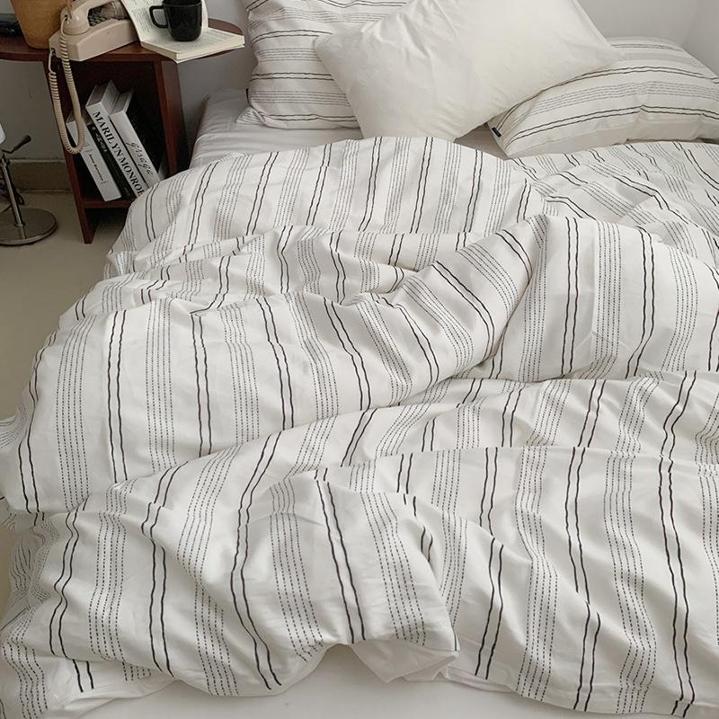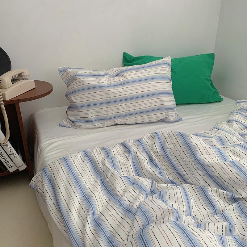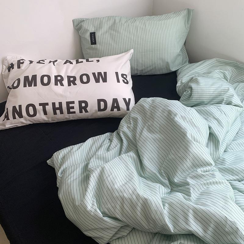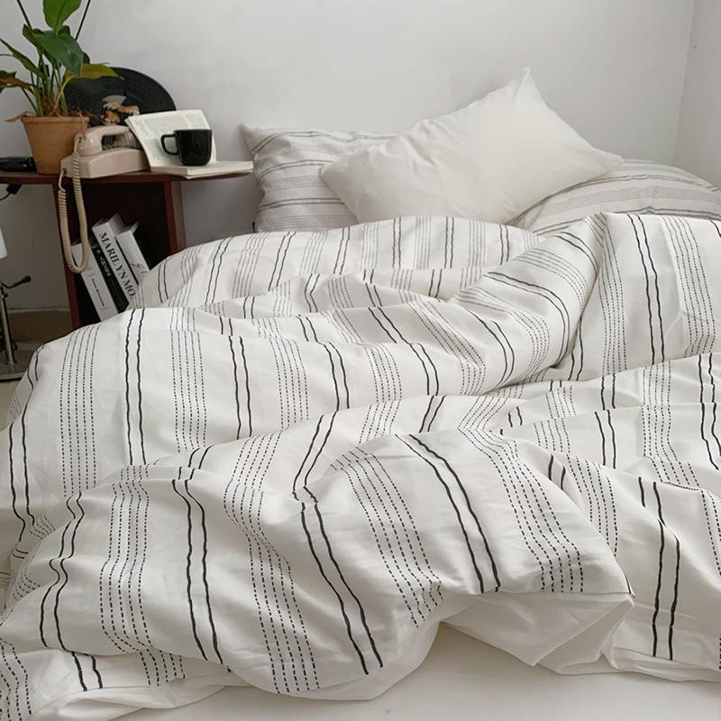 Juego de sábanas para cama de 1.5m: funda nórdica 200*230, sábana encimera 245*250, un par de fundas de almohada (las fundas de almohada vienen con un par de rayas occidentales por defecto, puede cambiar el color comentando)
