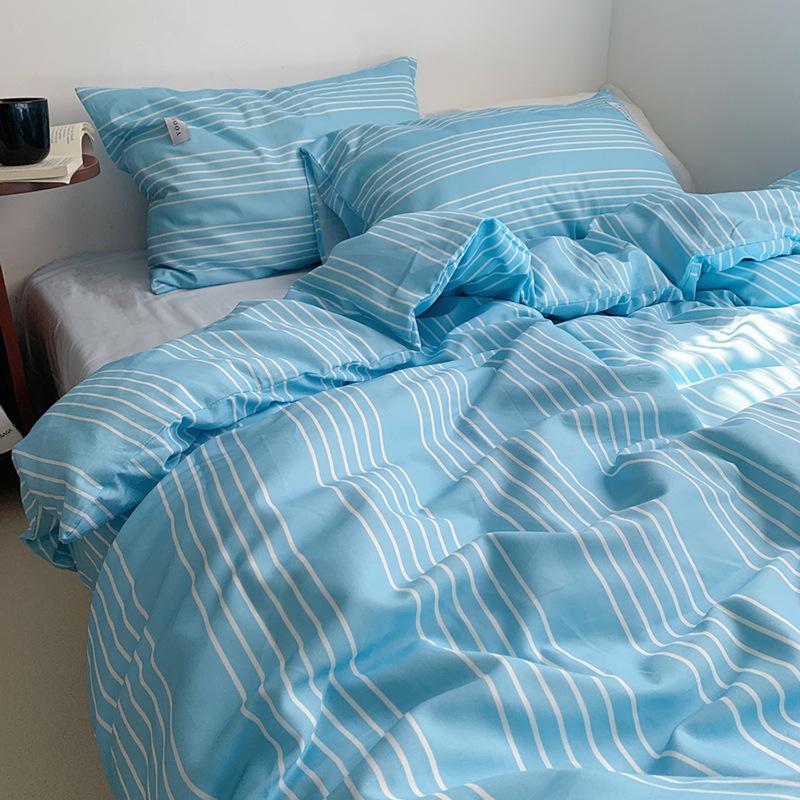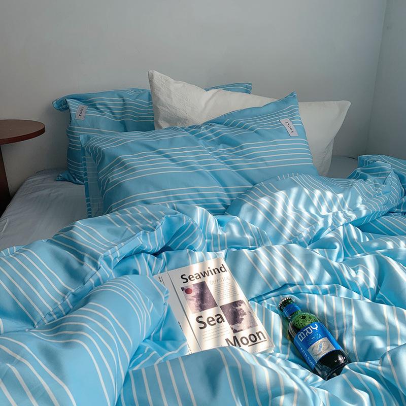 Juego de cuatro sábanas ajustables de 1.5 m: funda de edredón 200*230 sábana ajustable 150*200*20 un par de fundas de almohada (las fundas de almohada son un par de rayas occidentales por defecto, puede cambiar el color comentando)