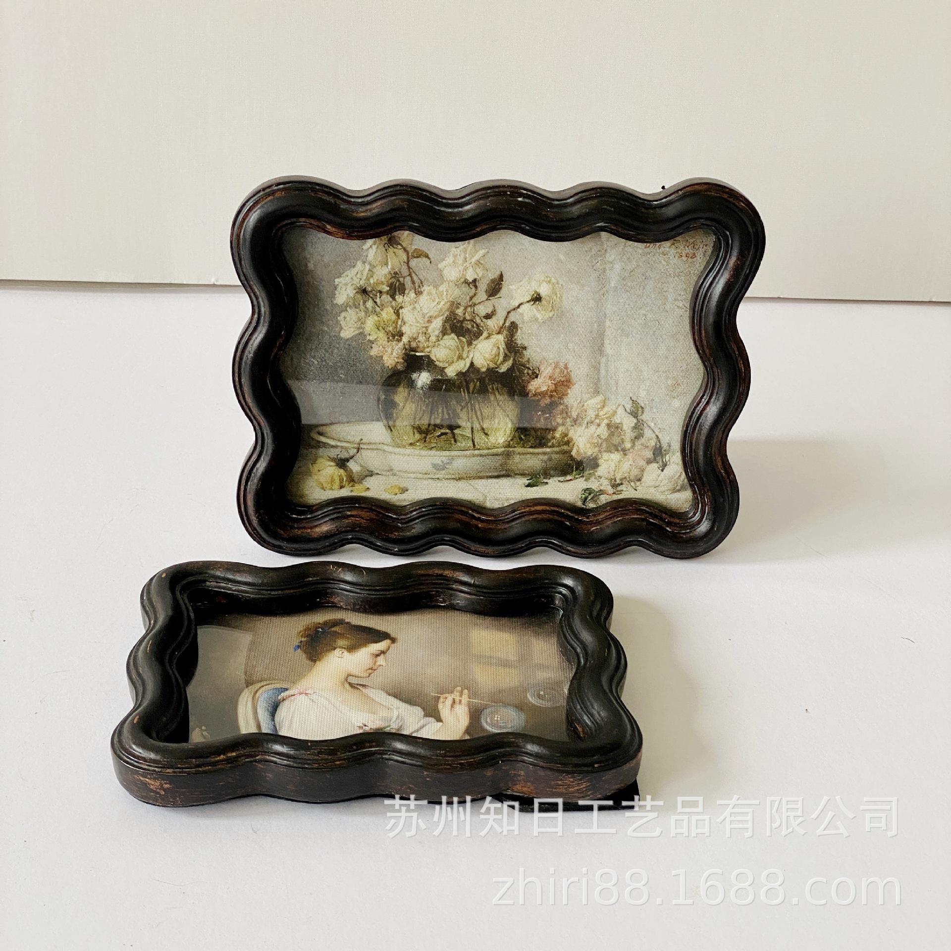 Marco de fotos antiguo francés vintage simple, marco de pintura al óleo clásico europeo retro, decoración de pared, pintura colgante