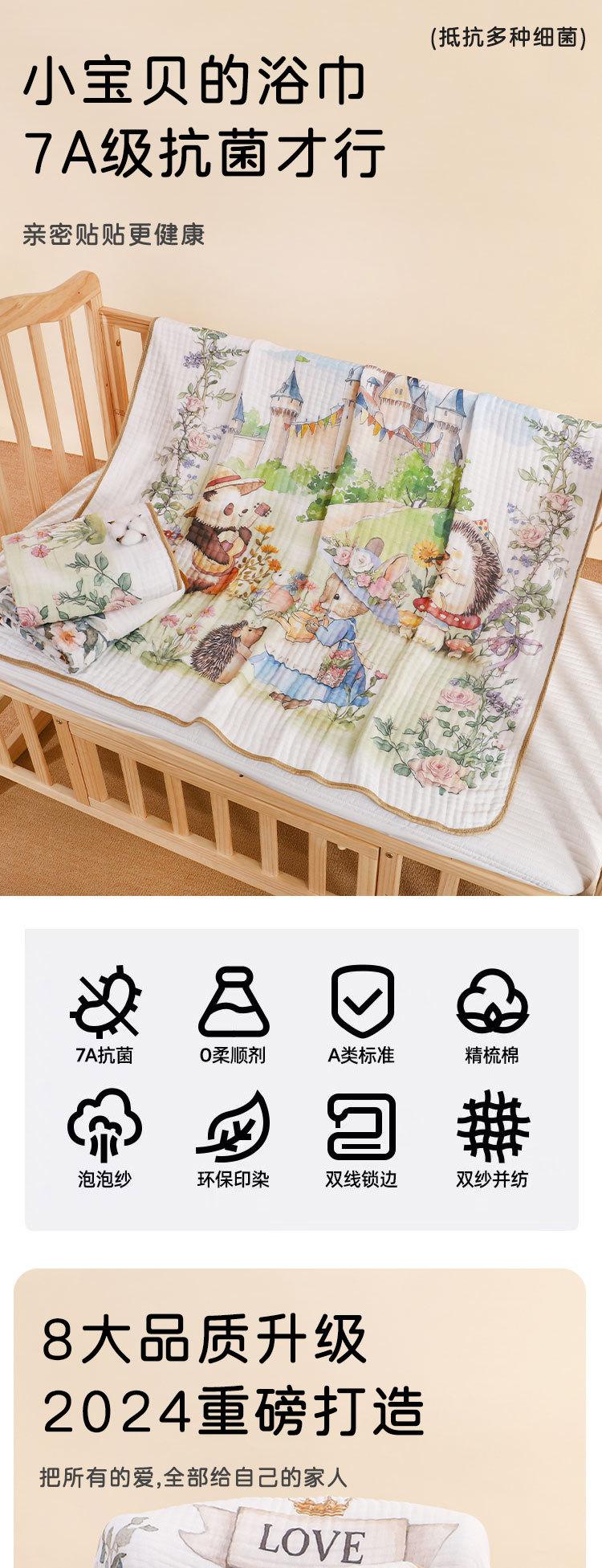 Toalla de Baño para Bebé Gasa de Algodón Puro de Seis Capas Impresión Digital 3D Manta de Cobertura Toalla Acolchada para Recién Nacido