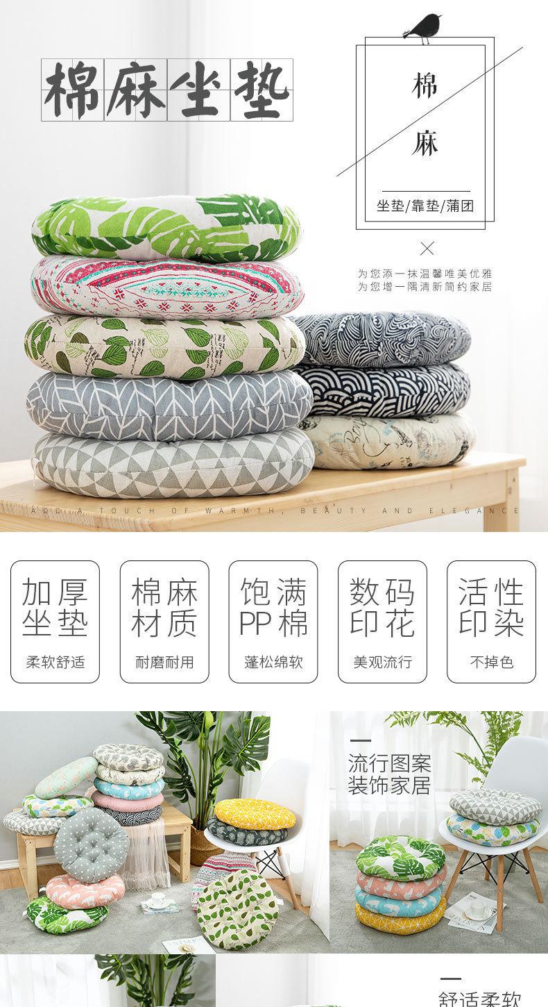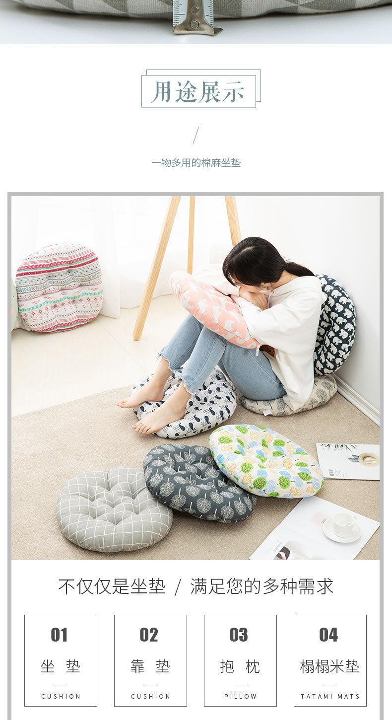 Cojín de silla de lino y algodón, cojín de suelo para tatami, cojín redondo grueso, cojín de silla de ratán para estudiantes, cojín de trasero para silla de hogar