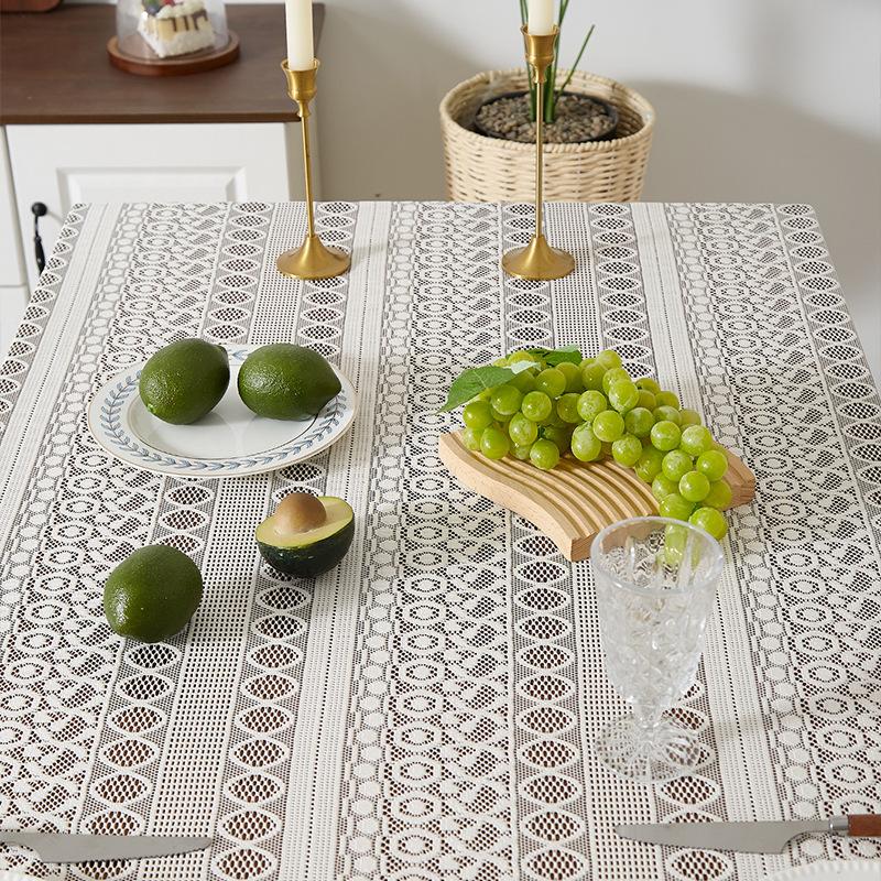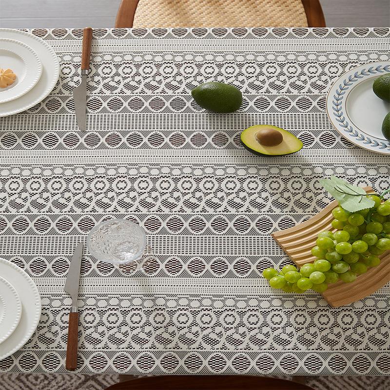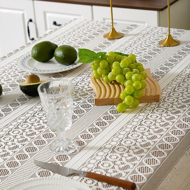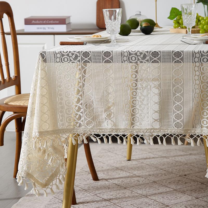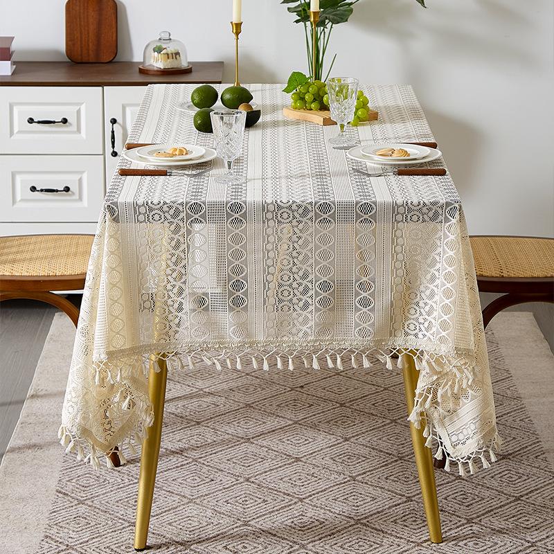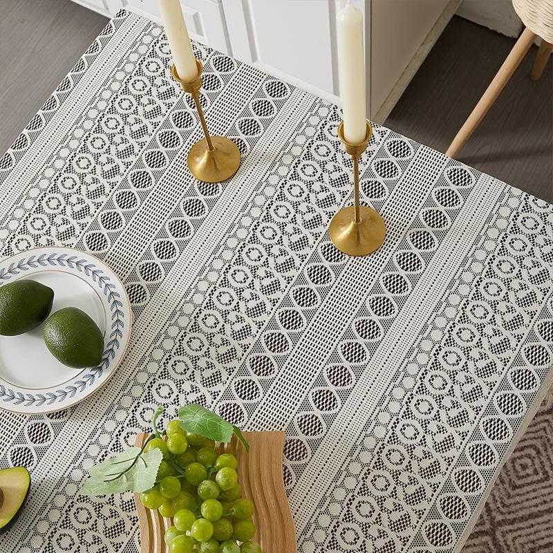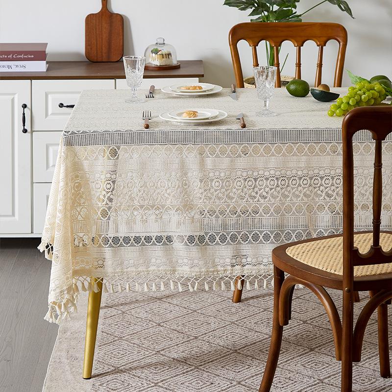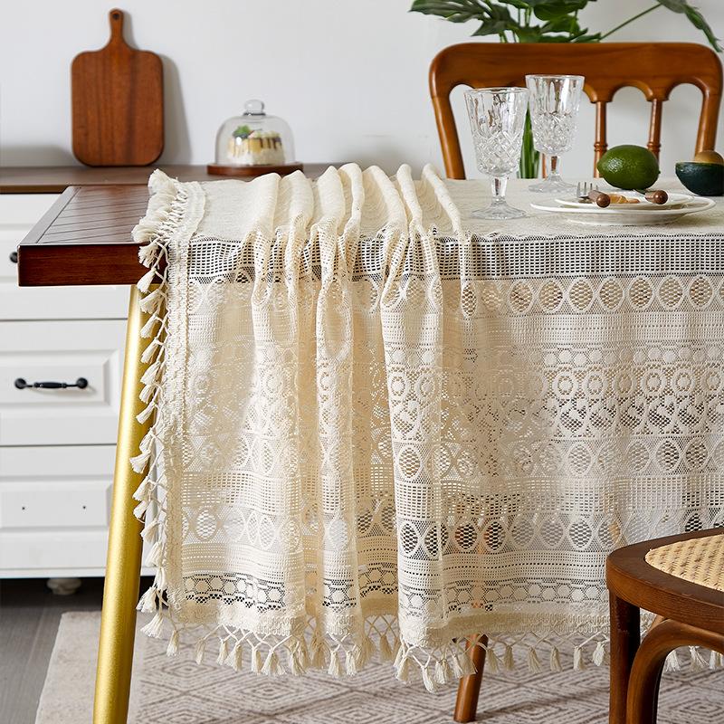Mantel de encaje estilo bohemio, de algodón y lino, artístico, a prueba de polvo, estilo pastoral, para comedor, ahuecado, para el hogar.