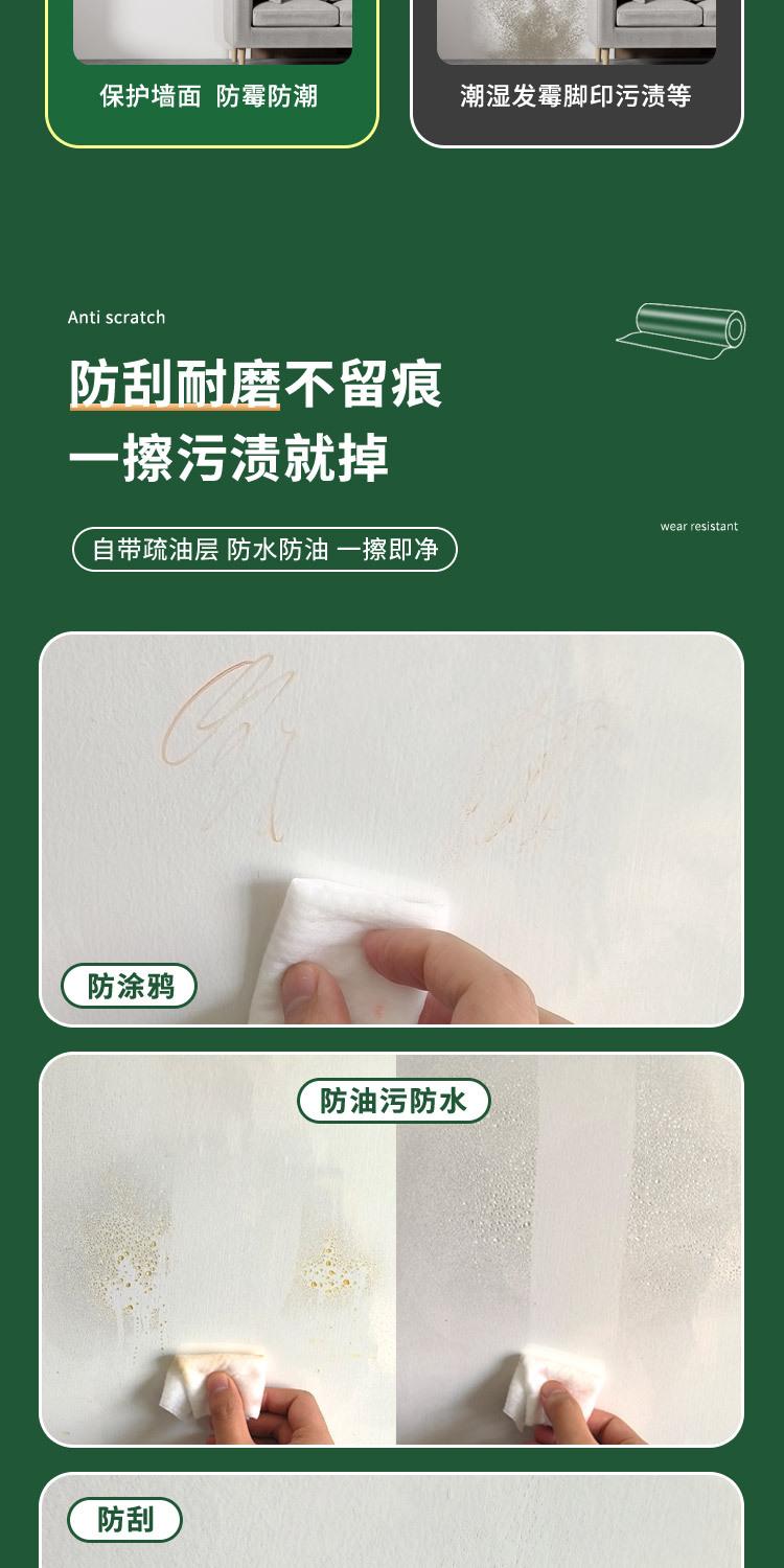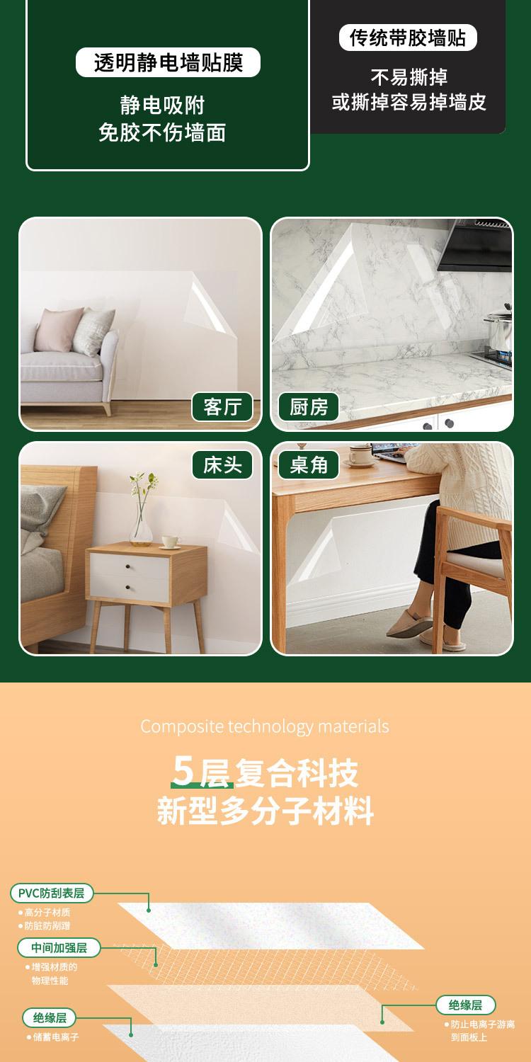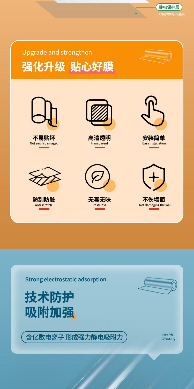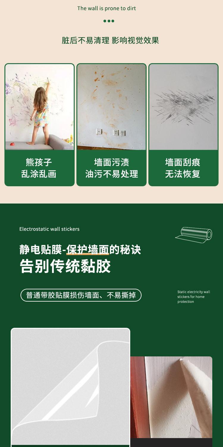 Transparent and traceless [electrostatic adsorption wall protective film]