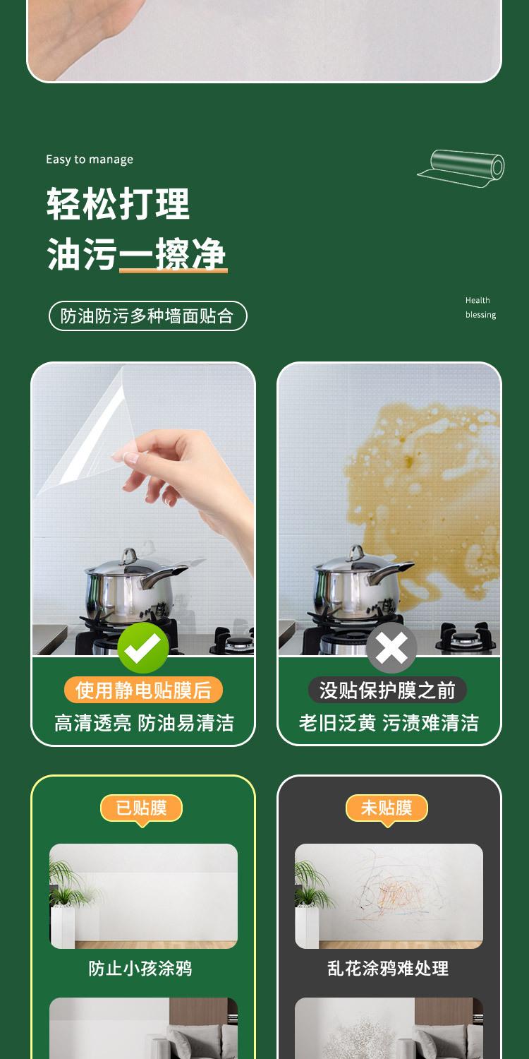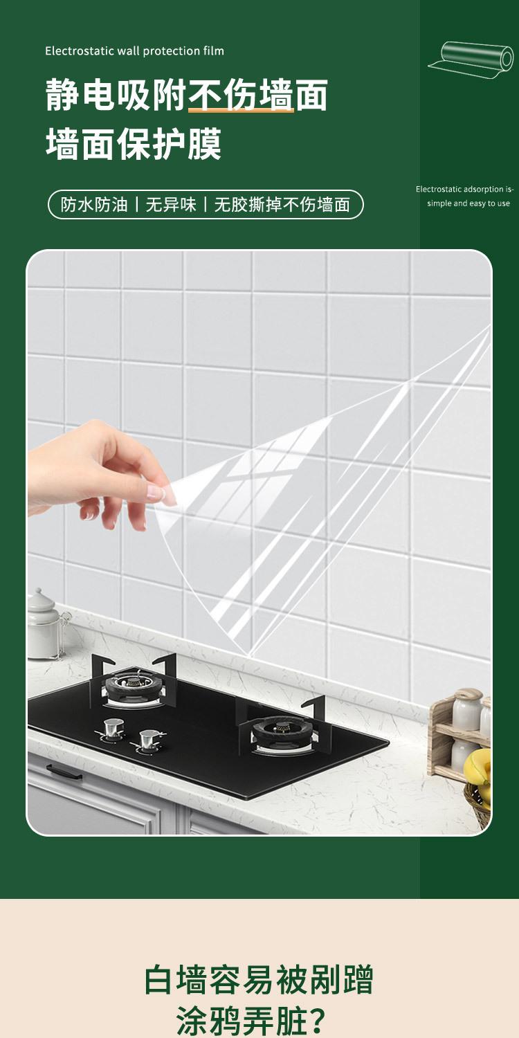 Una Pieza Venta al por Mayor Película Protectora de Pared Transparente Electrostática No Dañina Pared Impermeable Adhesivos de Pared Cocina Anti-aceite Anti-incrustante Papel Tapiz Autoadhesivo
