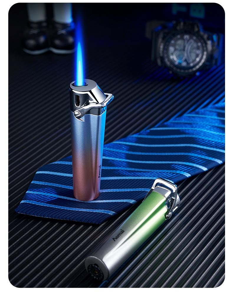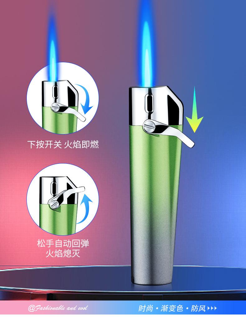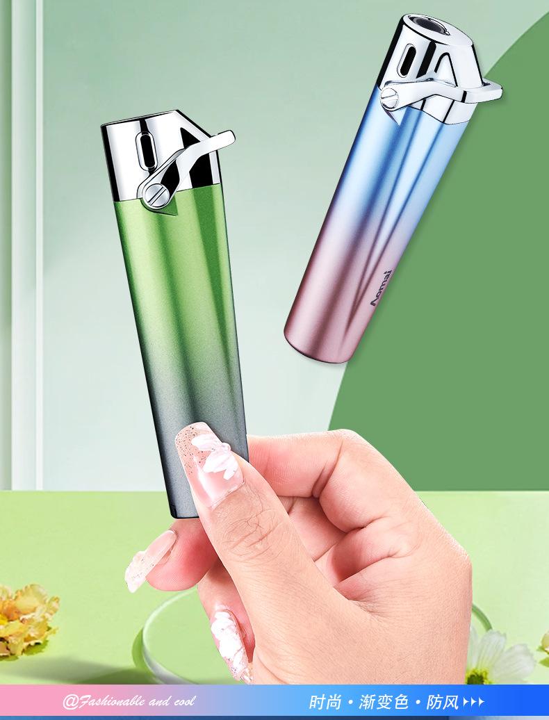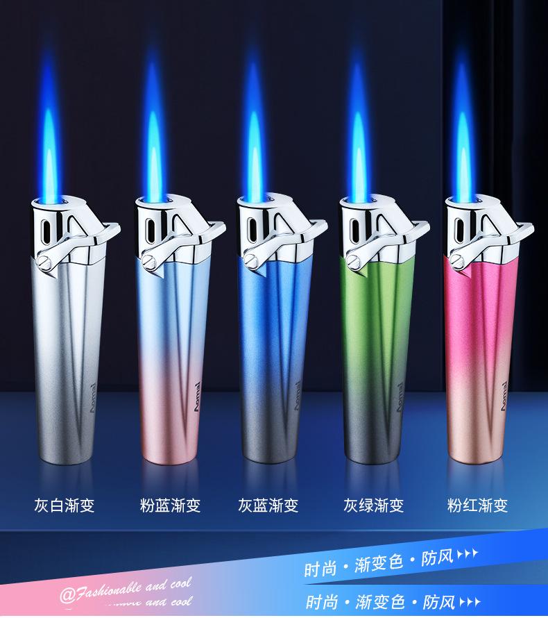 Encendedor inflable creativo a prueba de viento de alto valor de color degradado de llama azul, encendedor compacto de regalo para damas, encendedor de cigarrillos al por mayor